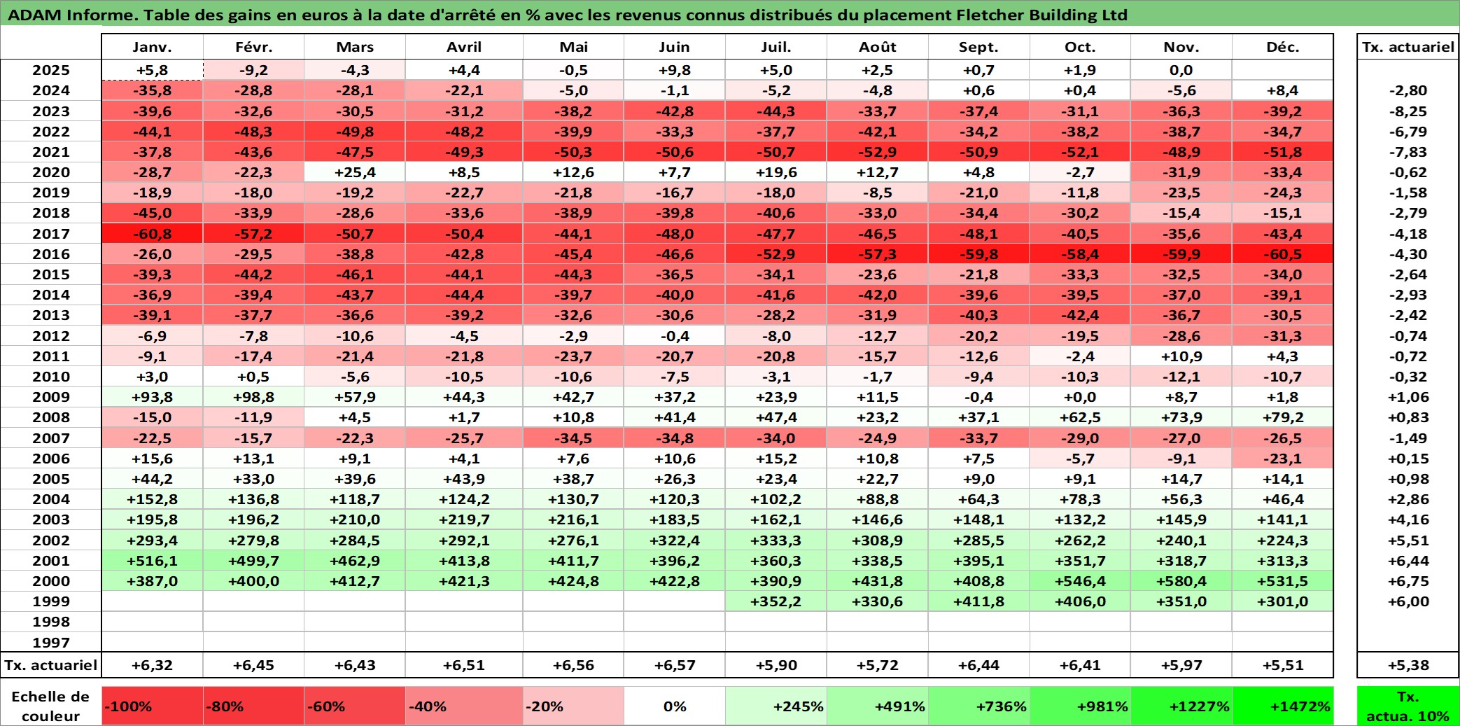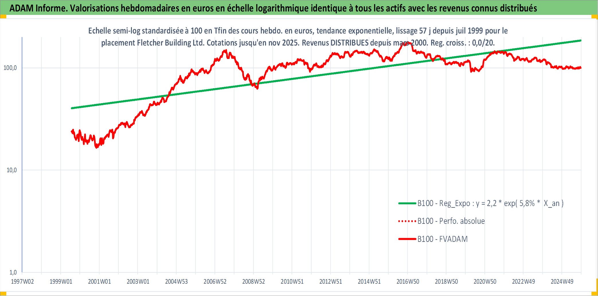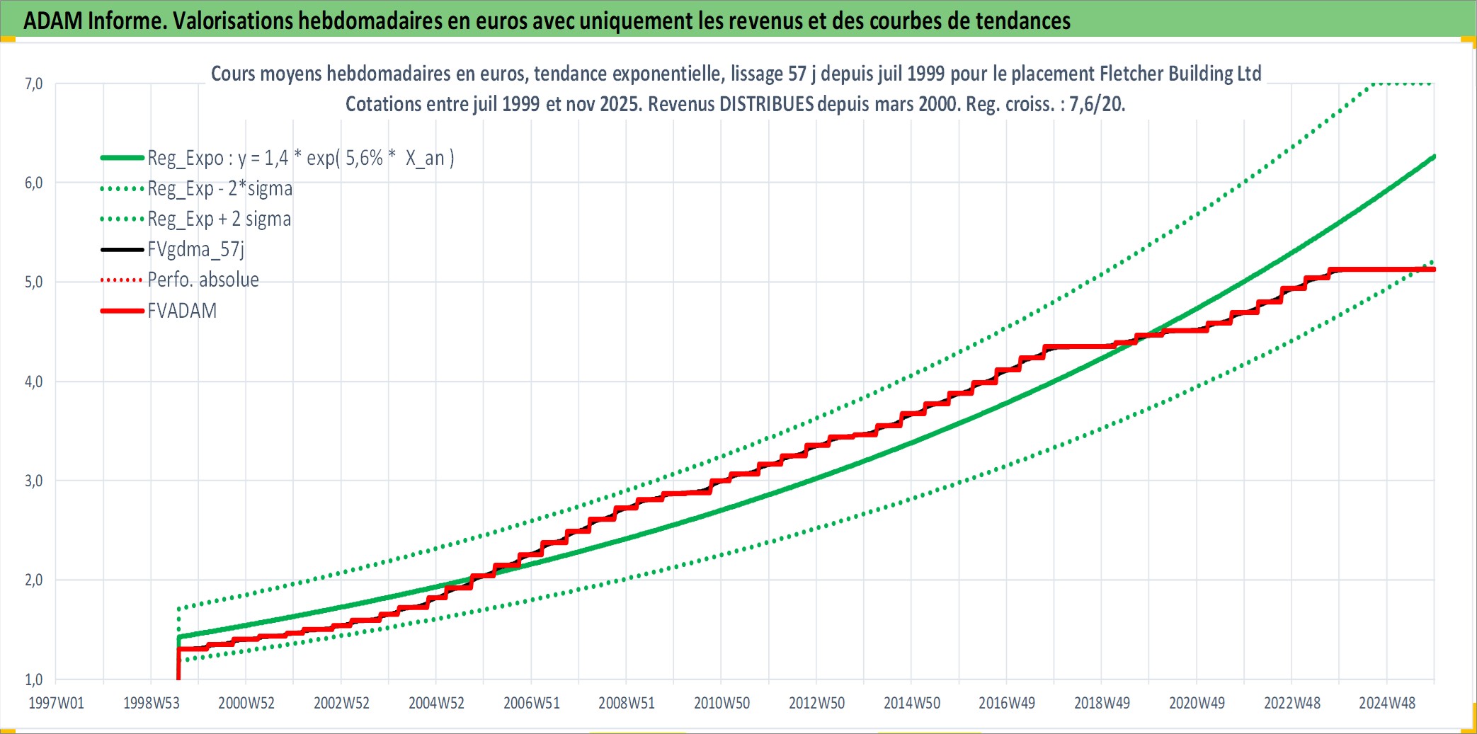 Site dédié aux investisseursPage dédiée sur site financeAnalyse des valorisations hebdomadaires de l'action Fletcher Building Ltd. Cet actif est cote en AUD. Les valorisations sont en contrevaleur EURO et couvrent les semaines 1999W30 a 2025W48. Les revenus de cet actif financier sont pris en compte depuis la semaine 2000W10. La note ESG de cet actif n'est pas connue.