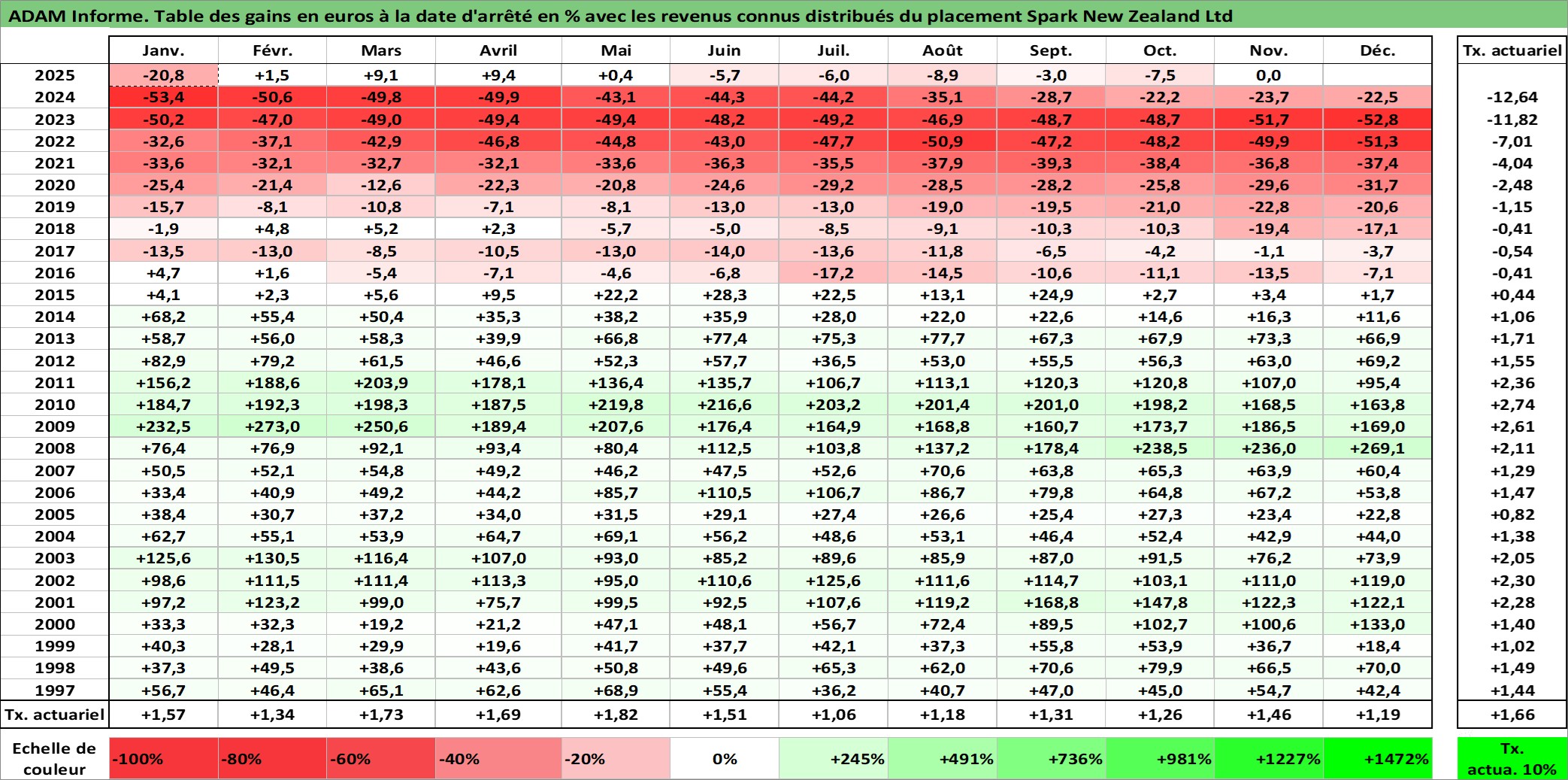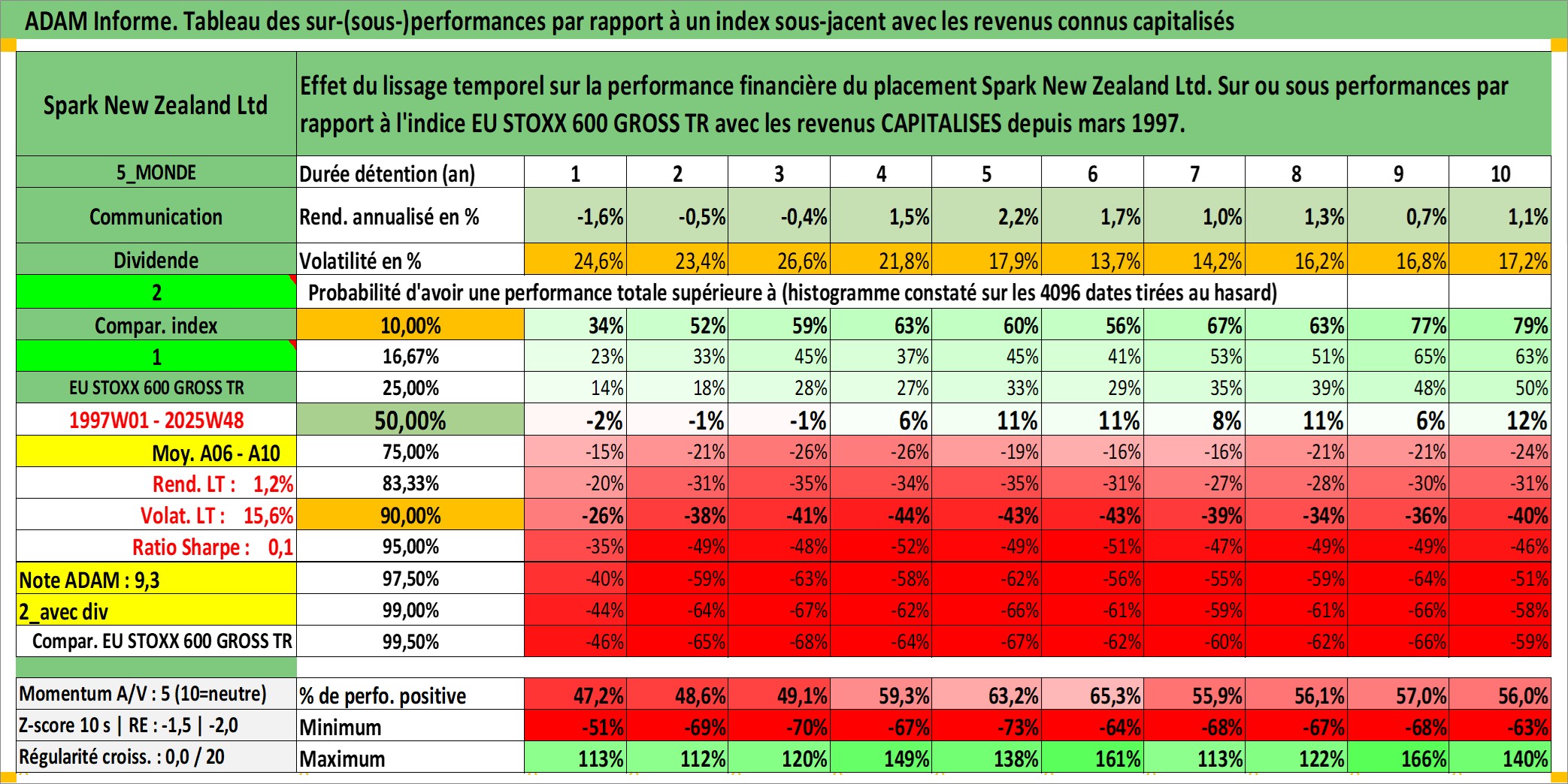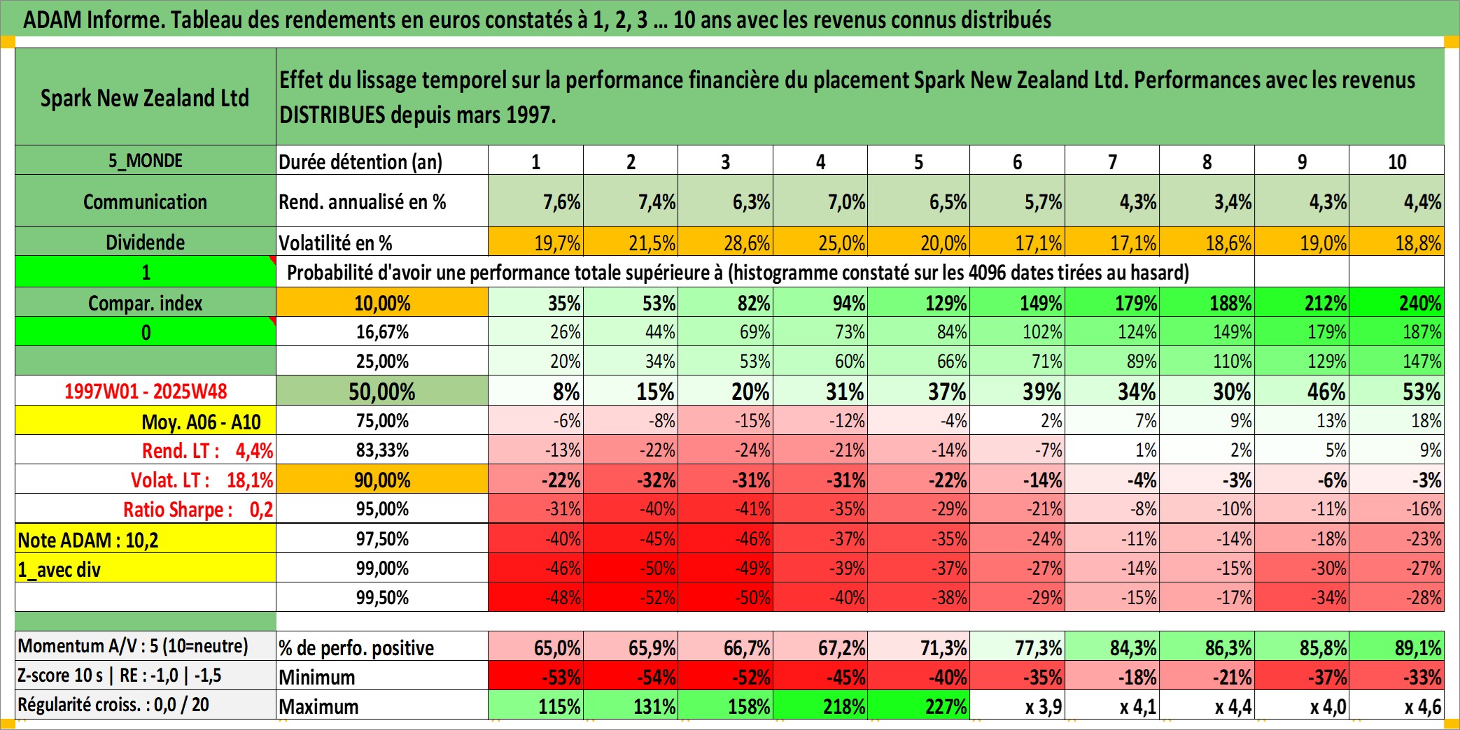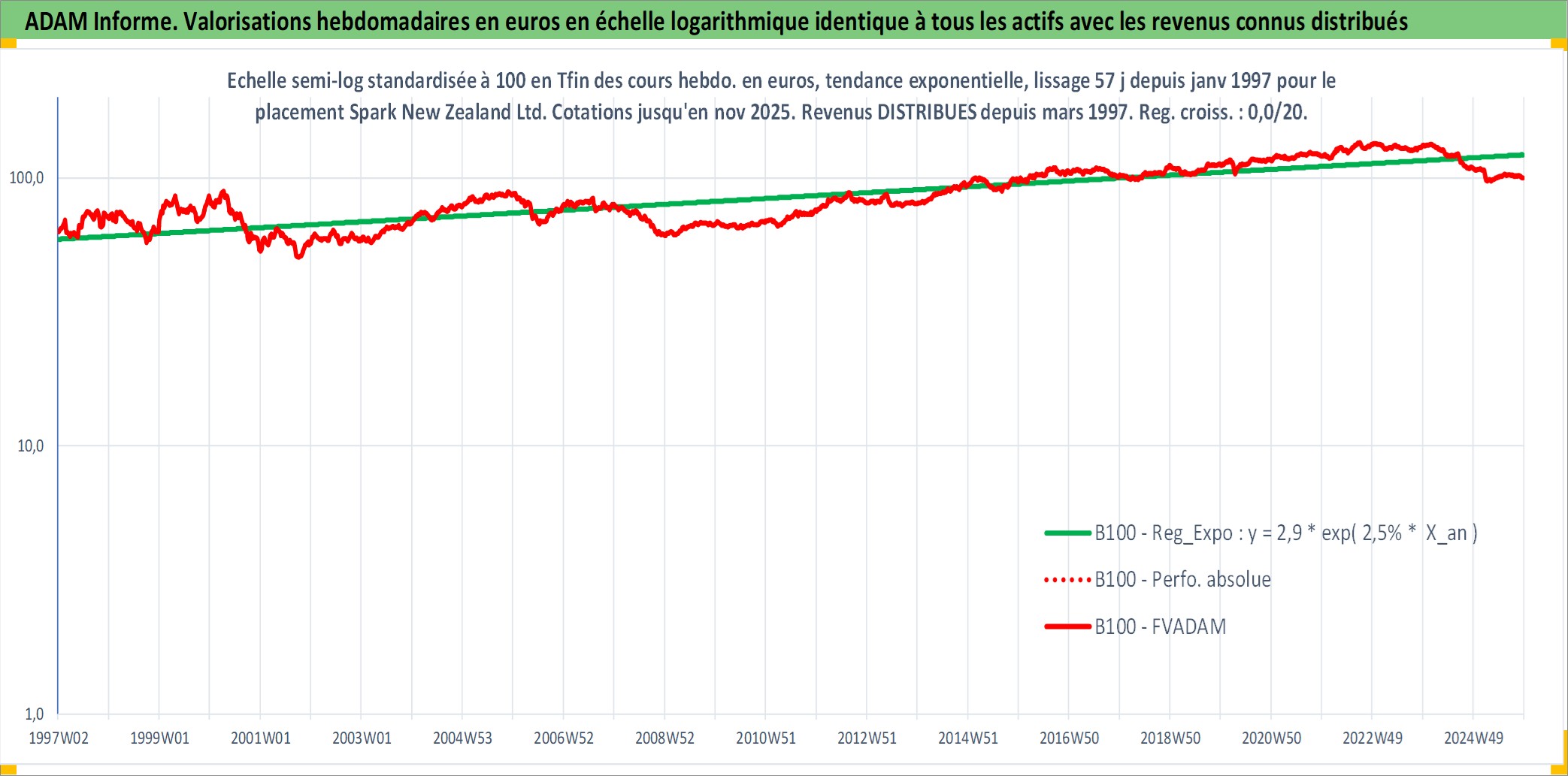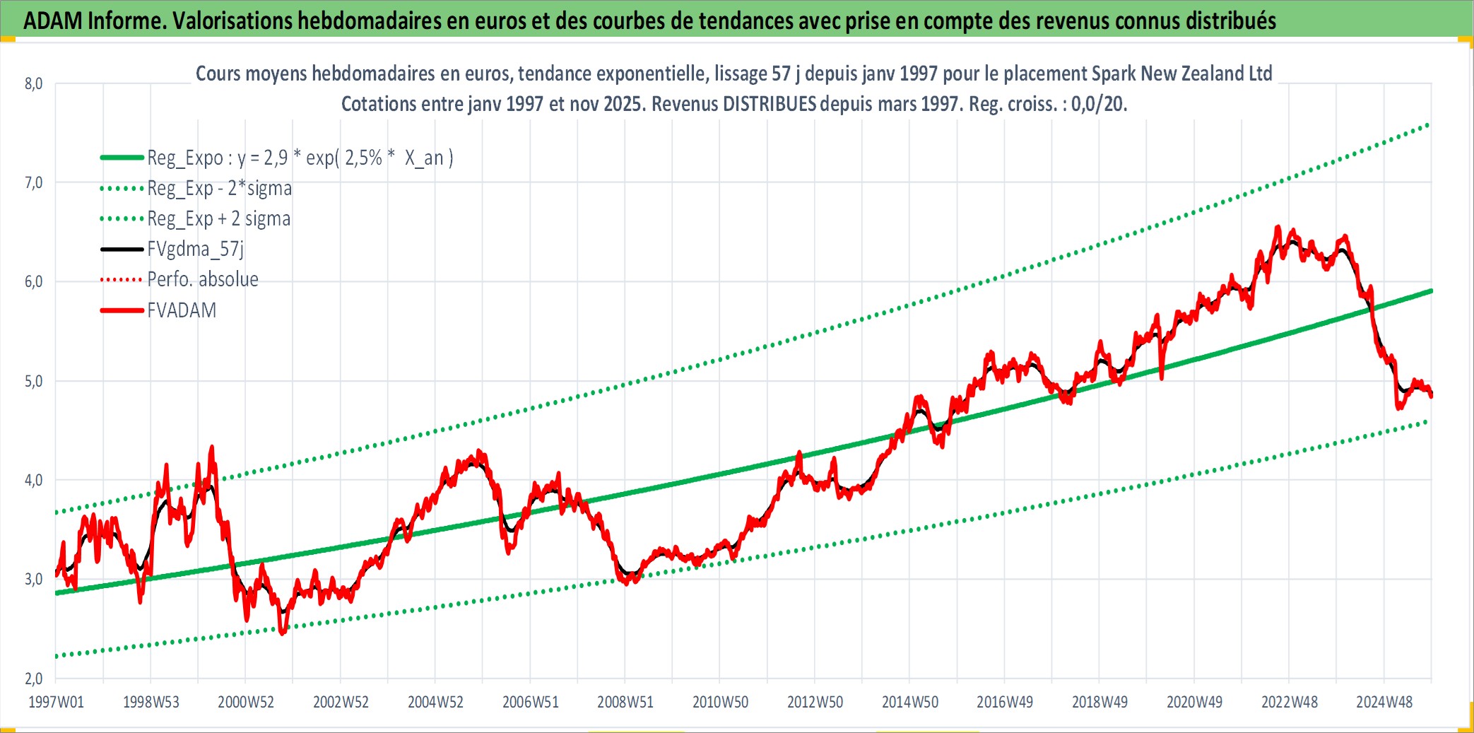 Site dédié aux investisseursPage dédiée sur site financeAnalyse des valorisations hebdomadaires de l'action Spark New Zealand Ltd. Cet actif est cote en AUD. Les valorisations sont en contrevaleur EURO et couvrent les semaines 1997W01 a 2025W48. Les revenus de cet actif financier sont pris en compte depuis la semaine 1997W09. La note ESG de cet actif n'est pas connue.