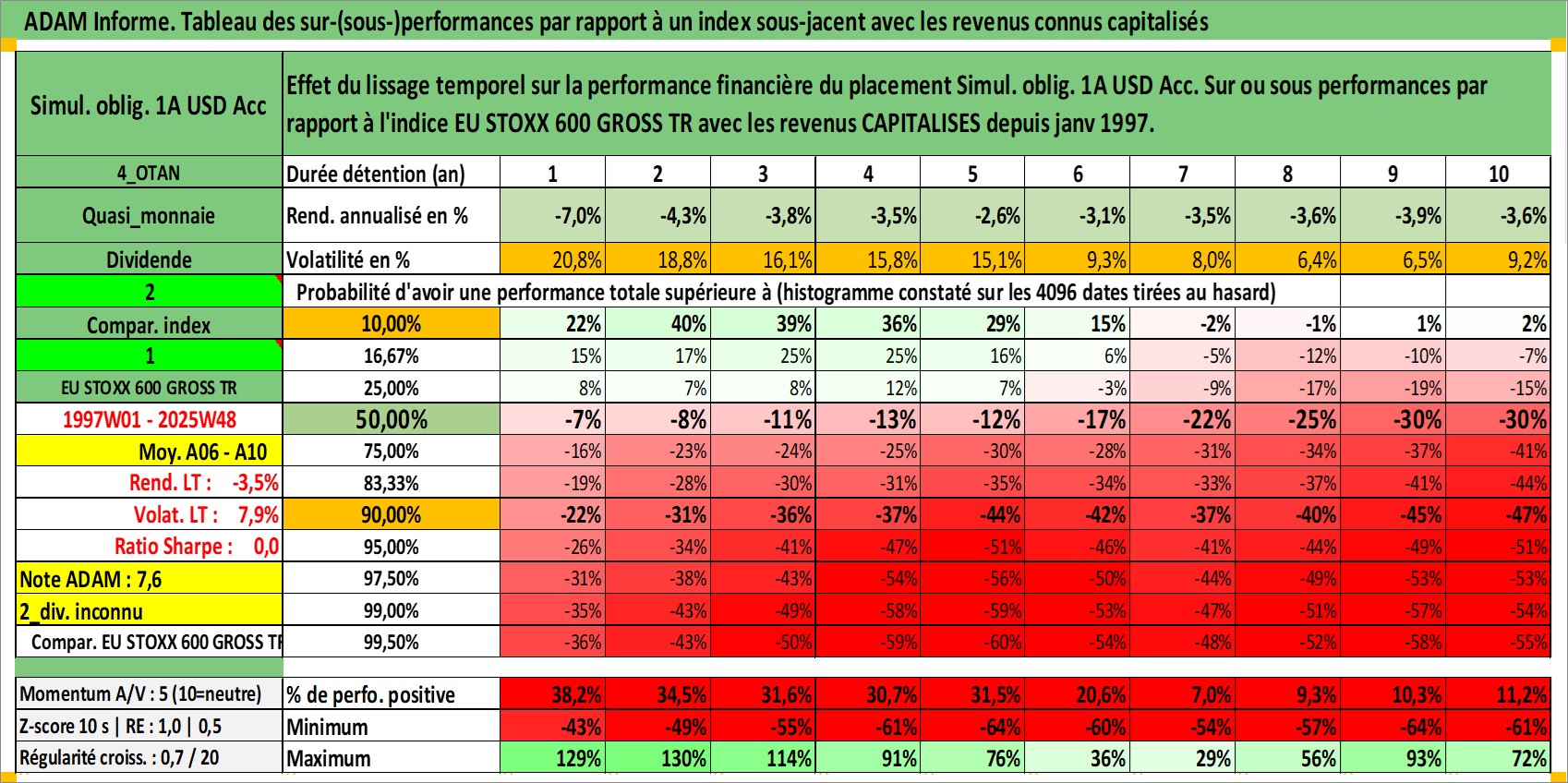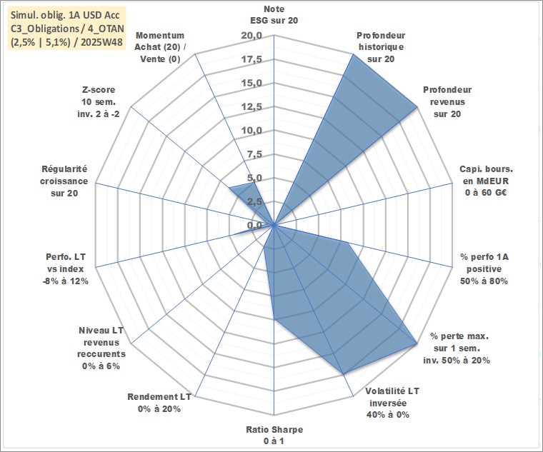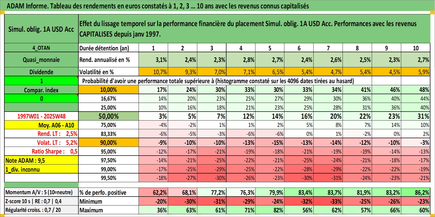 Site dédié aux investisseursPage dédiée sur site financeAnalyse des valorisations hebdomadaires de l'action Simul. oblig. 1A USD Acc. Cet actif est cote en USD. Les valorisations sont en contrevaleur EURO et couvrent les semaines 1997W01 a 2025W48. Les revenus de cet actif financier sont pris en compte depuis la semaine 1997W01. La note ESG de cet actif n'est pas connue.