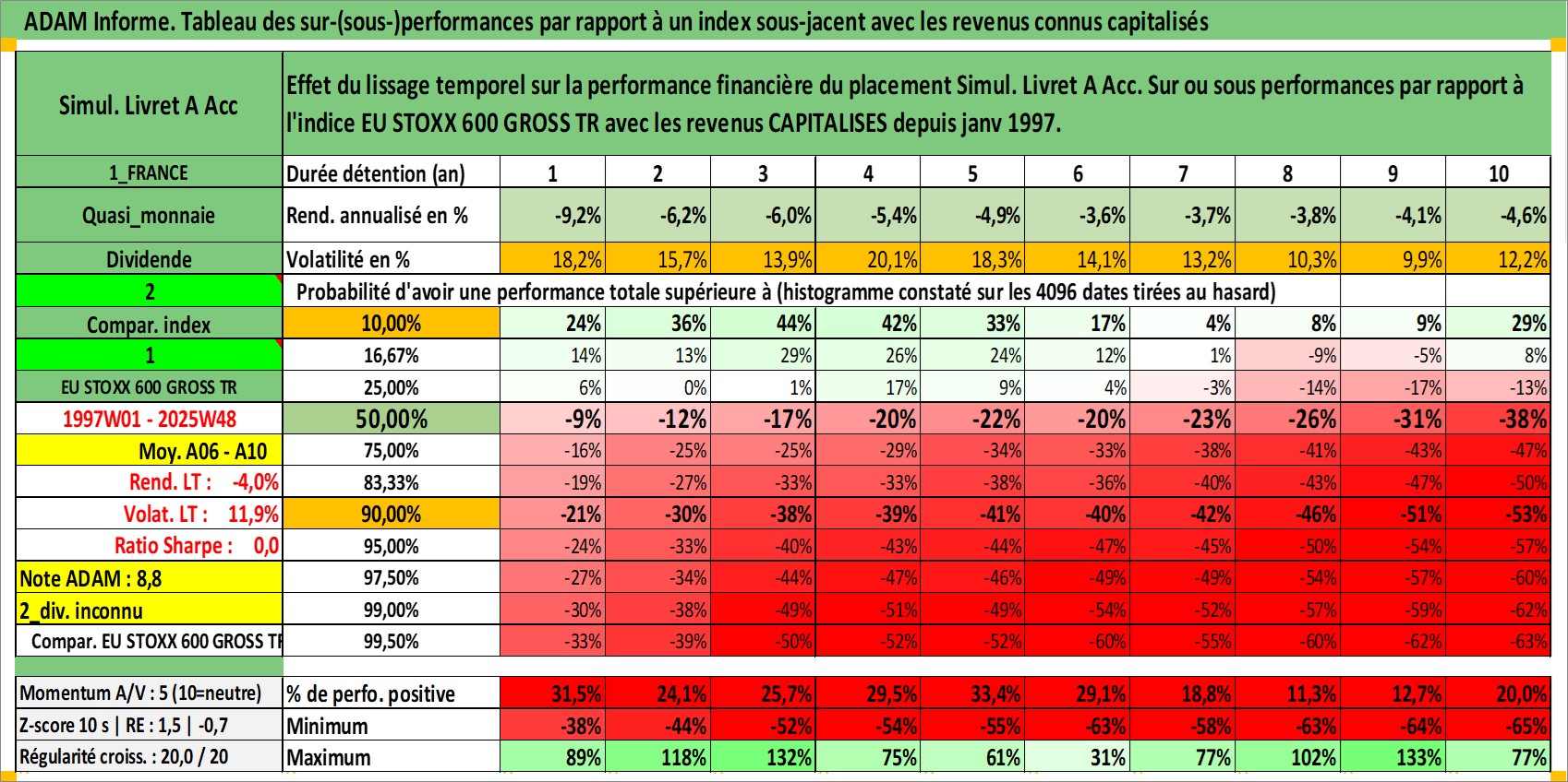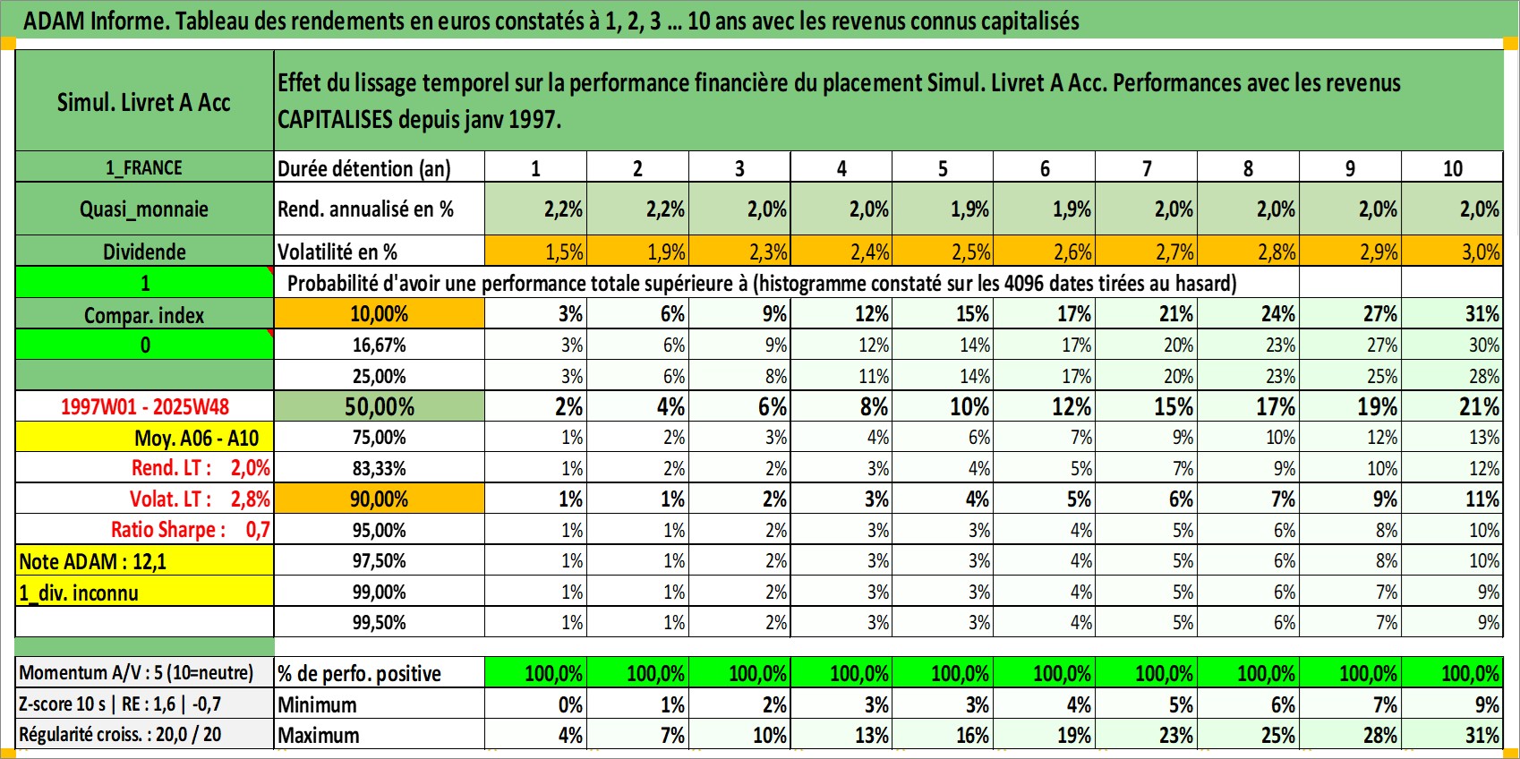 Site dédié aux investisseursPage dédiée sur site financeAnalyse des valorisations hebdomadaires de l'action Simul. Livret A Acc. Cet actif est cote en EUR. Les valorisations couvrent les semaines 1997W01 a 2025W48. Les revenus de cet actif financier sont pris en compte depuis la semaine 1997W01. La note ESG de cet actif n'est pas connue.