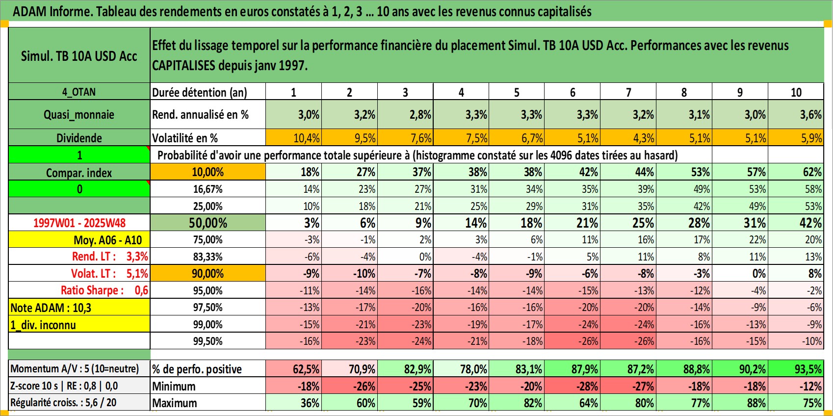 Site dédié aux investisseursPage dédiée sur site financeAnalyse des valorisations hebdomadaires de l'action Simul. TB 10A USD Acc. Cet actif est cote en USD. Les valorisations sont en contrevaleur EURO et couvrent les semaines 1997W01 a 2025W48. Les revenus de cet actif financier sont pris en compte depuis la semaine 1997W01. La note ESG de cet actif n'est pas connue.