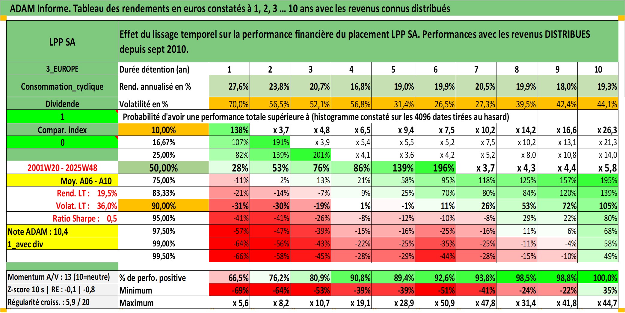 Dernière perfo 10 ans en %