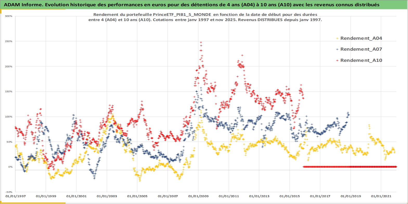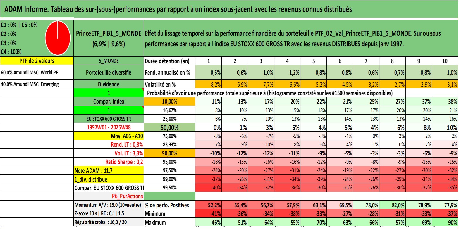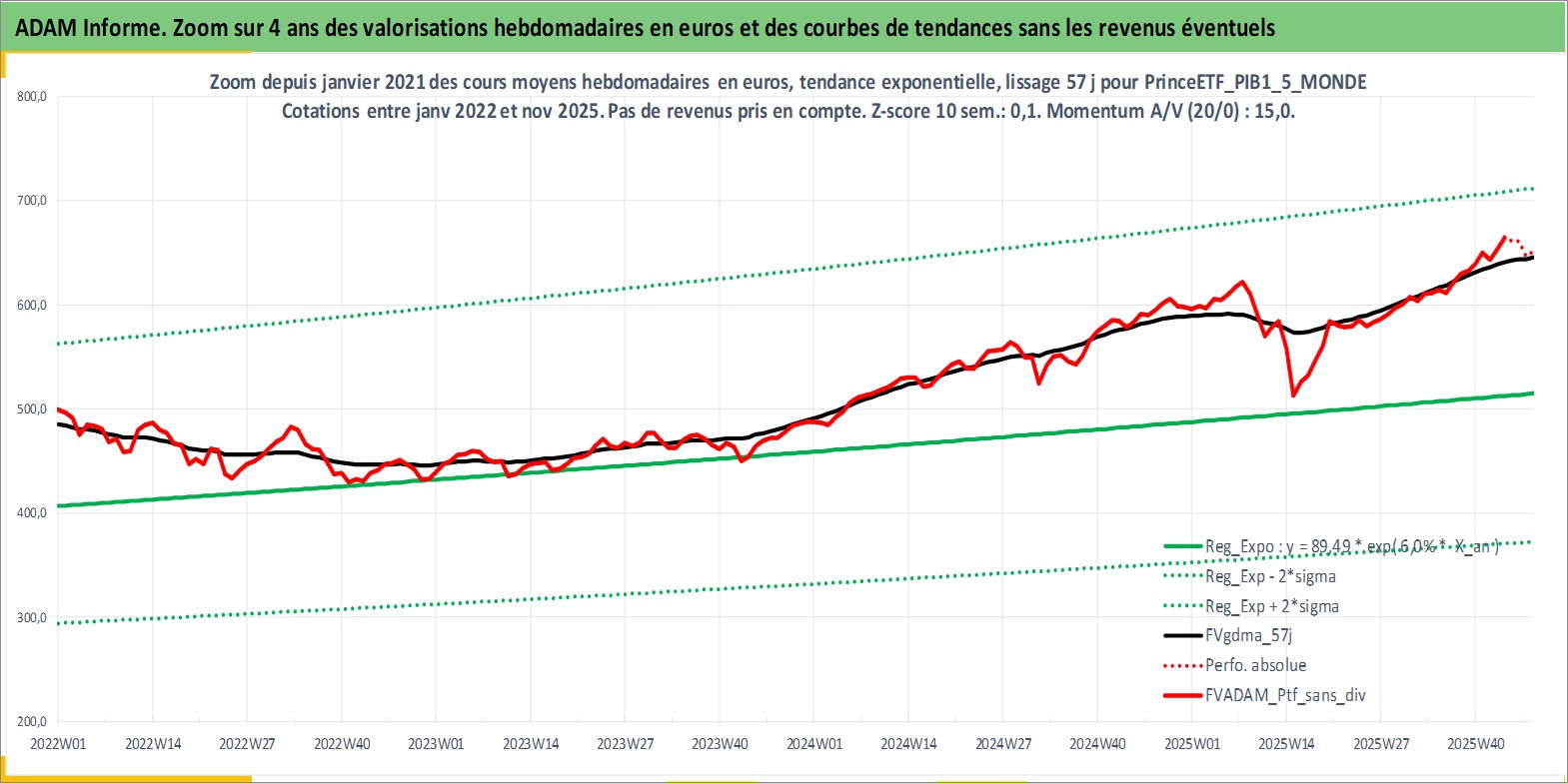 Site dédié aux investisseursPage dédiée sur site financeAnalyse des valorisations hebdomadaires du portefeuille PrinceETF_PIB1_5_MONDE_2actifs avec un profil P6_PurActions. Ce portefeuille est cote en EUR. Les valorisations couvrent les semaines 1997W01 a 2025W48. Les revenus de cet actif financier sont pris en compte depuis la semaine 1997W01. La note ESG de cet actif n'est pas connue.