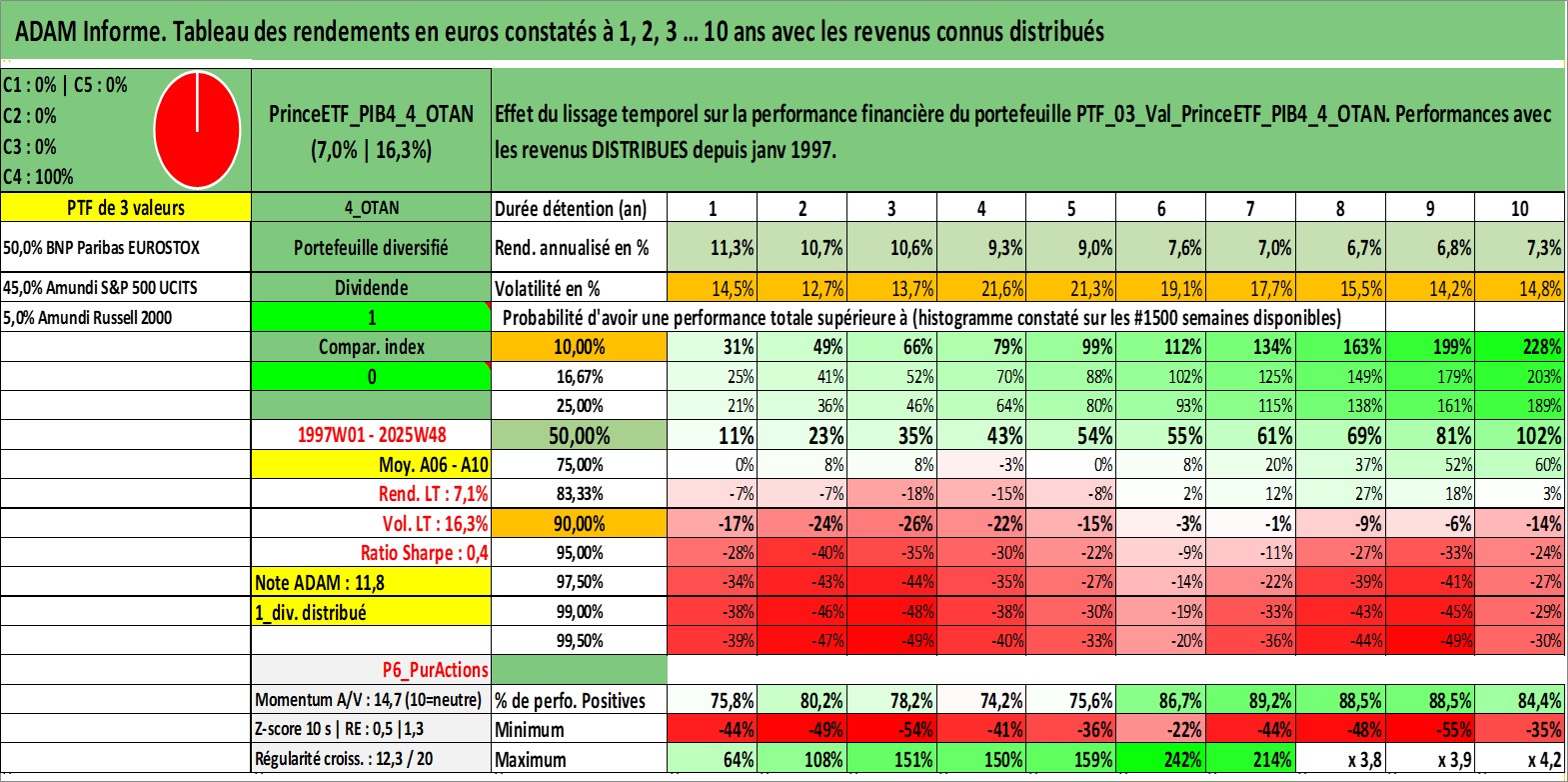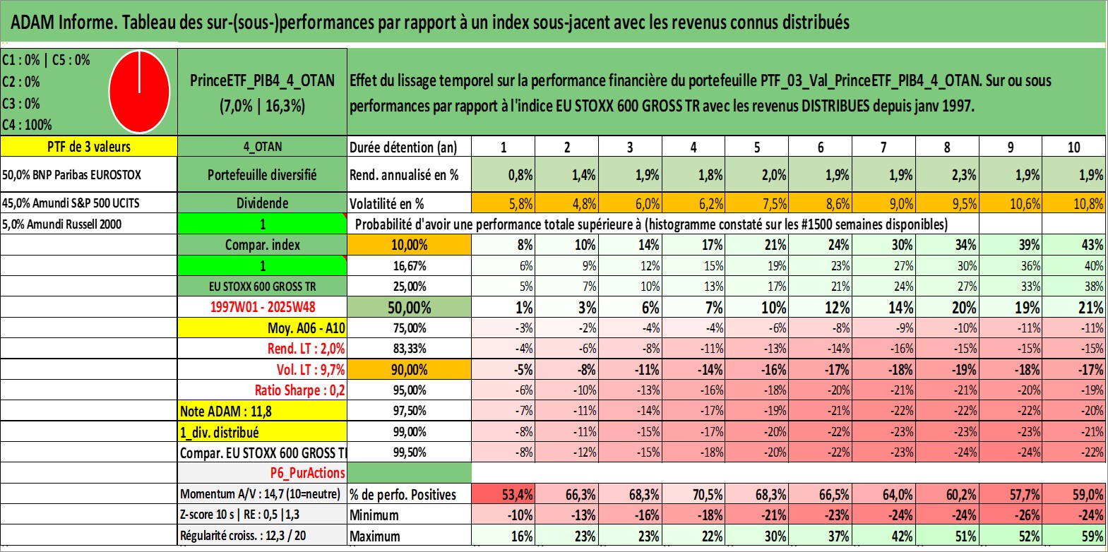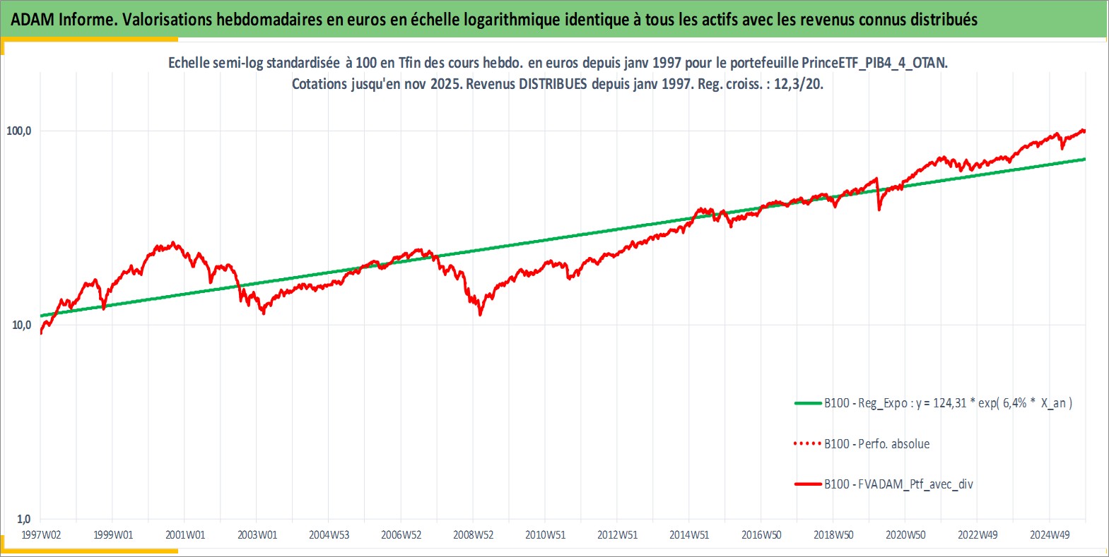 Site dédié aux investisseursPage dédiée sur site financeAnalyse des valorisations hebdomadaires du portefeuille PrinceETF_PIB4_4_OTAN_3actifs avec un profil P6_PurActions. Ce portefeuille est cote en EUR. Les valorisations couvrent les semaines 1997W01 a 2025W48. Les revenus de cet actif financier sont pris en compte depuis la semaine 1997W01. La note ESG de cet actif n'est pas connue.