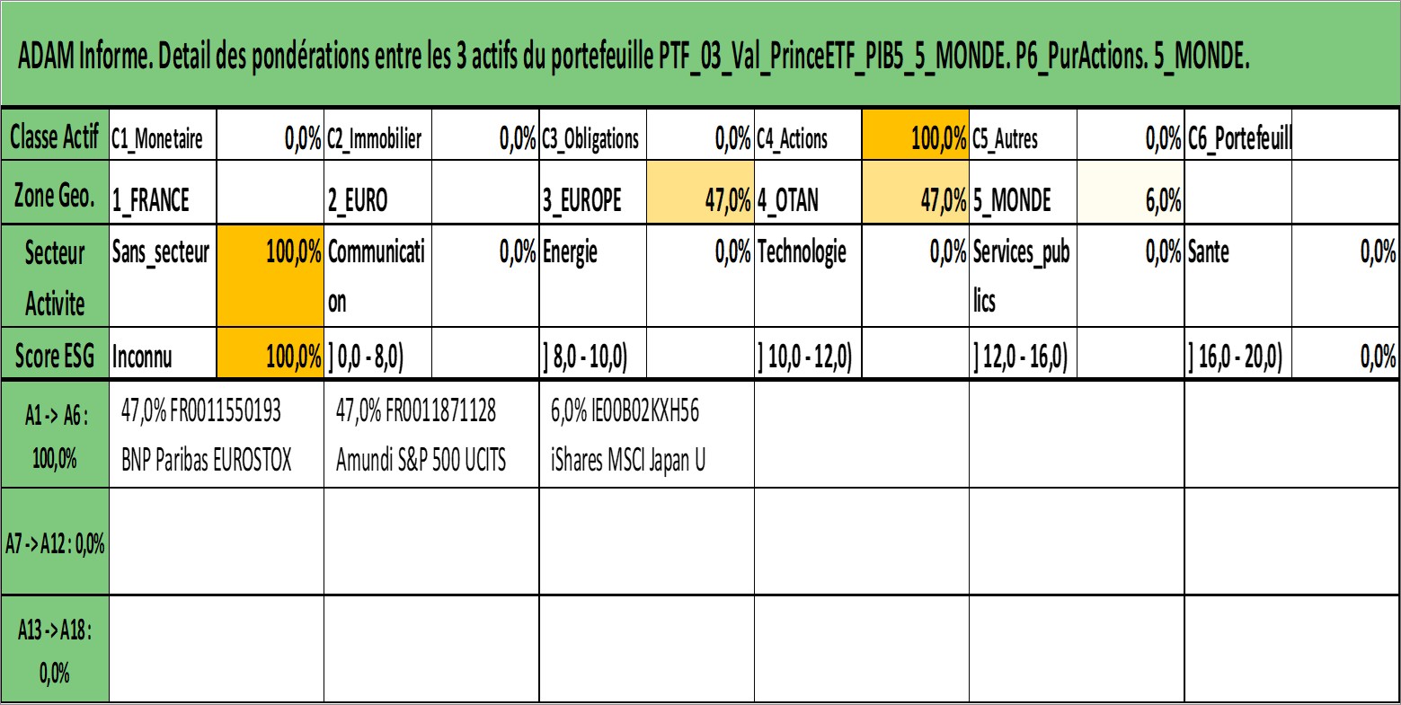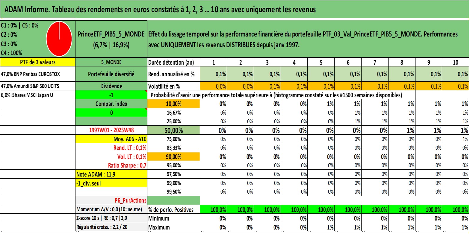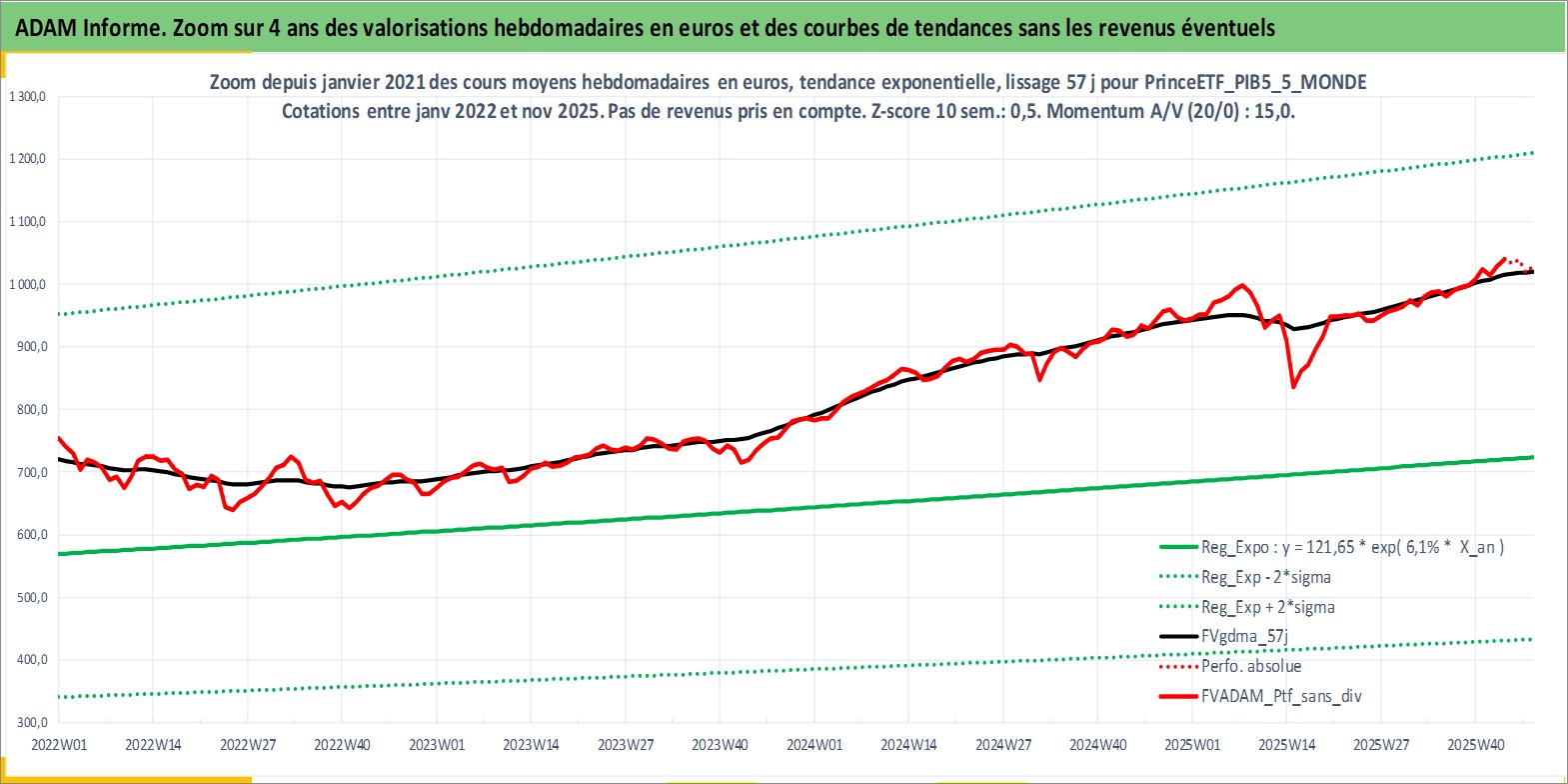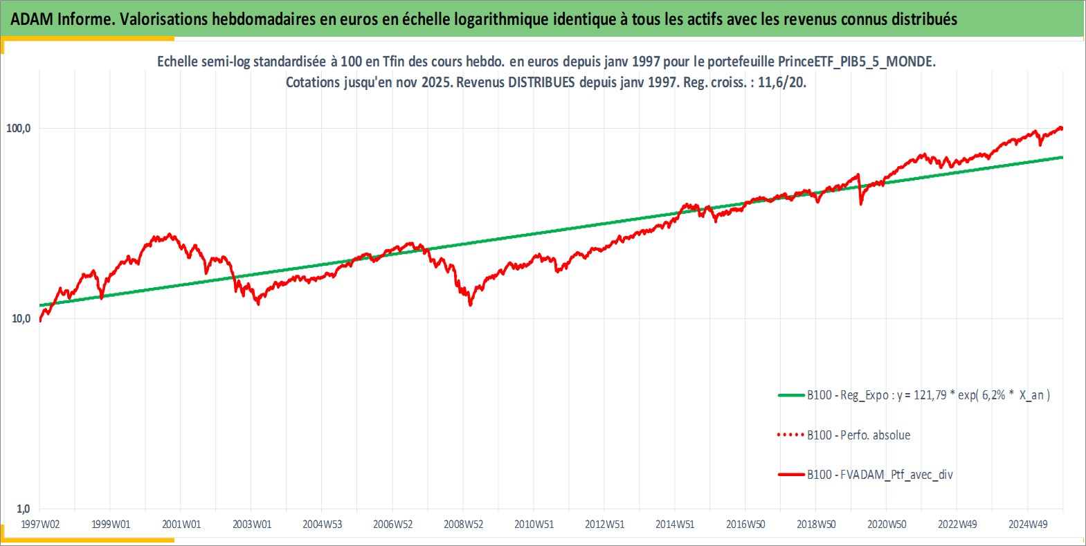 Site dédié aux investisseursPage dédiée sur site financeAnalyse des valorisations hebdomadaires du portefeuille PrinceETF_PIB5_5_MONDE_3actifs avec un profil P6_PurActions. Ce portefeuille est cote en EUR. Les valorisations couvrent les semaines 1997W01 a 2025W48. Les revenus de cet actif financier sont pris en compte depuis la semaine 1997W01. La note ESG de cet actif n'est pas connue.