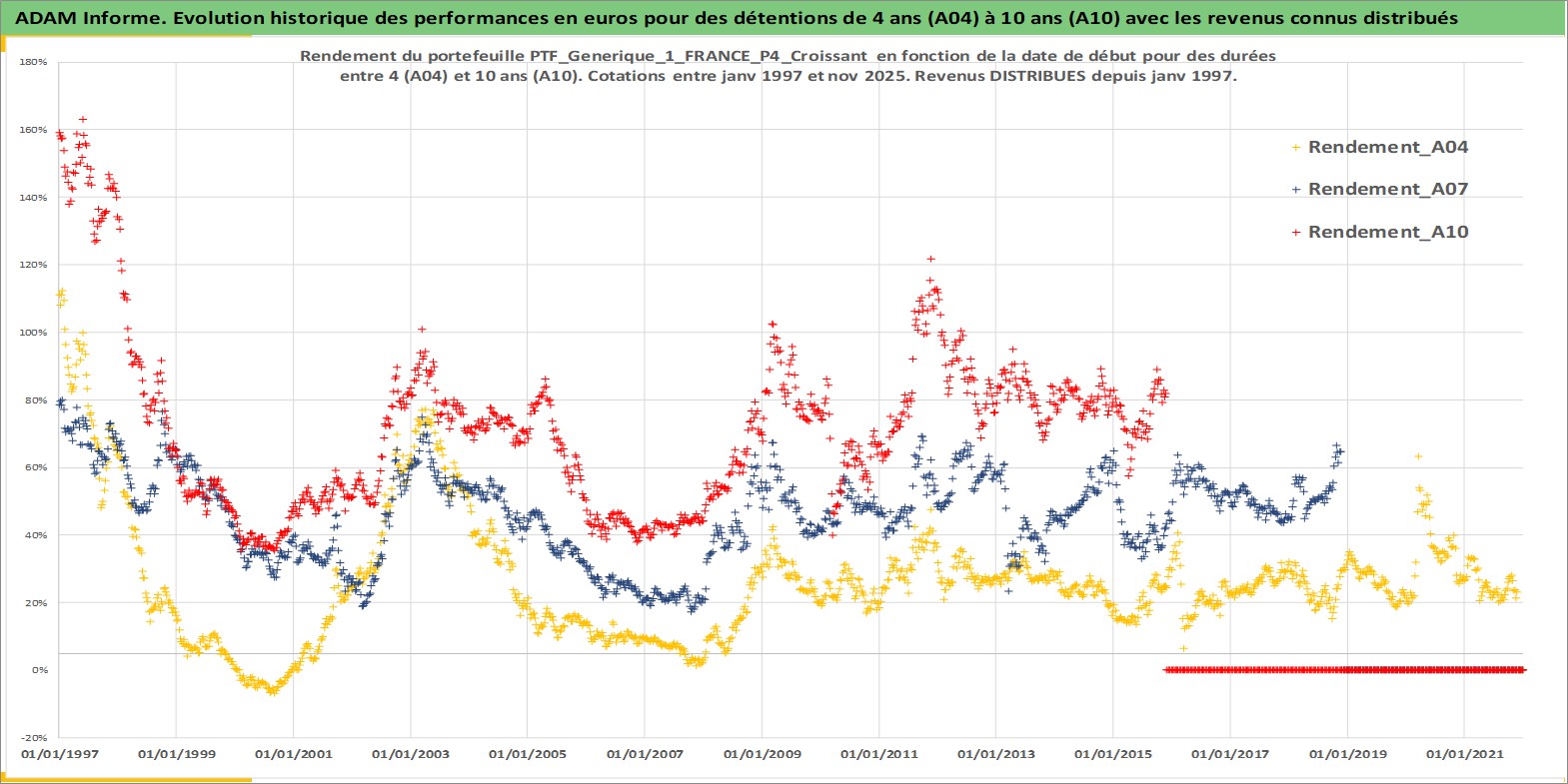 Site dédié aux investisseursPage dédiée sur site financeAnalyse des valorisations hebdomadaires du portefeuille PTF_Generique_1_FRANCE_P4_Croissant_8actifs avec un profil P4_Croissant. Ce portefeuille est cote en EUR. Les valorisations couvrent les semaines 1997W01 a 2025W48. Les revenus de cet actif financier sont pris en compte depuis la semaine 1997W01. La note ESG de cet actif n'est pas connue.