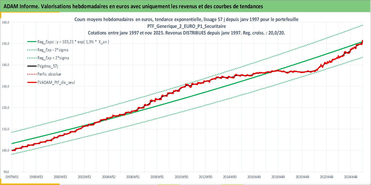 Site dédié aux investisseursPage dédiée sur site financeAnalyse des valorisations hebdomadaires du portefeuille PTF_Generique_2_EURO_P1_Securitaire_8actifs avec un profil P1_Securitaire. Ce portefeuille est cote en EUR. Les valorisations couvrent les semaines 1997W01 a 2025W48. Les revenus de cet actif financier sont pris en compte depuis la semaine 1997W01. La note ESG de cet actif n'est pas connue.