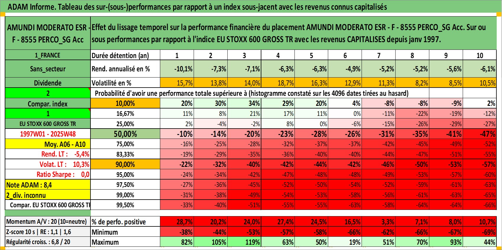Site dédié aux investisseursPage dédiée sur site financeAnalyse des valorisations hebdomadaires du fonds AMUNDI MODERATO ESR - F - 8555 PERCO_SG Acc. Cet actif est cote en EUR. Les valorisations couvrent les semaines 1997W01 a 2025W48. Les revenus de cet actif financier sont pris en compte depuis la semaine 1997W01. La note ESG de cet actif n'est pas connue.