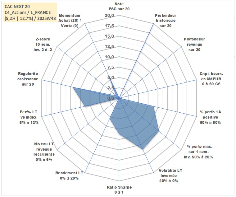 Site dédié aux investisseursPage dédiée sur site financeAnalyse des valorisations hebdomadaires de l'actif CAC NEXT 20. Cet actif est cote en EUR. Les valorisations couvrent les semaines 1997W01 a 2025W14. Les revenus de cet actif financier ne sont pas connus car non existants ou non disponibles sur le site Yahoo Finance. La note ESG de cet actif n'est pas connue.