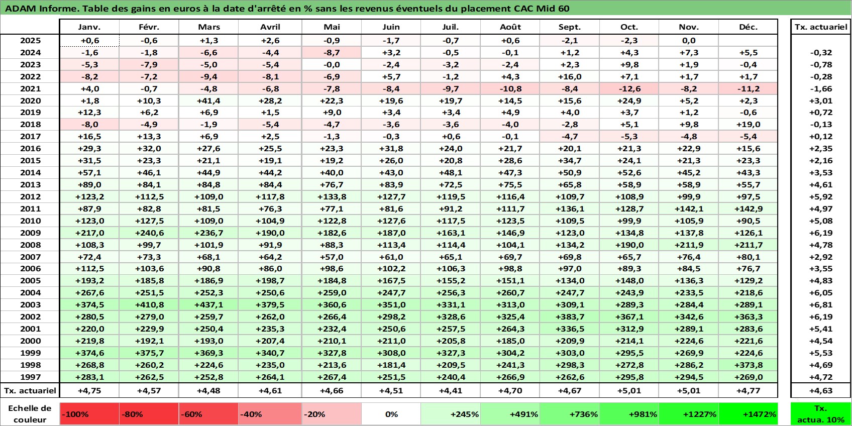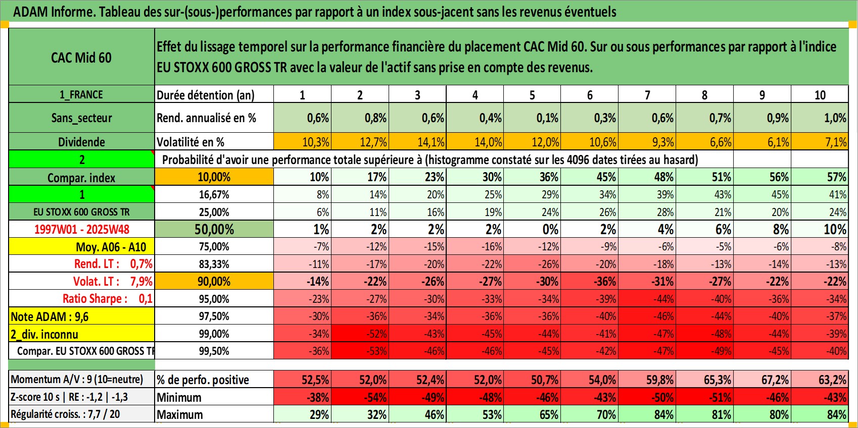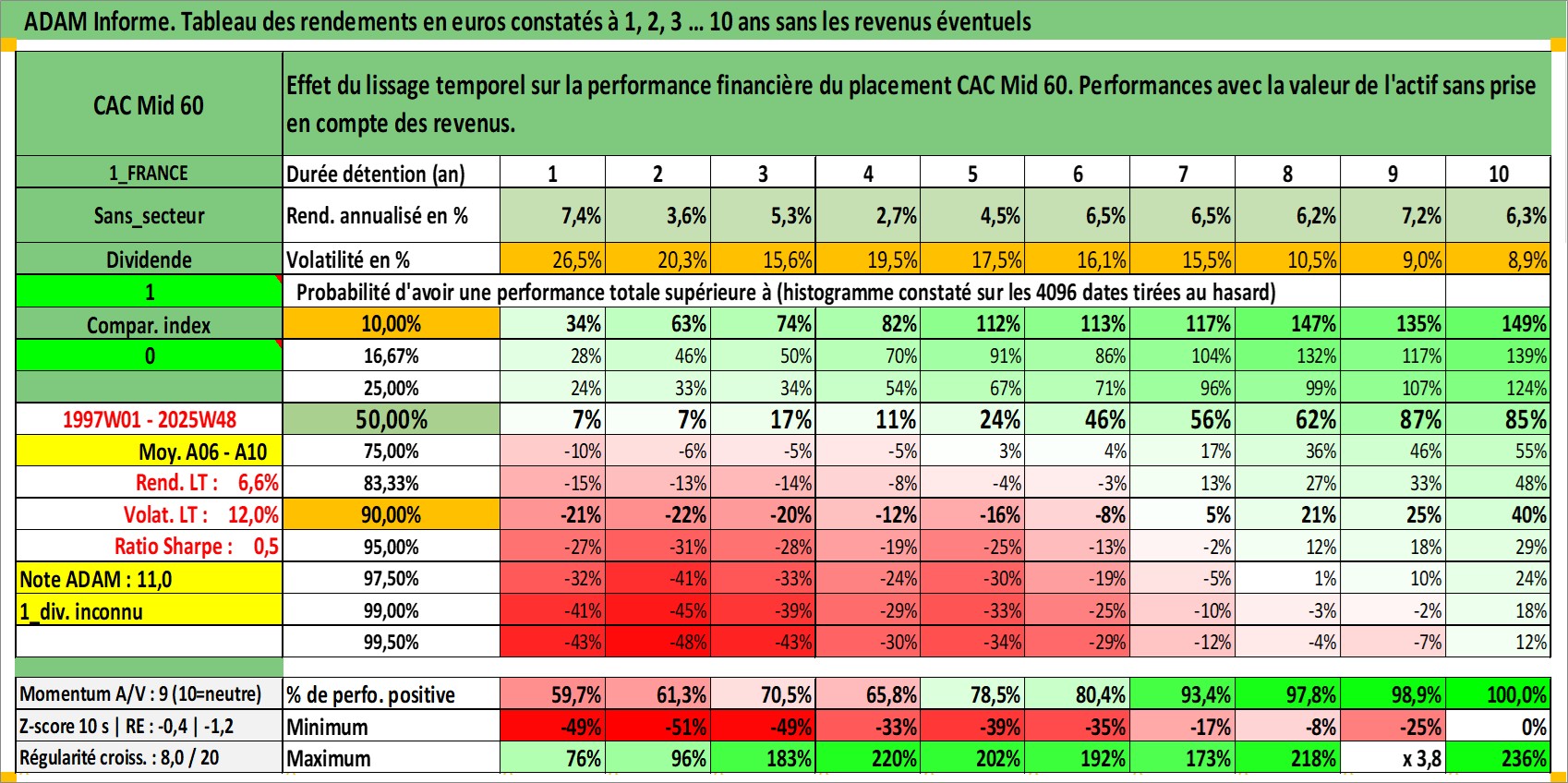 Site dédié aux investisseursPage dédiée sur site financeAnalyse des valorisations hebdomadaires de l'actif CAC Mid 60. Cet actif est cote en EUR. Les valorisations couvrent les semaines 1997W01 a 2025W48. Les revenus de cet actif financier ne sont pas connus car non existants ou non disponibles sur le site Yahoo Finance. La note ESG de cet actif n'est pas connue.