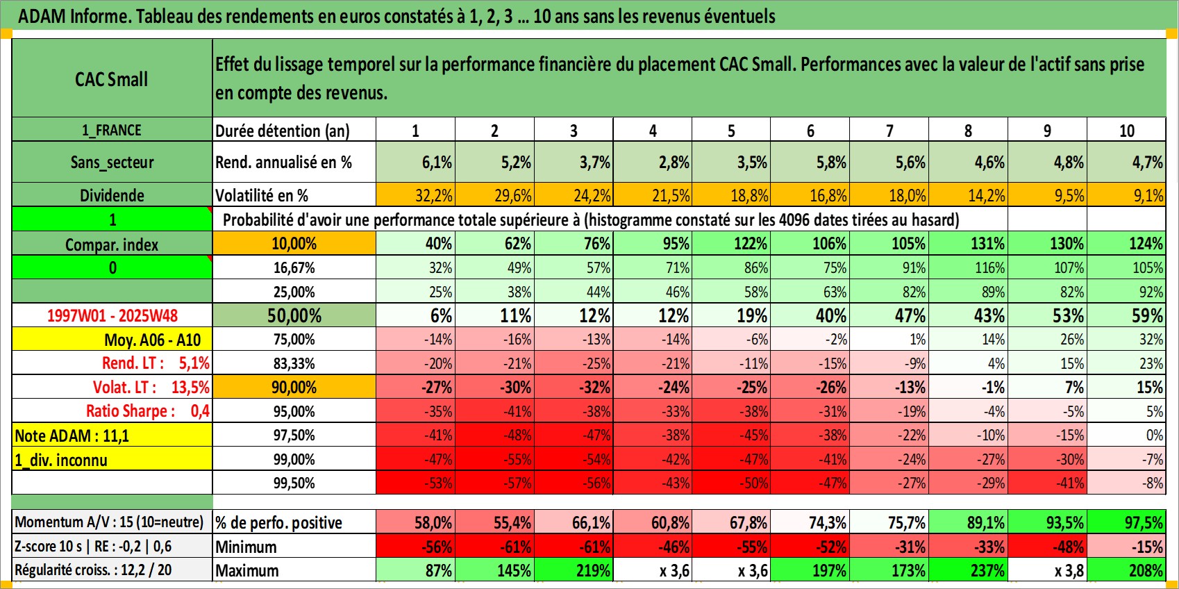 Site dédié aux investisseursPage dédiée sur site financeAnalyse des valorisations hebdomadaires de l'actif CAC Small. Cet actif est cote en EUR. Les valorisations couvrent les semaines 1997W01 a 2025W48. Les revenus de cet actif financier ne sont pas connus car non existants ou non disponibles sur le site Yahoo Finance. La note ESG de cet actif n'est pas connue.
