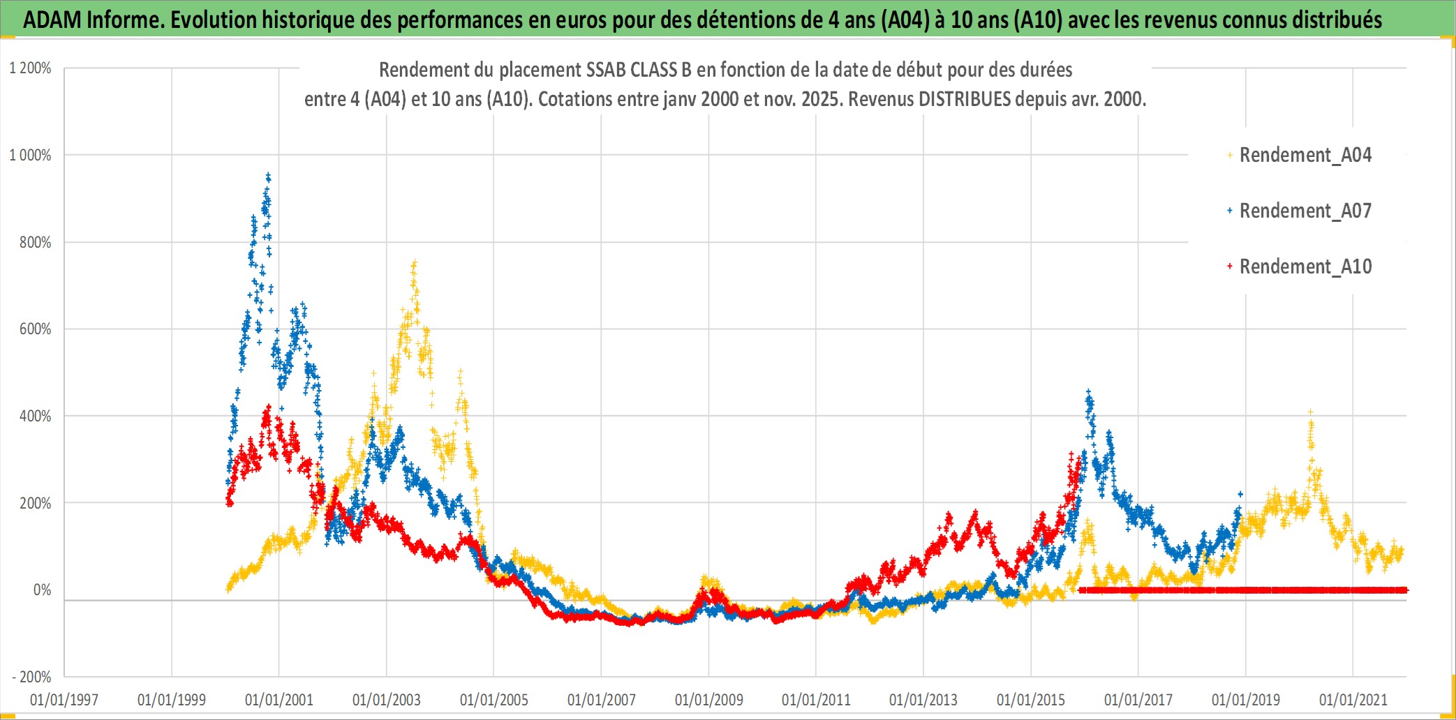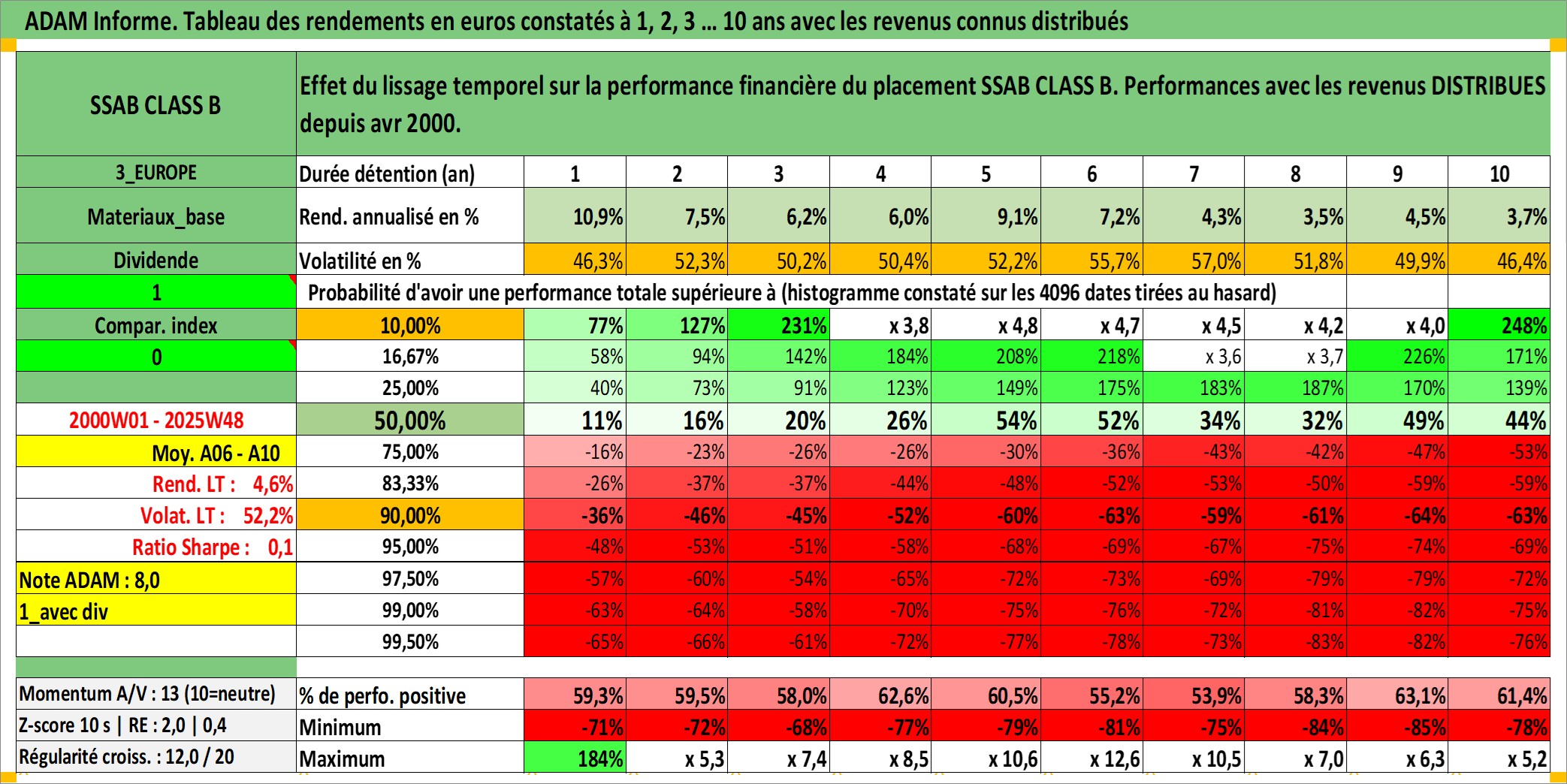 Site dédié aux investisseursPage dédiée sur site financeAnalyse des valorisations hebdomadaires de l'action SSAB CLASS B. Cet actif est cote en SEK. Les valorisations sont en contrevaleur EURO et couvrent les semaines 2000W01 a 2025W48. Les revenus de cet actif financier sont pris en compte depuis la semaine 2000W17. La note ESG de cet actif n'est pas connue.