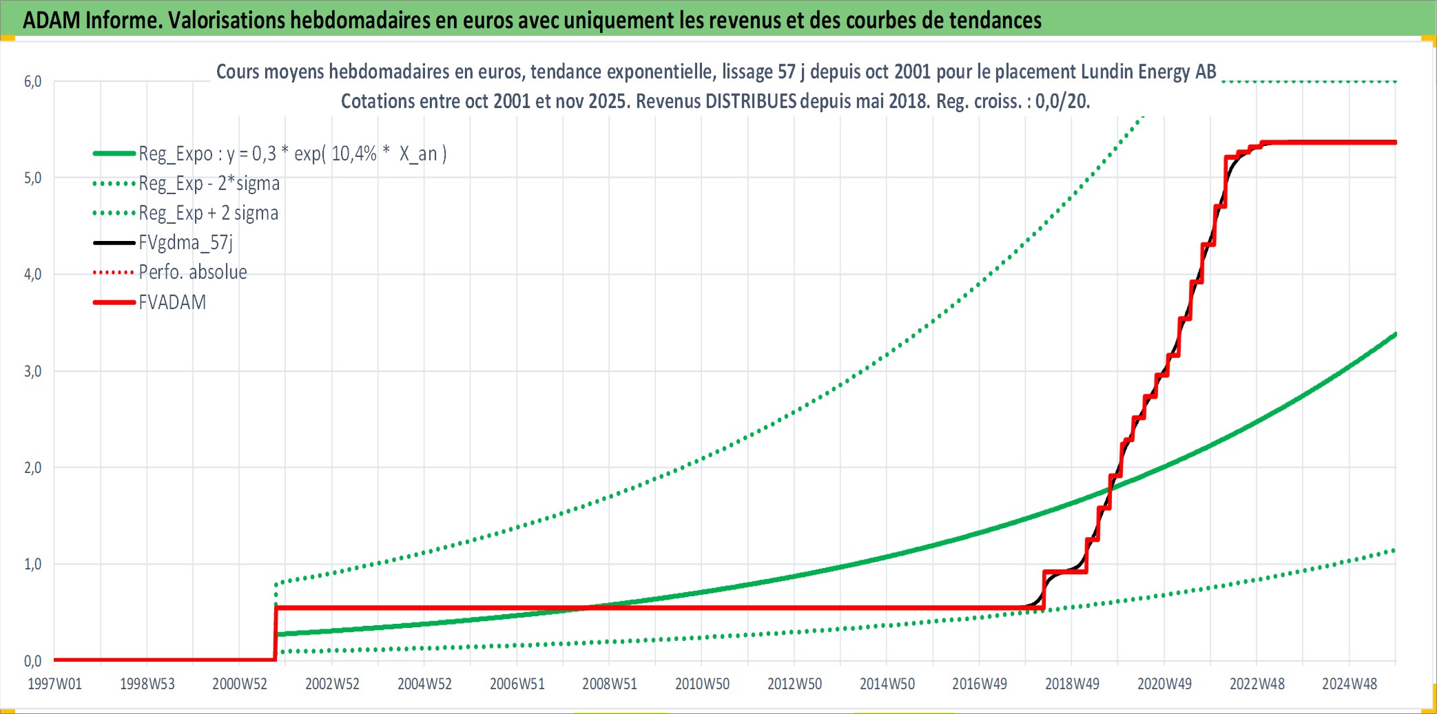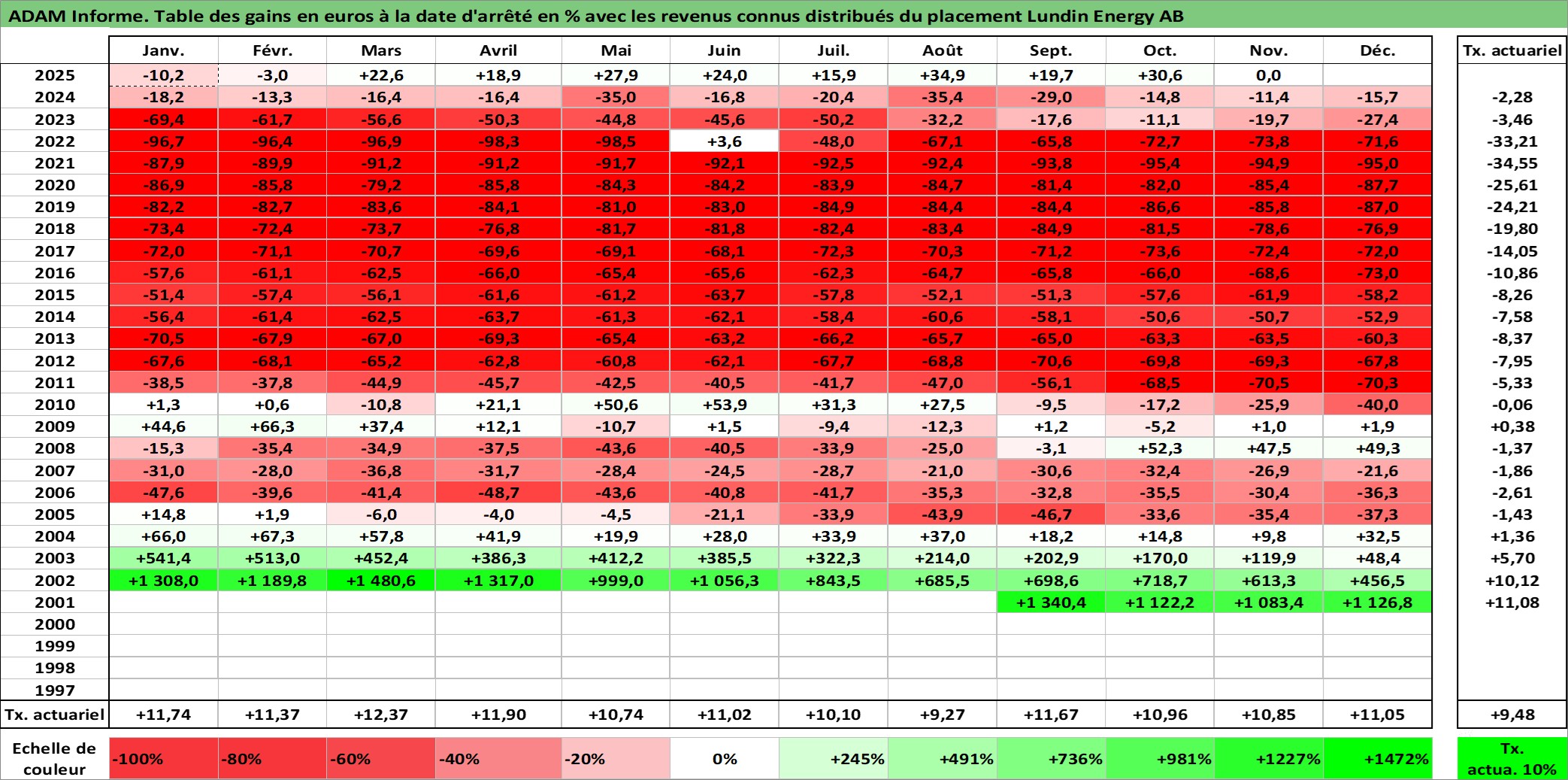 Site dédié aux investisseursPage dédiée sur site financeAnalyse des valorisations hebdomadaires de l'action Lundin Energy AB. Cet actif est cote en SEK. Les valorisations sont en contrevaleur EURO et couvrent les semaines 2001W41 a 2025W48. Les revenus de cet actif financier sont pris en compte depuis la semaine 2018W18. La note globale ESG de cet actif est estimee a 4.0 (apres rebasage entre 0 et 20).
