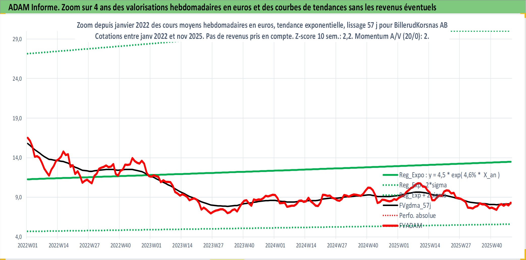 Site dédié aux investisseursPage dédiée sur site financeAnalyse des valorisations hebdomadaires de l'action BillerudKorsnas AB. Cet actif est cote en SEK. Les valorisations sont en contrevaleur EURO et couvrent les semaines 2001W52 a 2025W48. Les revenus de cet actif financier sont pris en compte depuis la semaine 2002W19. La note ESG de cet actif n'est pas connue.