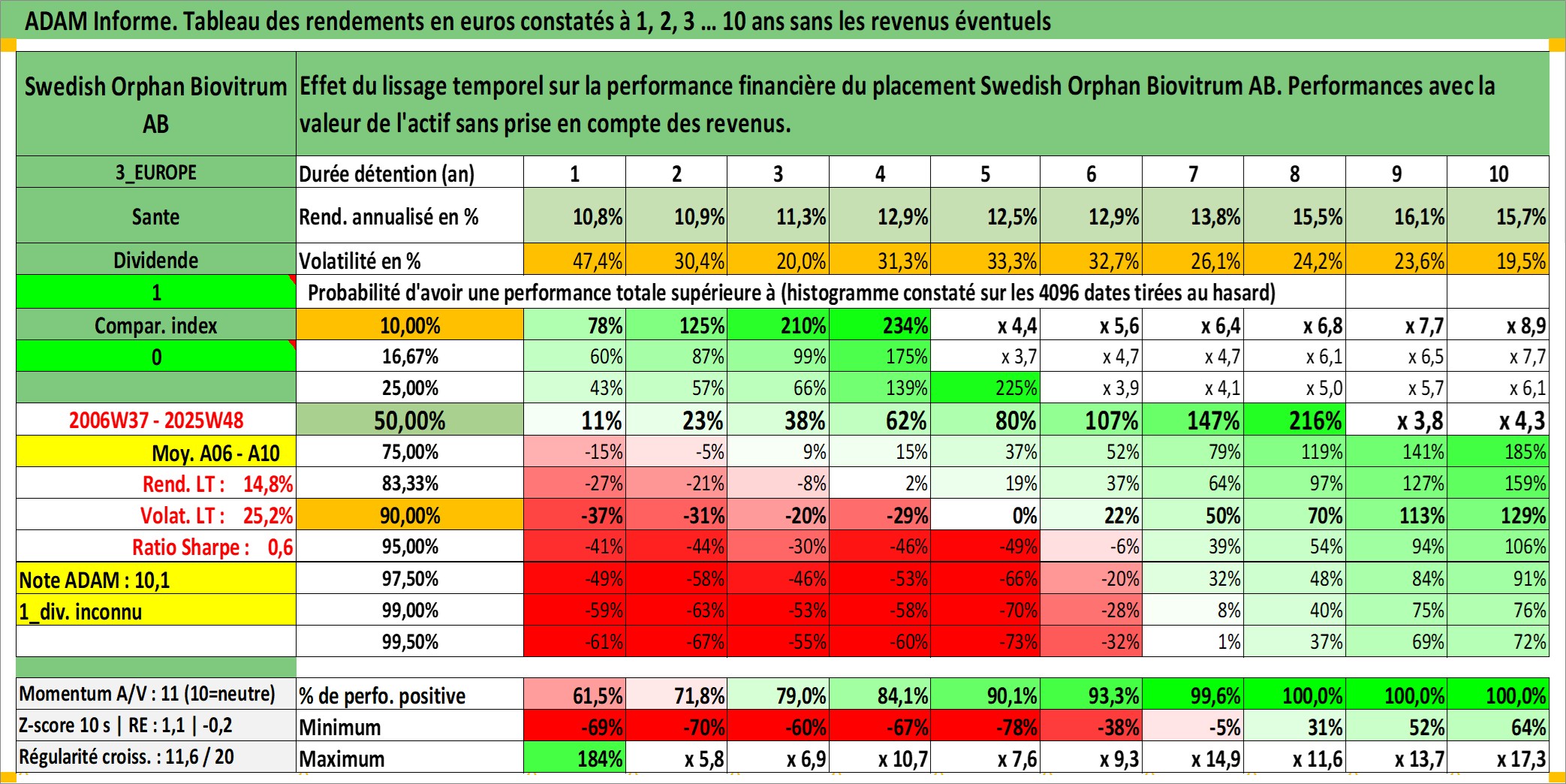 Site dédié aux investisseursPage dédiée sur site financeAnalyse des valorisations hebdomadaires de l'action Swedish Orphan Biovitrum AB. Cet actif est cote en SEK. Les valorisations sont en contrevaleur EURO et couvrent les semaines 2006W37 a 2025W48. Les revenus de cet actif financier ne sont pas connus car non existants ou non disponibles sur le site Yahoo Finance. La note ESG de cet actif n'est pas connue.