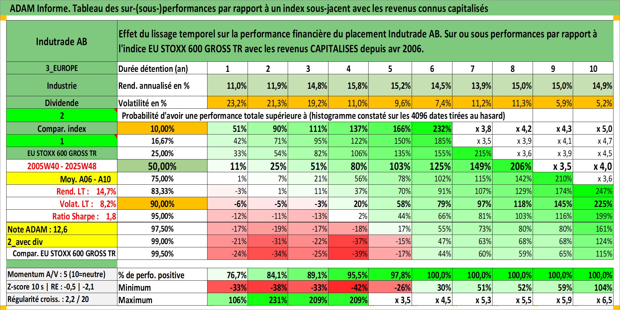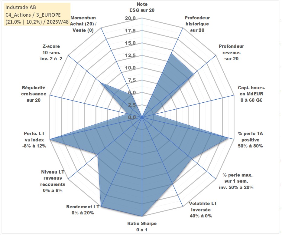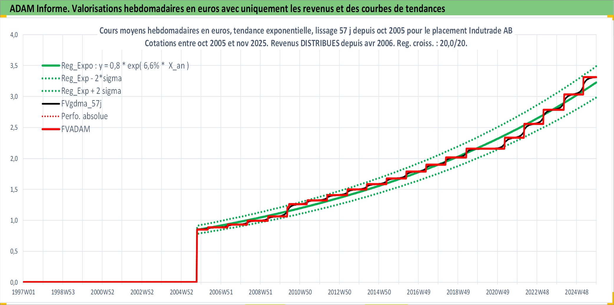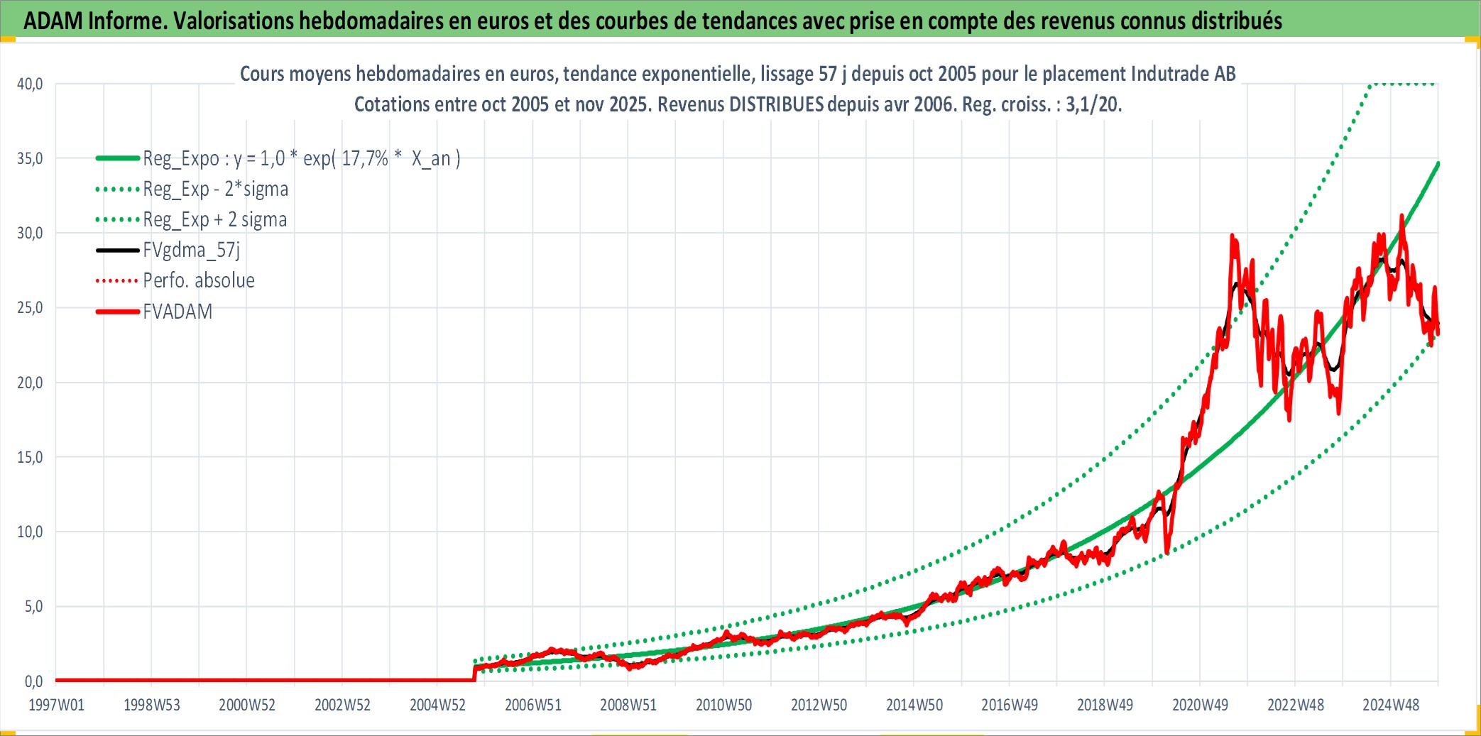 Site dédié aux investisseursPage dédiée sur site financeAnalyse des valorisations hebdomadaires de l'action Indutrade AB. Cet actif est cote en SEK. Les valorisations sont en contrevaleur EURO et couvrent les semaines 2005W40 a 2025W48. Les revenus de cet actif financier sont pris en compte depuis la semaine 2006W17. La note ESG de cet actif n'est pas connue.
