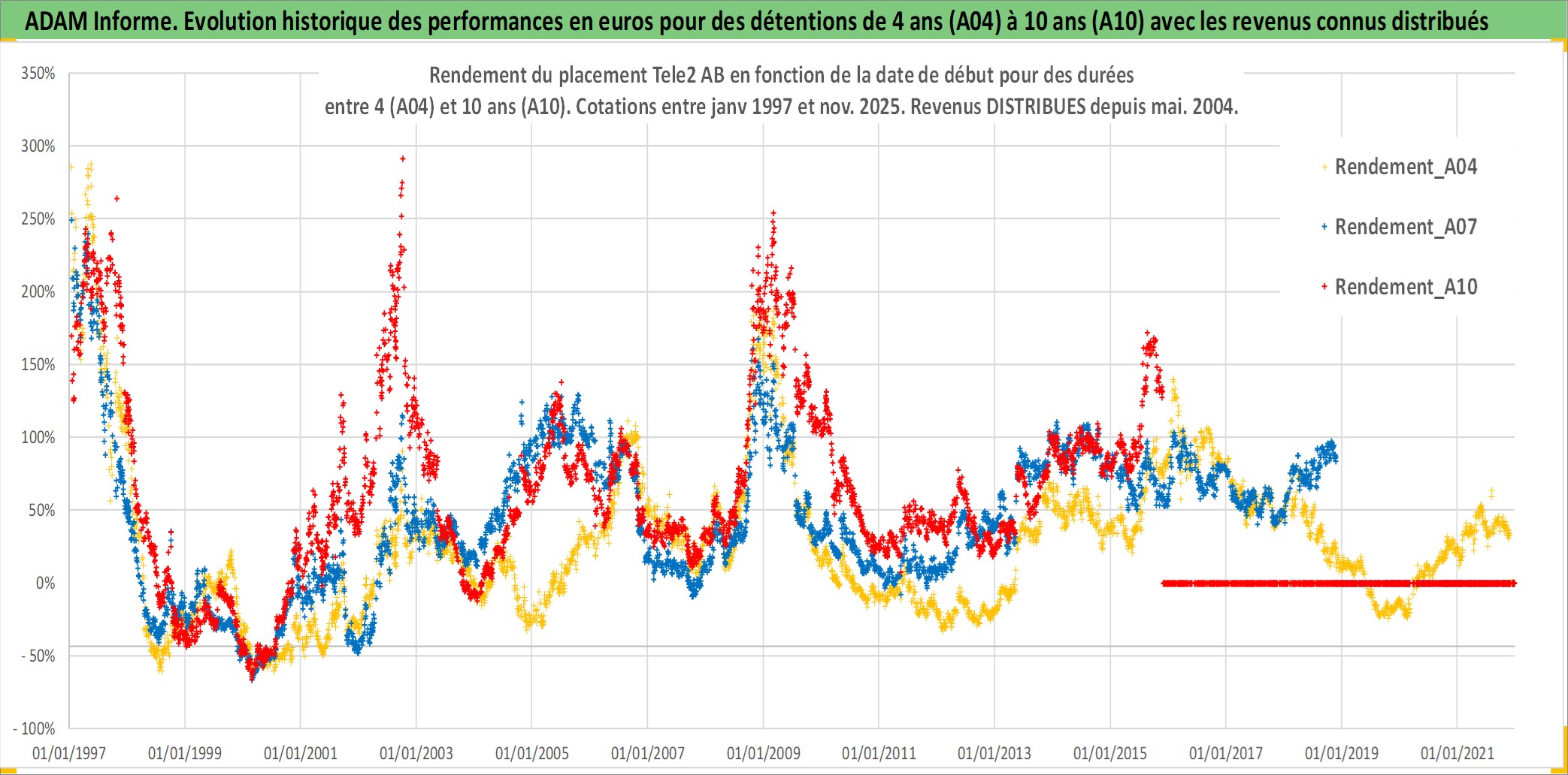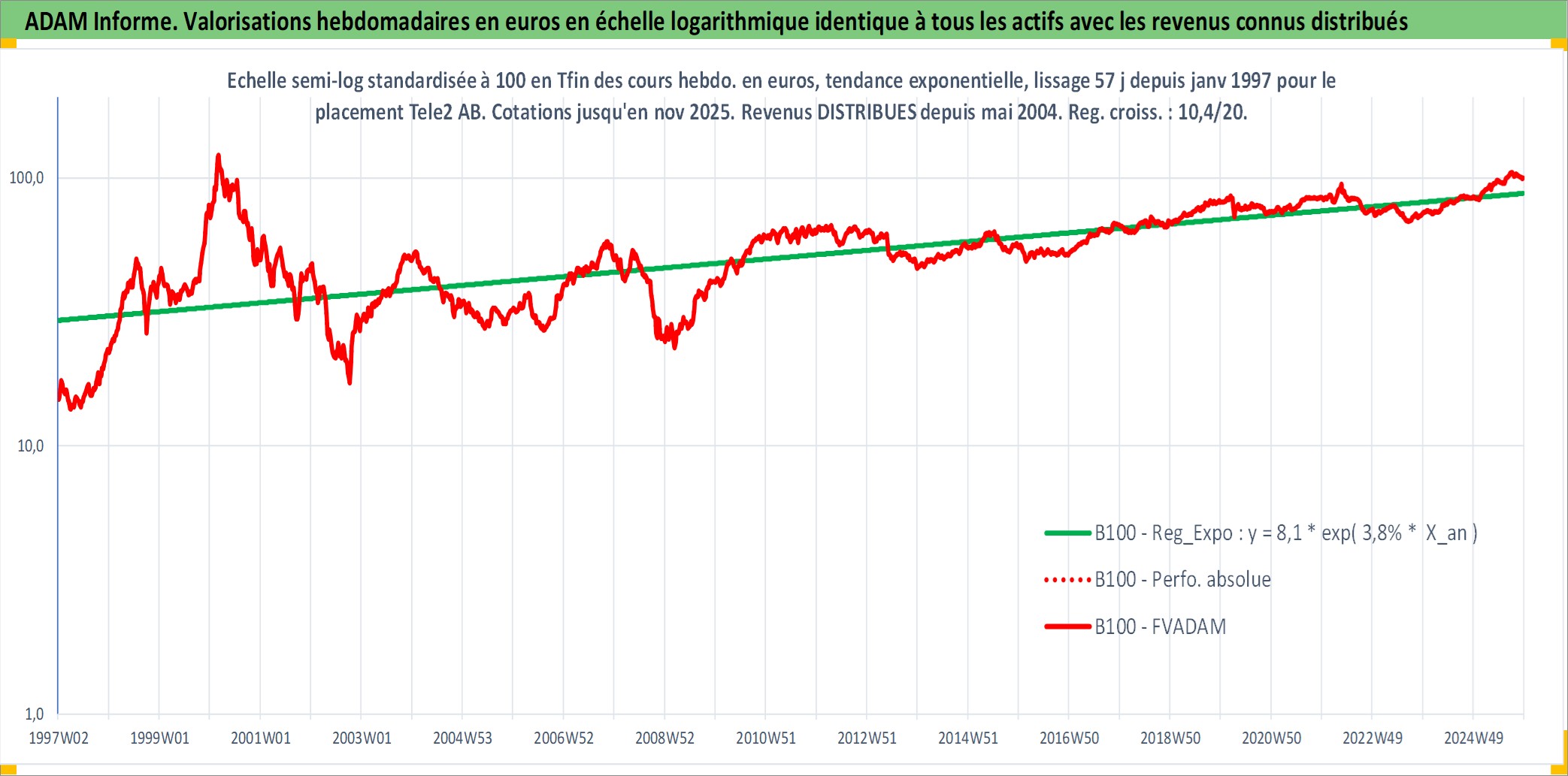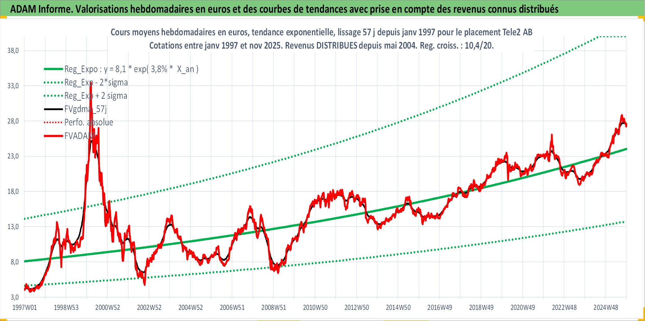 Site dédié aux investisseursPage dédiée sur site financeAnalyse des valorisations hebdomadaires de l'action Tele2 AB. Cet actif est cote en SEK. Les valorisations sont en contrevaleur EURO et couvrent les semaines 1997W01 a 2025W48. Les revenus de cet actif financier sont pris en compte depuis la semaine 2004W20. La note ESG de cet actif n'est pas connue.