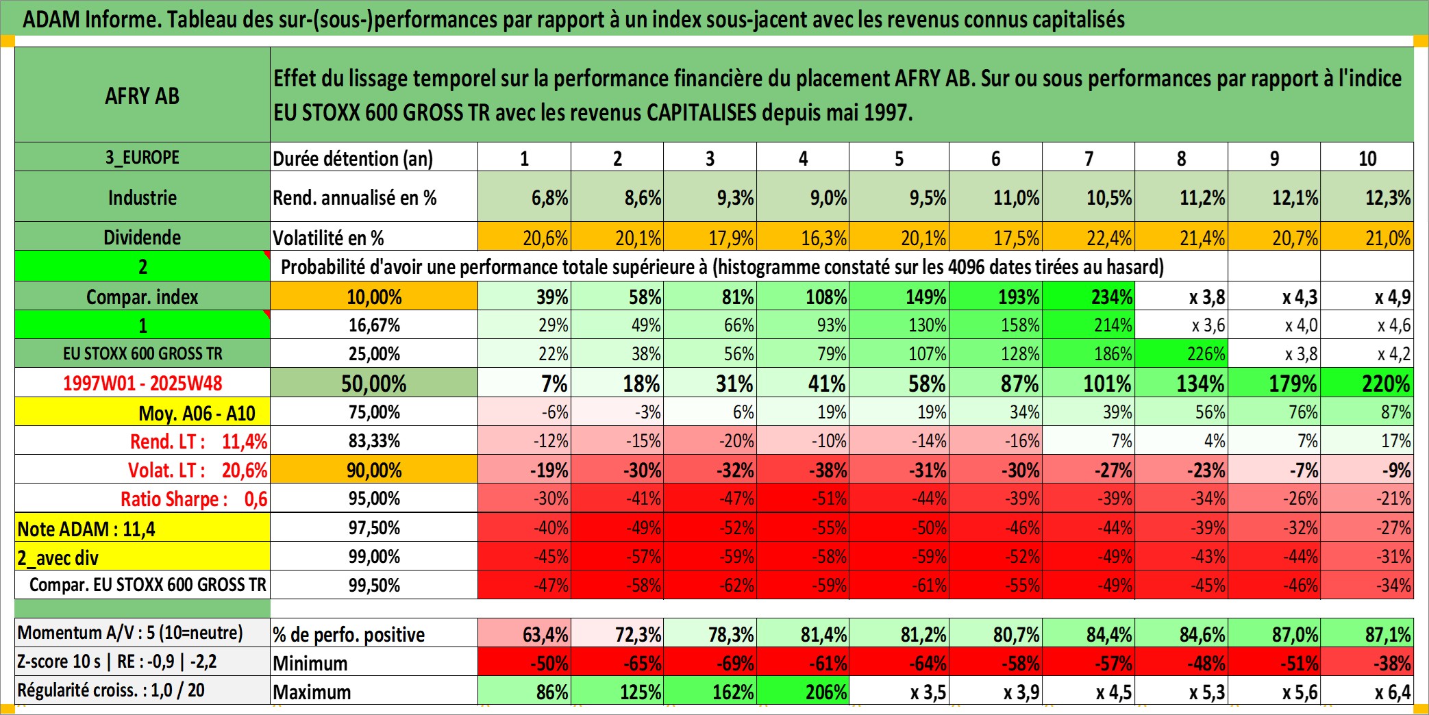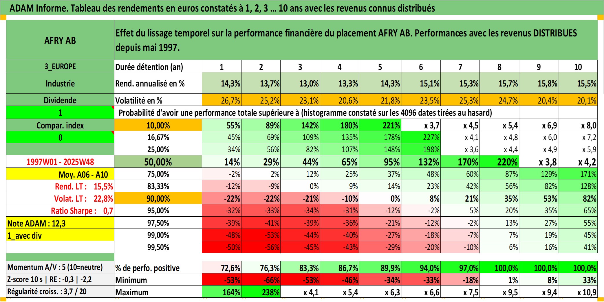 Site dédié aux investisseursPage dédiée sur site financeAnalyse des valorisations hebdomadaires de l'action AFRY AB. Cet actif est cote en SEK. Les valorisations sont en contrevaleur EURO et couvrent les semaines 1997W01 a 2025W48. Les revenus de cet actif financier sont pris en compte depuis la semaine 1997W19. La note ESG de cet actif n'est pas connue.