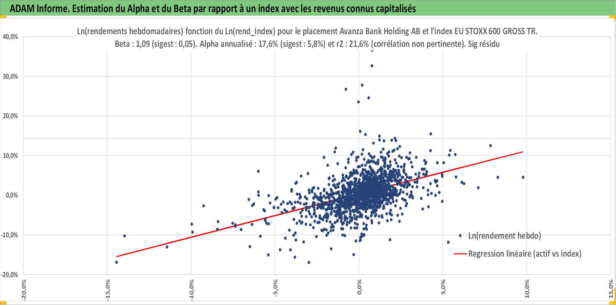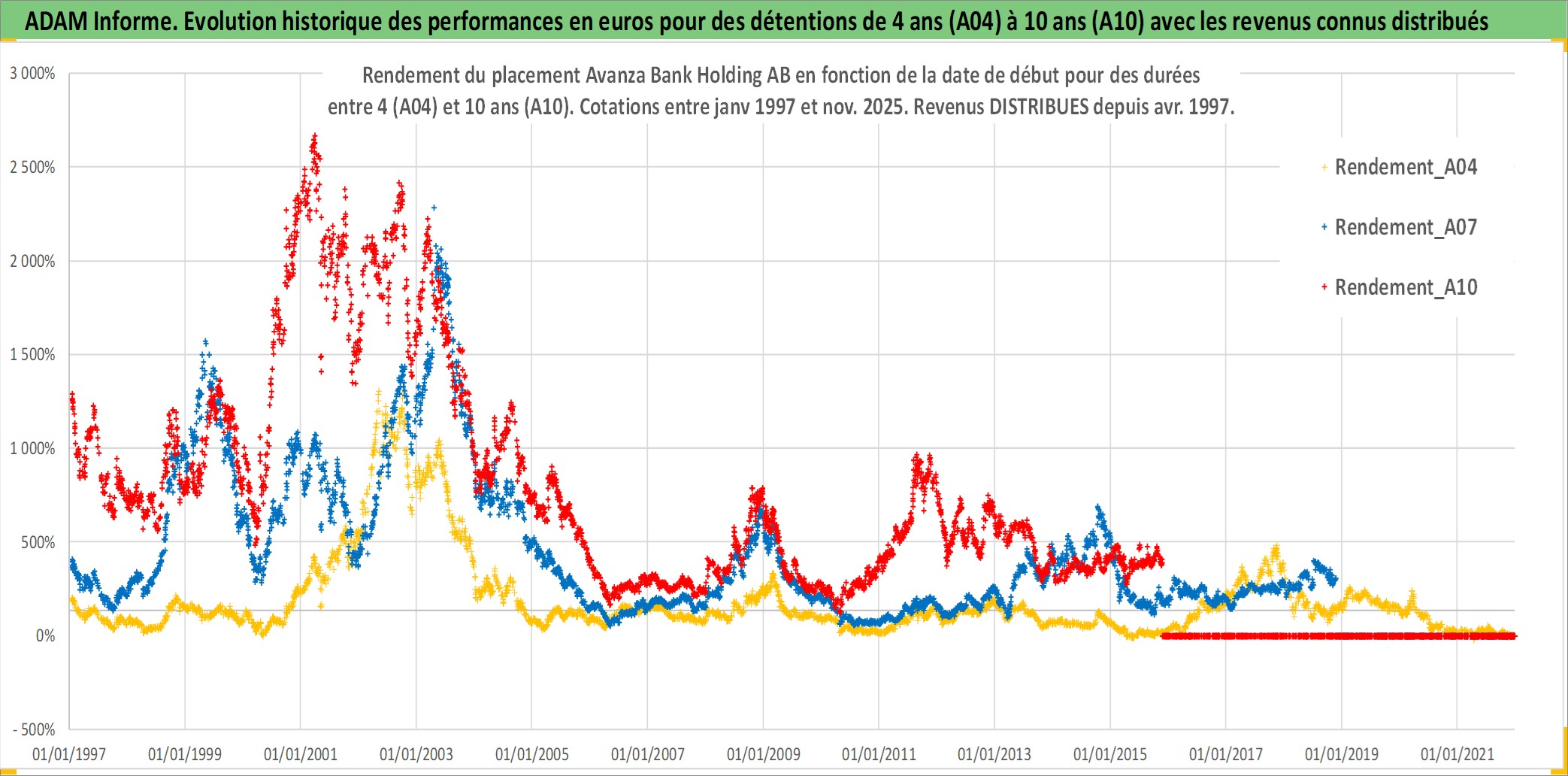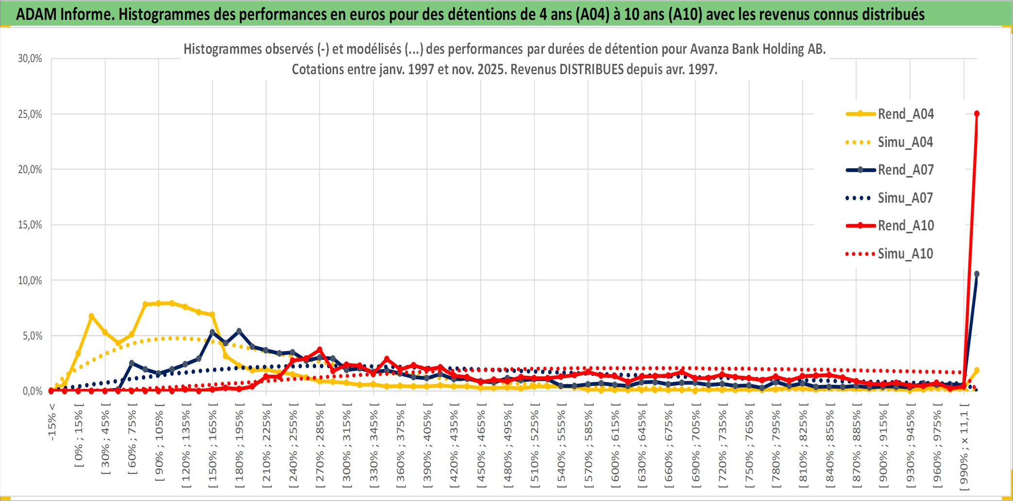 Site dédié aux investisseursPage dédiée sur site financeAnalyse des valorisations hebdomadaires de l'action Avanza Bank Holding AB. Cet actif est cote en SEK. Les valorisations sont en contrevaleur EURO et couvrent les semaines 1997W01 a 2025W48. Les revenus de cet actif financier sont pris en compte depuis la semaine 1997W15. La note ESG de cet actif n'est pas connue.