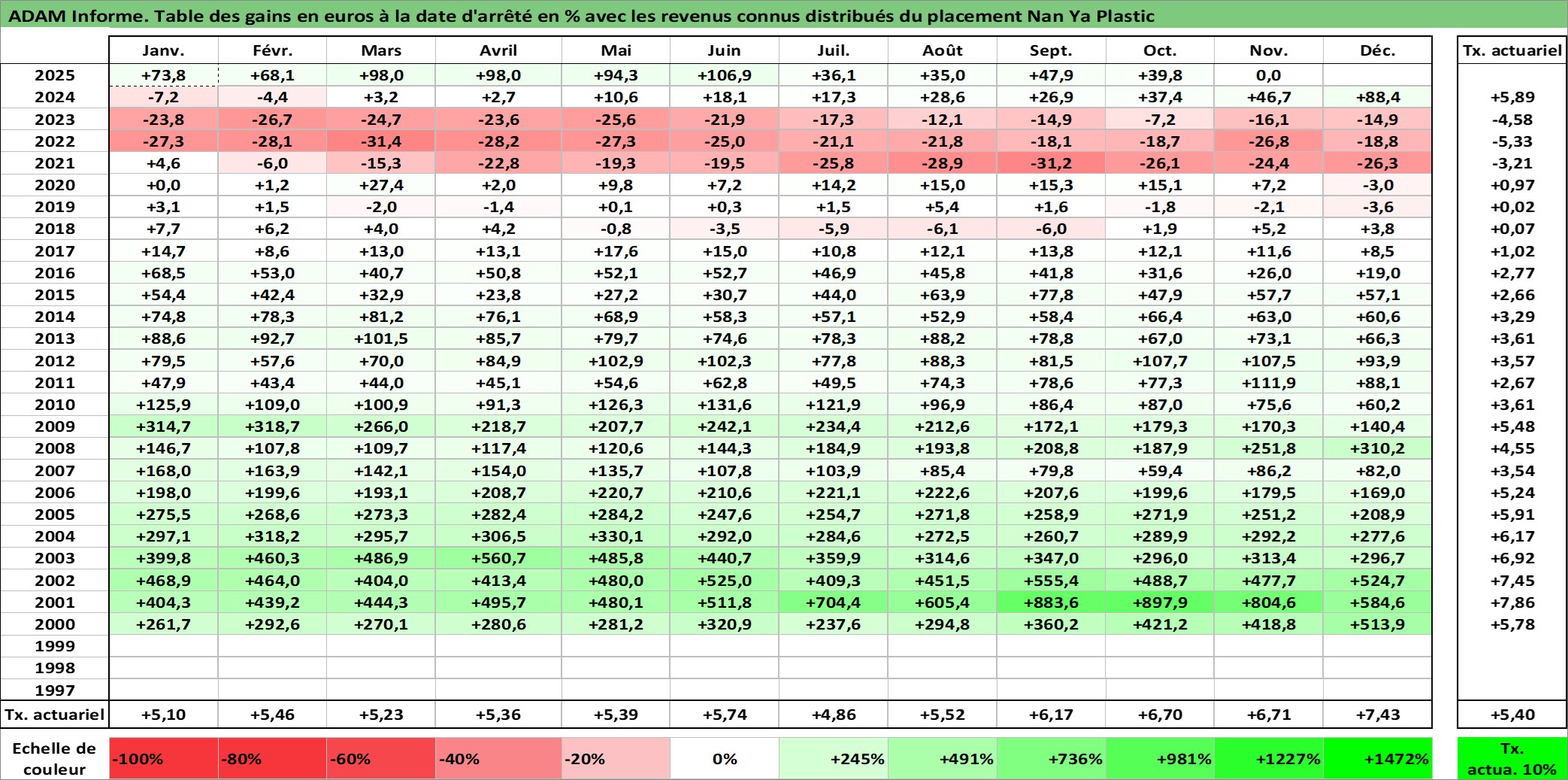 Dernière perfo 10 ans en %