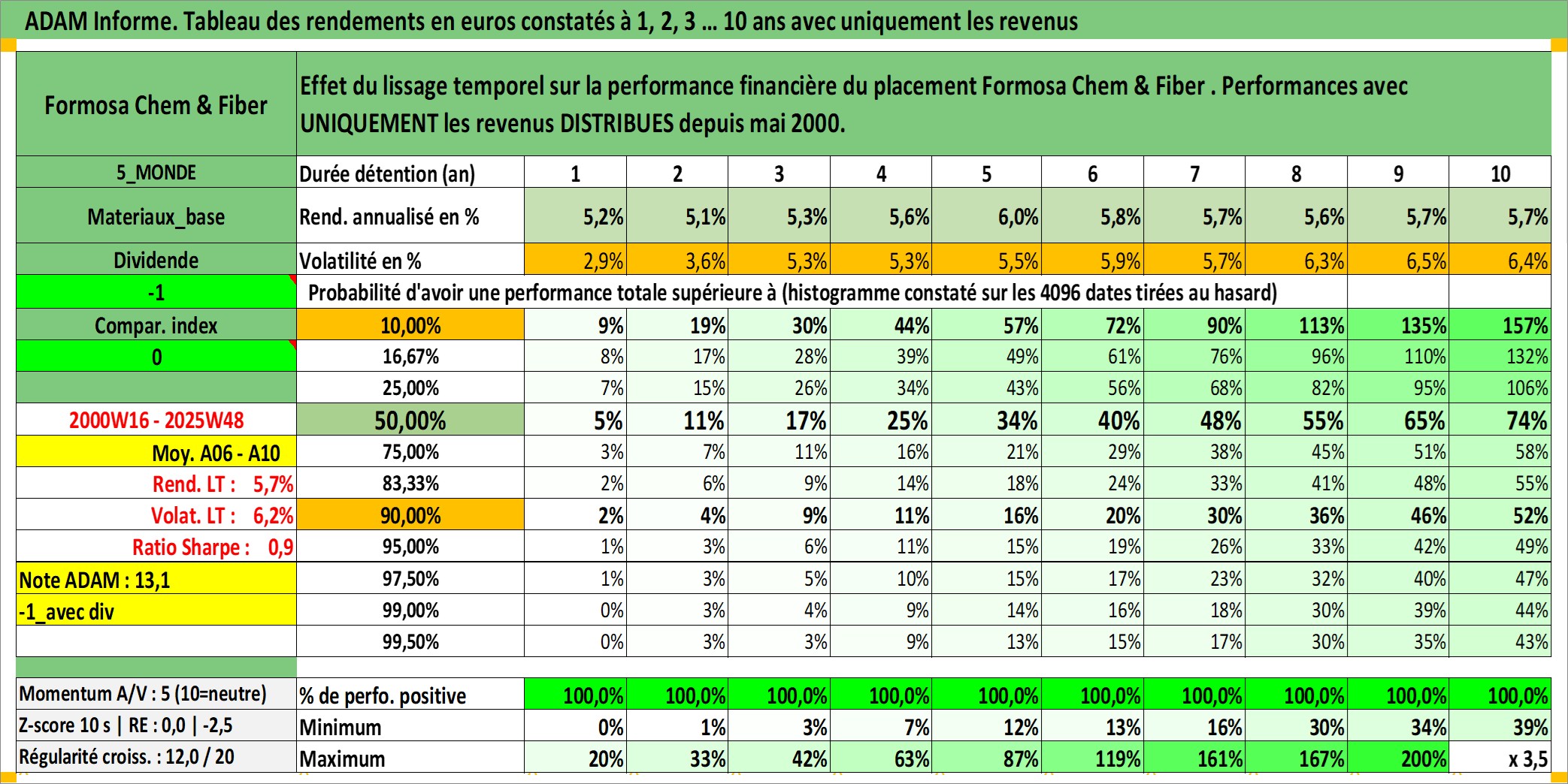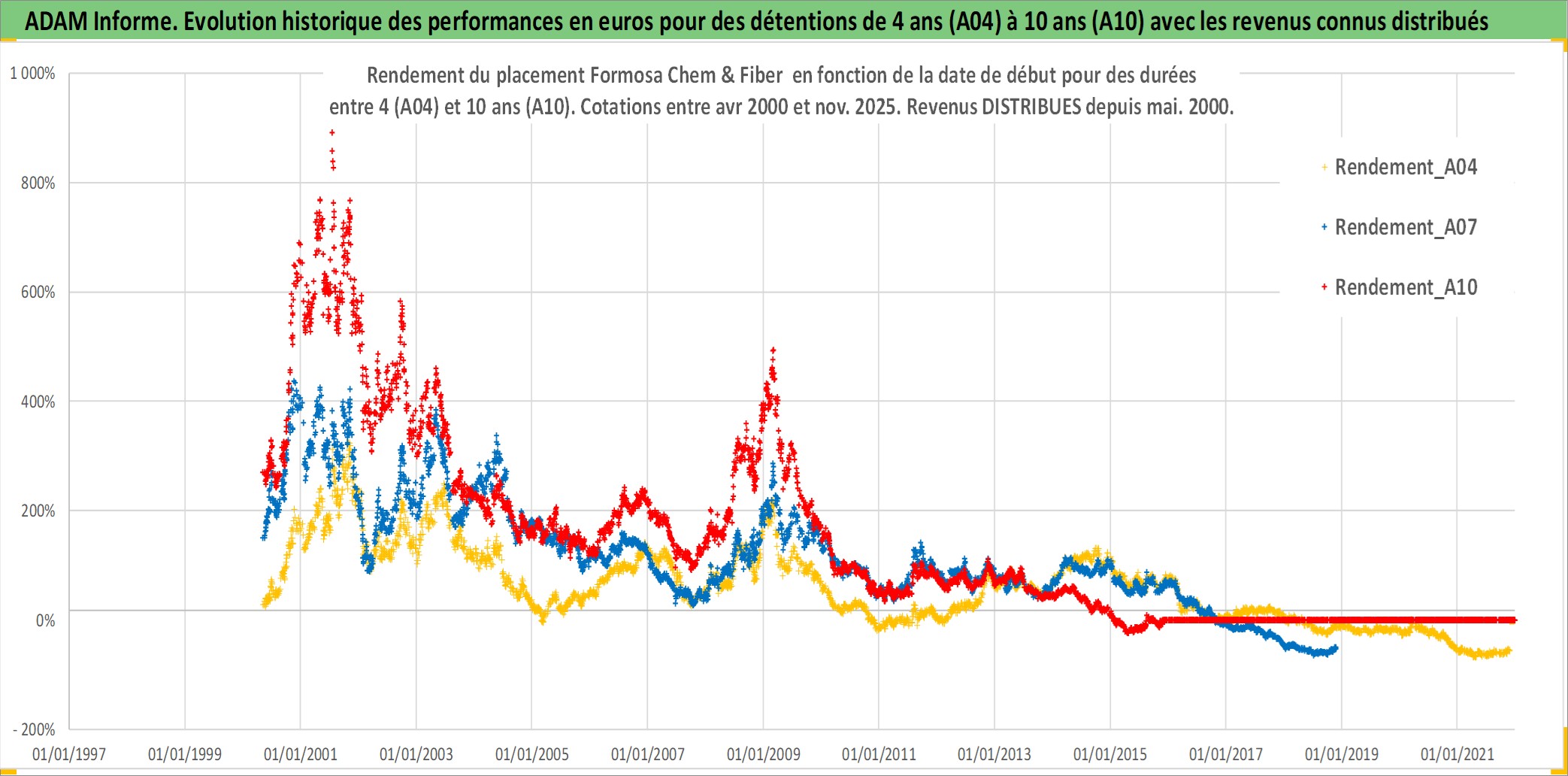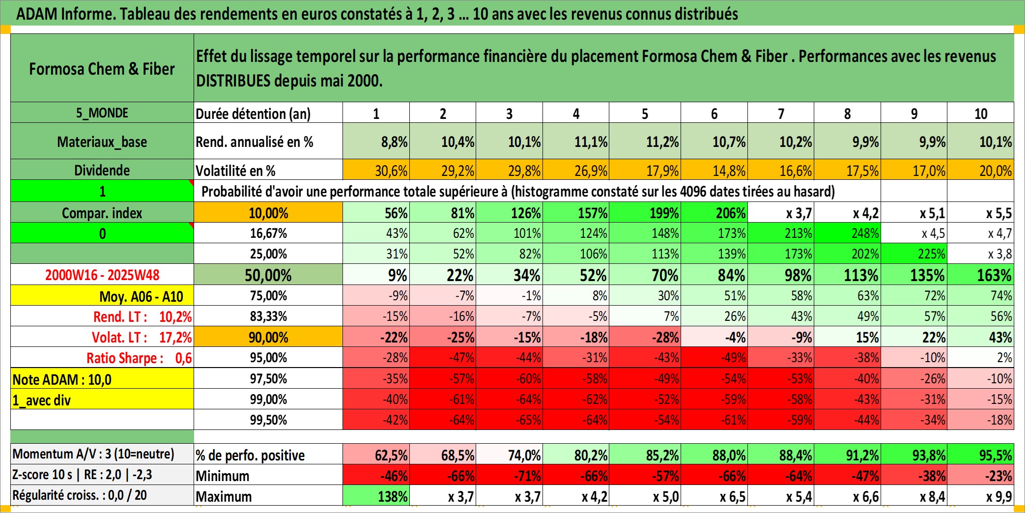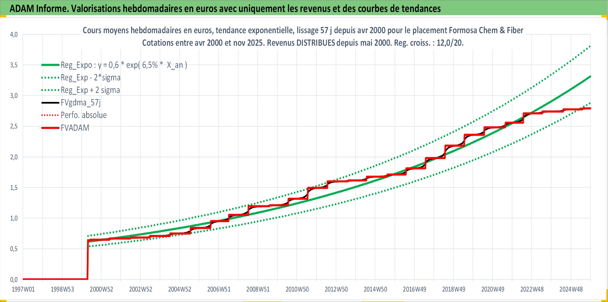 Site dédié aux investisseursPage dédiée sur site financeAnalyse des valorisations hebdomadaires de l'action Formosa Chem & Fiber . Cet actif est cote en TWD. Les valorisations sont en contrevaleur EURO et couvrent les semaines 2000W16 a 2025W48. Les revenus de cet actif financier sont pris en compte depuis la semaine 2000W22. La note globale ESG de cet actif est estimee a 8.0 (apres rebasage entre 0 et 20).