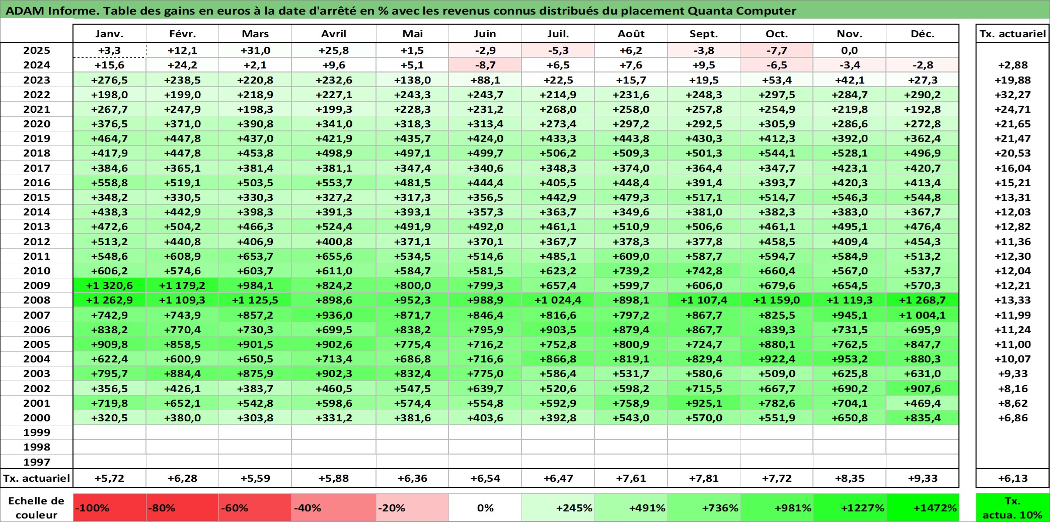 Dernière perfo 1 an en %