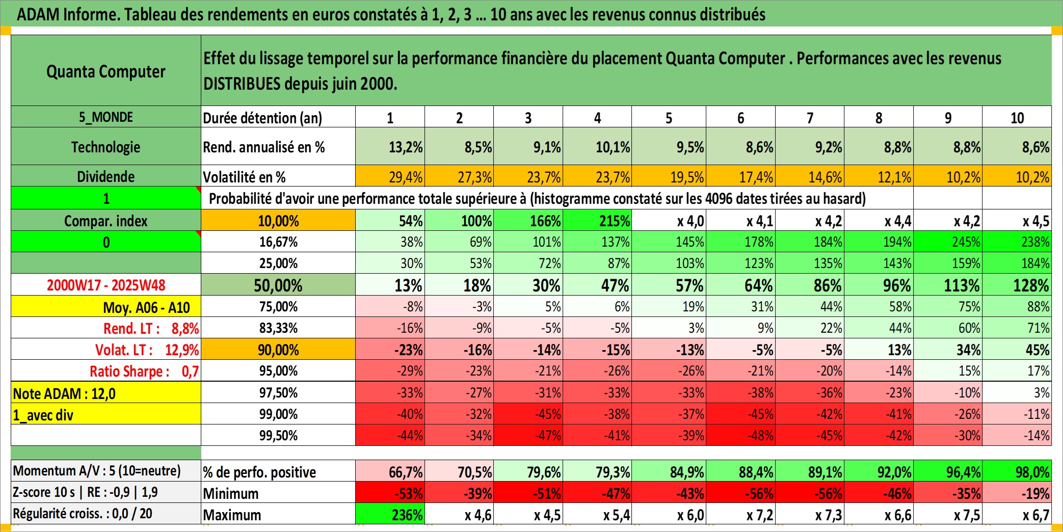 Dernière perfo 10 ans en %