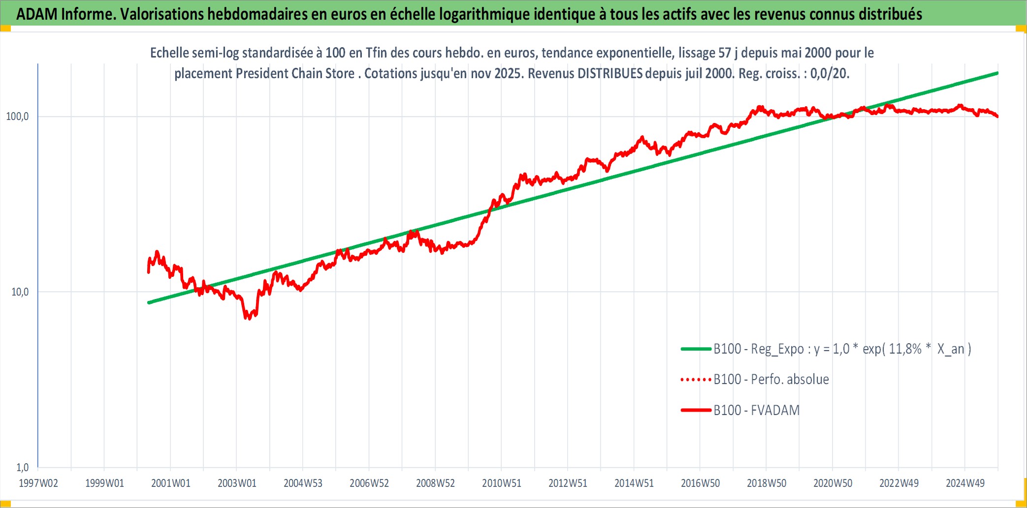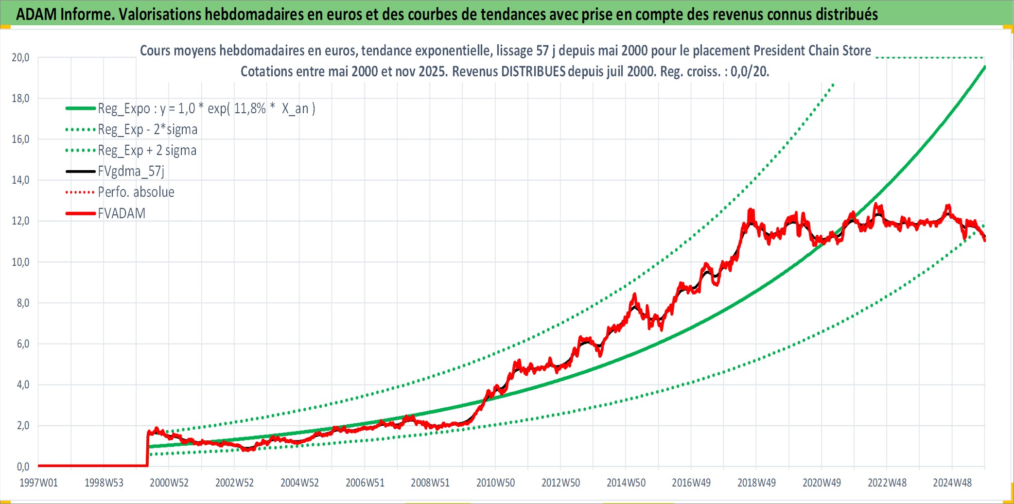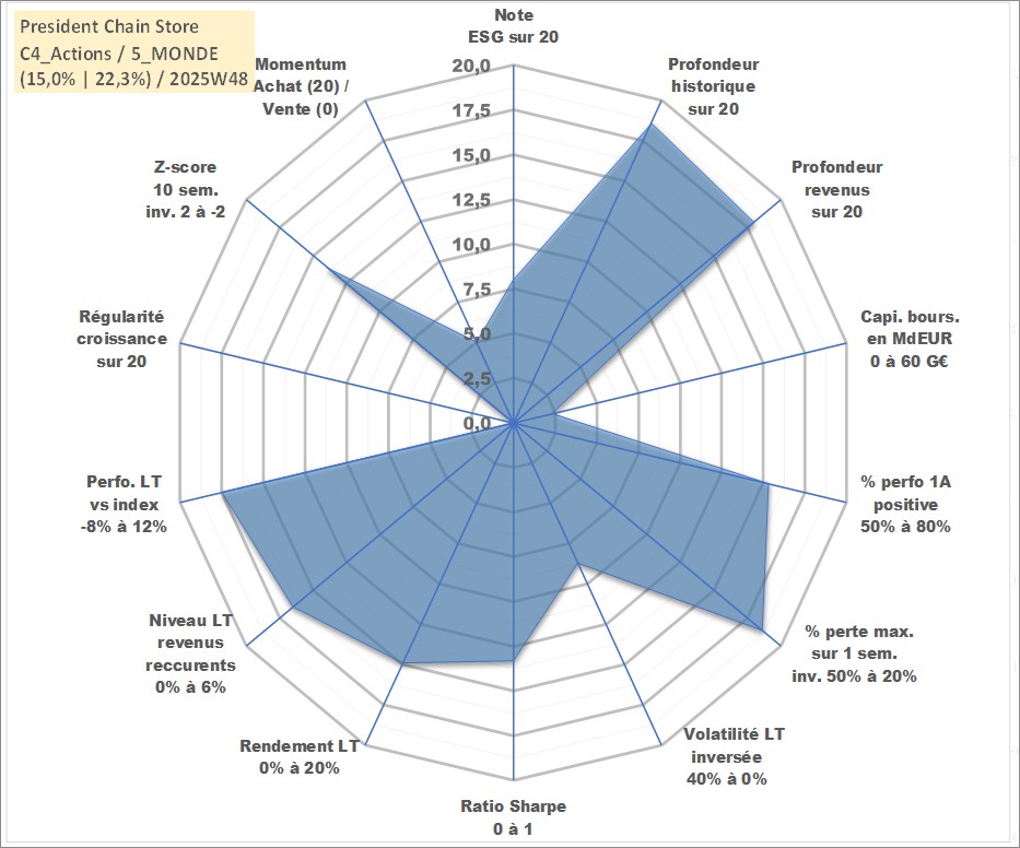 Site dédié aux investisseursPage dédiée sur site financeAnalyse des valorisations hebdomadaires de l'action President Chain Store . Cet actif est cote en TWD. Les valorisations sont en contrevaleur EURO et couvrent les semaines 2000W18 a 2025W48. Les revenus de cet actif financier sont pris en compte depuis la semaine 2000W30. La note globale ESG de cet actif est estimee a 8.0 (apres rebasage entre 0 et 20).