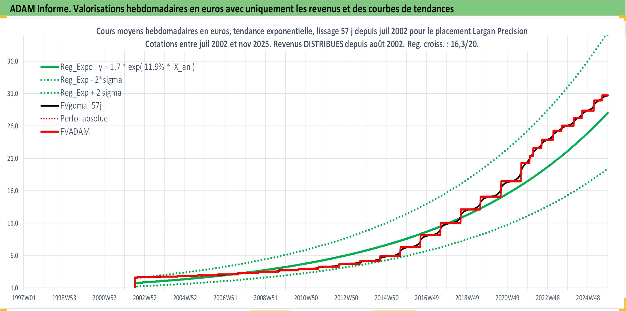 Site dédié aux investisseursPage dédiée sur site financeAnalyse des valorisations hebdomadaires de l'action Largan Precision . Cet actif est cote en TWD. Les valorisations sont en contrevaleur EURO et couvrent les semaines 2002W27 a 2025W48. Les revenus de cet actif financier sont pris en compte depuis la semaine 2002W35. La note globale ESG de cet actif est estimee a 10.0 (apres rebasage entre 0 et 20).