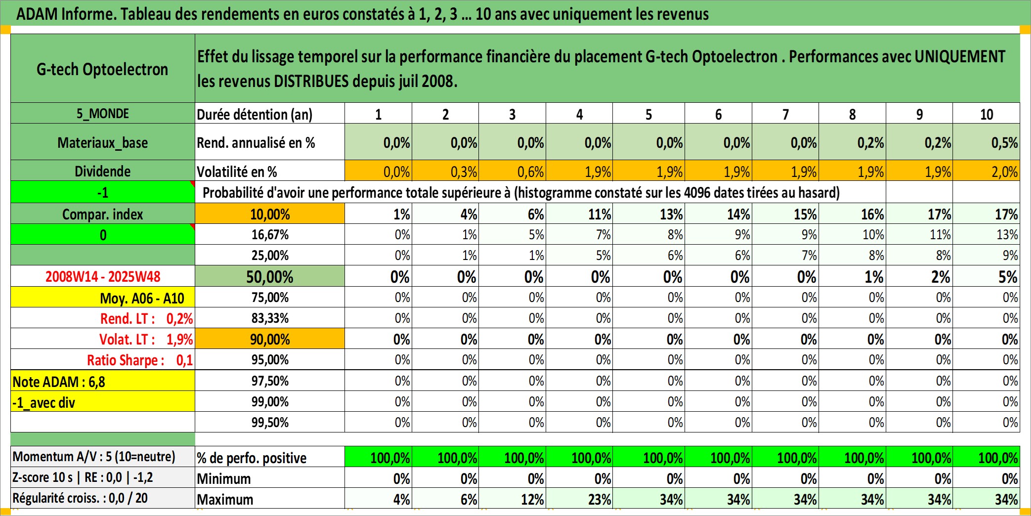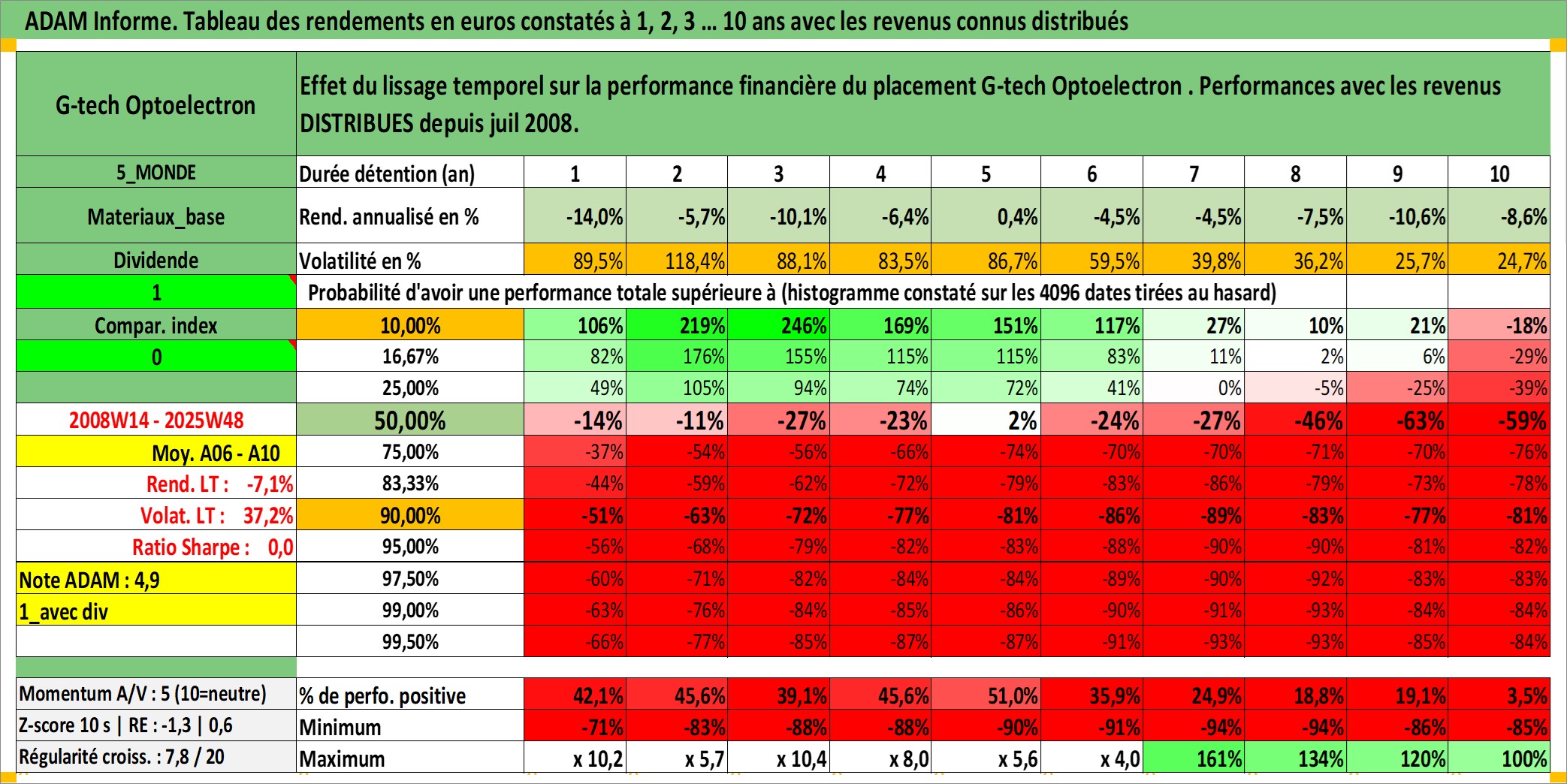Site dédié aux investisseursPage dédiée sur site financeAnalyse des valorisations hebdomadaires de l'action G-tech Optoelectron . Cet actif est cote en TWD. Les valorisations sont en contrevaleur EURO et couvrent les semaines 2008W14 a 2025W48. Les revenus de cet actif financier sont pris en compte depuis la semaine 2008W28. La note ESG de cet actif n'est pas connue.