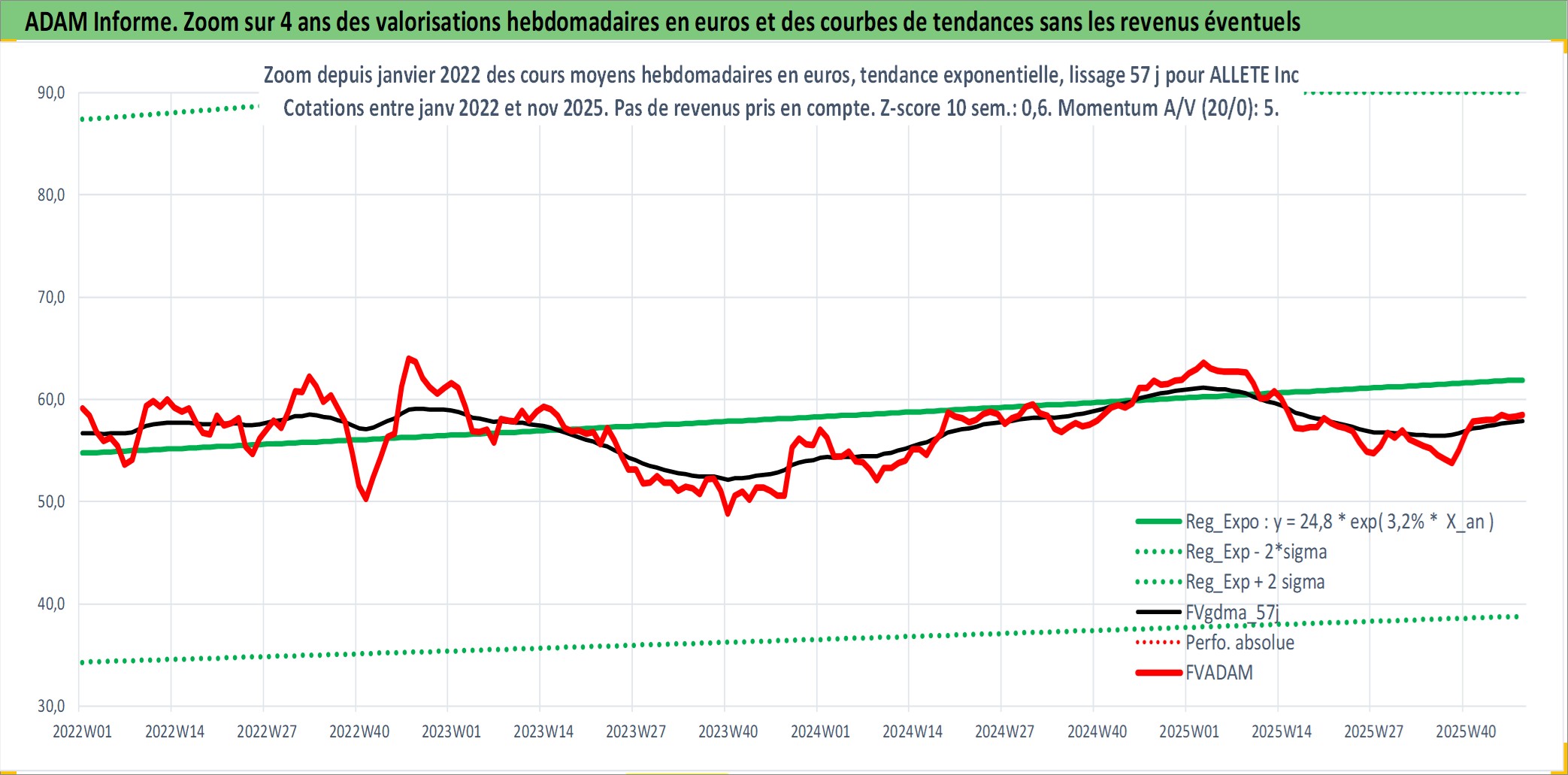Site dédié aux investisseursPage dédiée sur site financeAnalyse des valorisations hebdomadaires de l'action ALLETE Inc. Cet actif est cote en USD. Les valorisations sont en contrevaleur EURO et couvrent les semaines 1997W01 a 2025W48. Les revenus de cet actif financier sont pris en compte depuis la semaine 1997W07. La note ESG de cet actif n'est pas connue.
