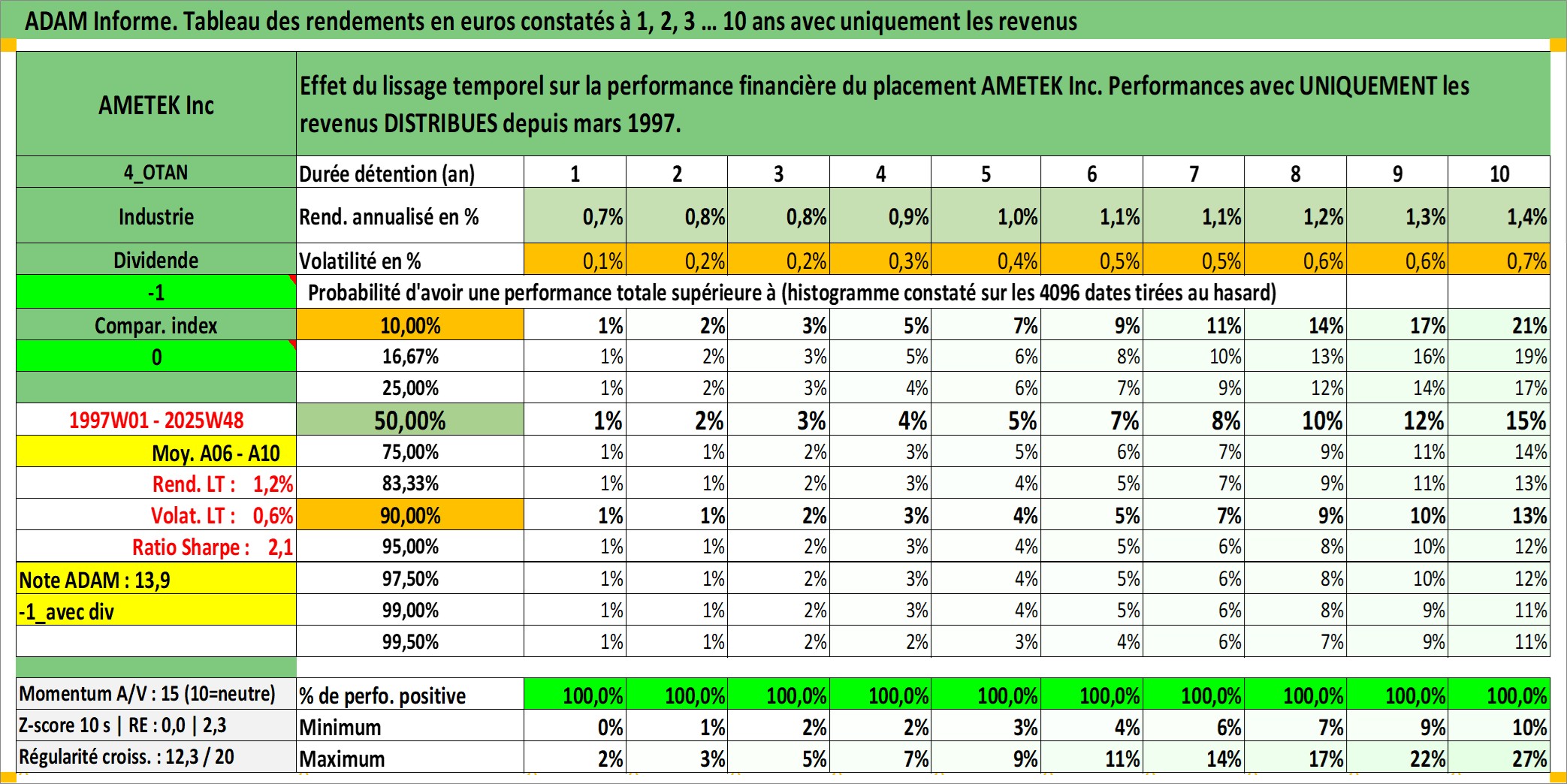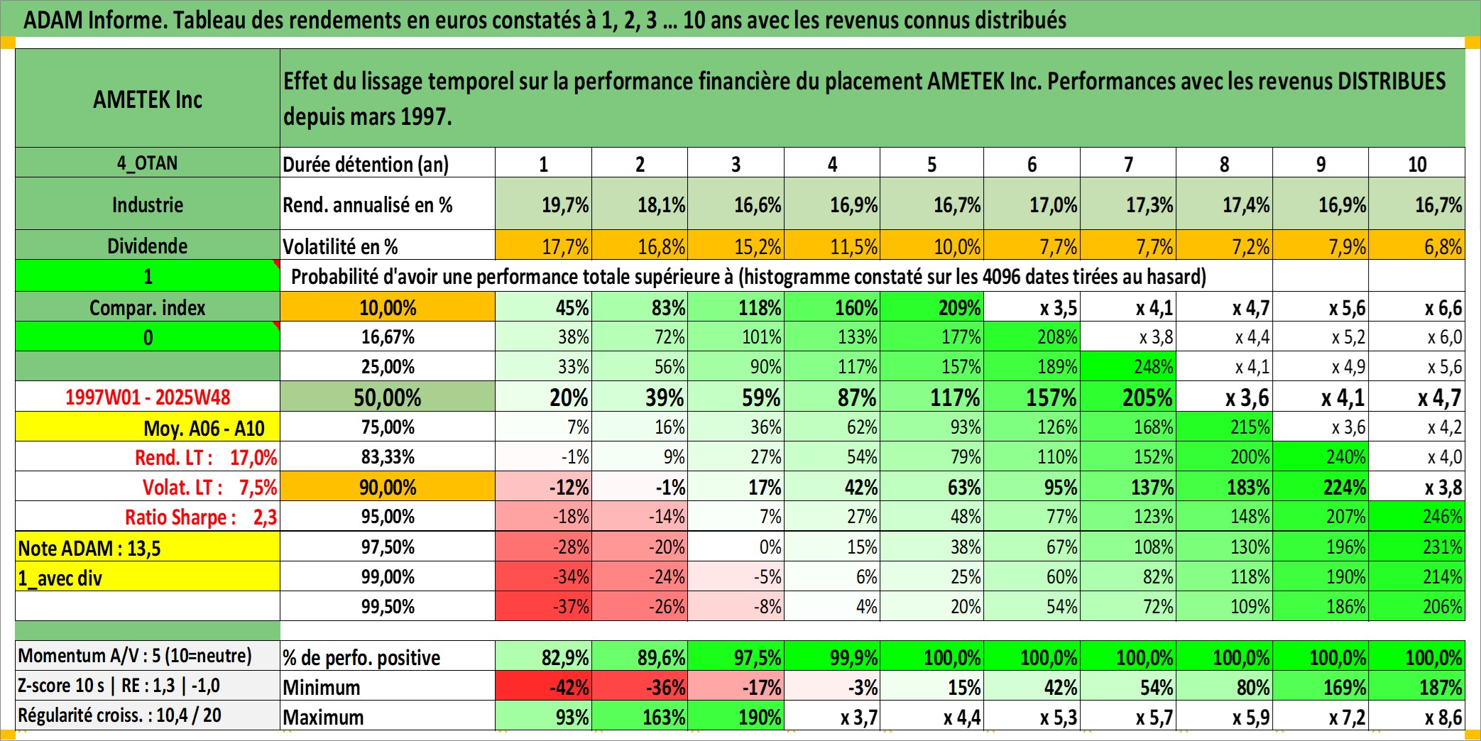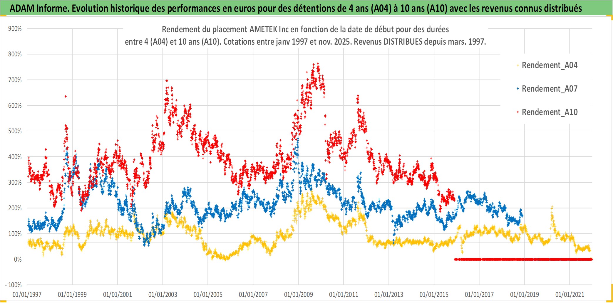 Site dédié aux investisseursPage dédiée sur site financeAnalyse des valorisations hebdomadaires de l'action AMETEK Inc. Cet actif est cote en USD. Les valorisations sont en contrevaleur EURO et couvrent les semaines 1997W01 a 2025W48. Les revenus de cet actif financier sont pris en compte depuis la semaine 1997W11. La note globale ESG de cet actif est estimee a 8.0 (apres rebasage entre 0 et 20).