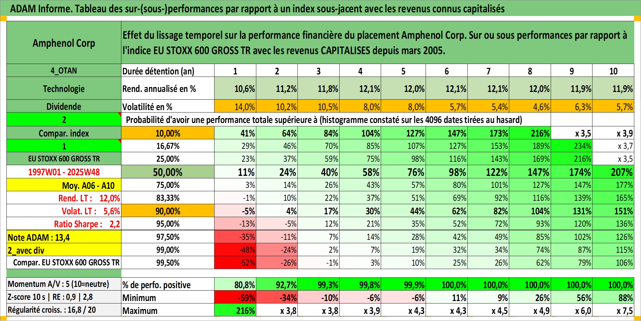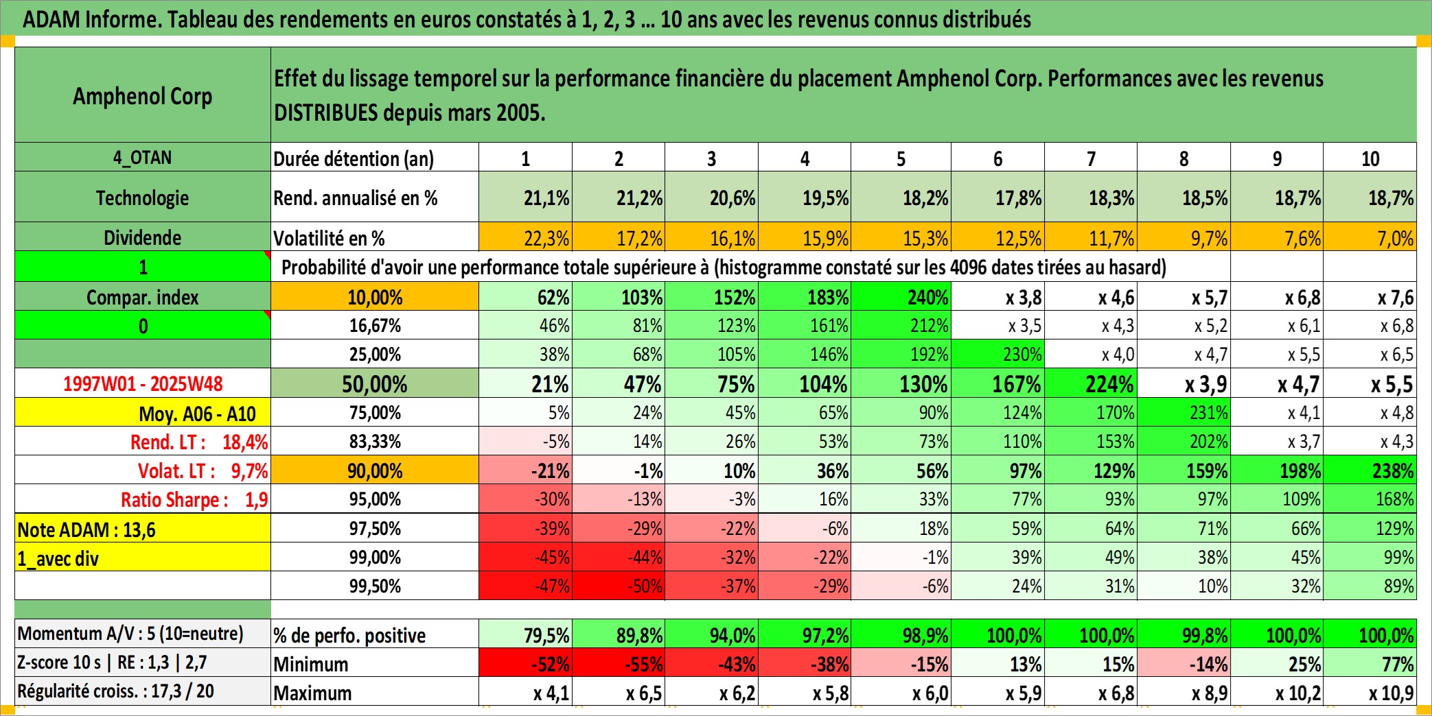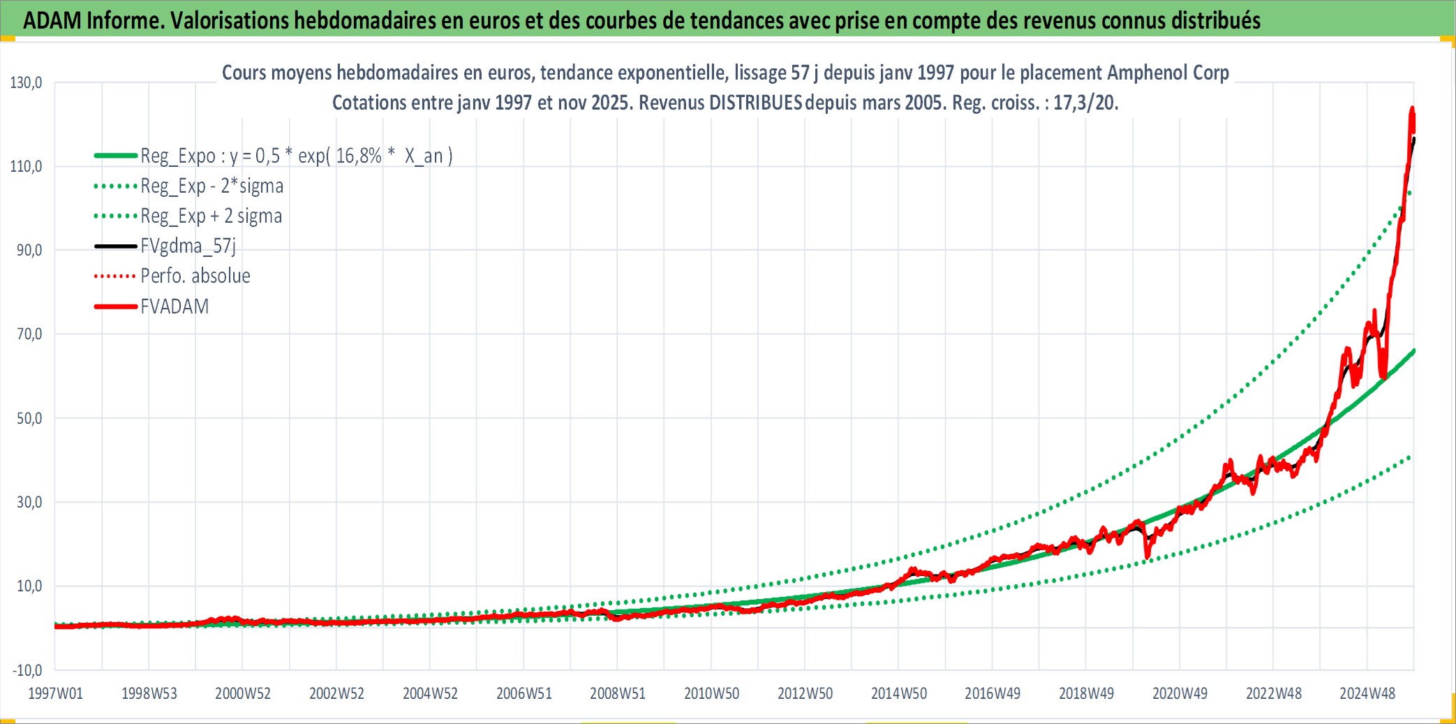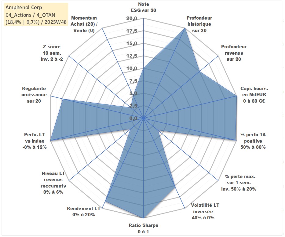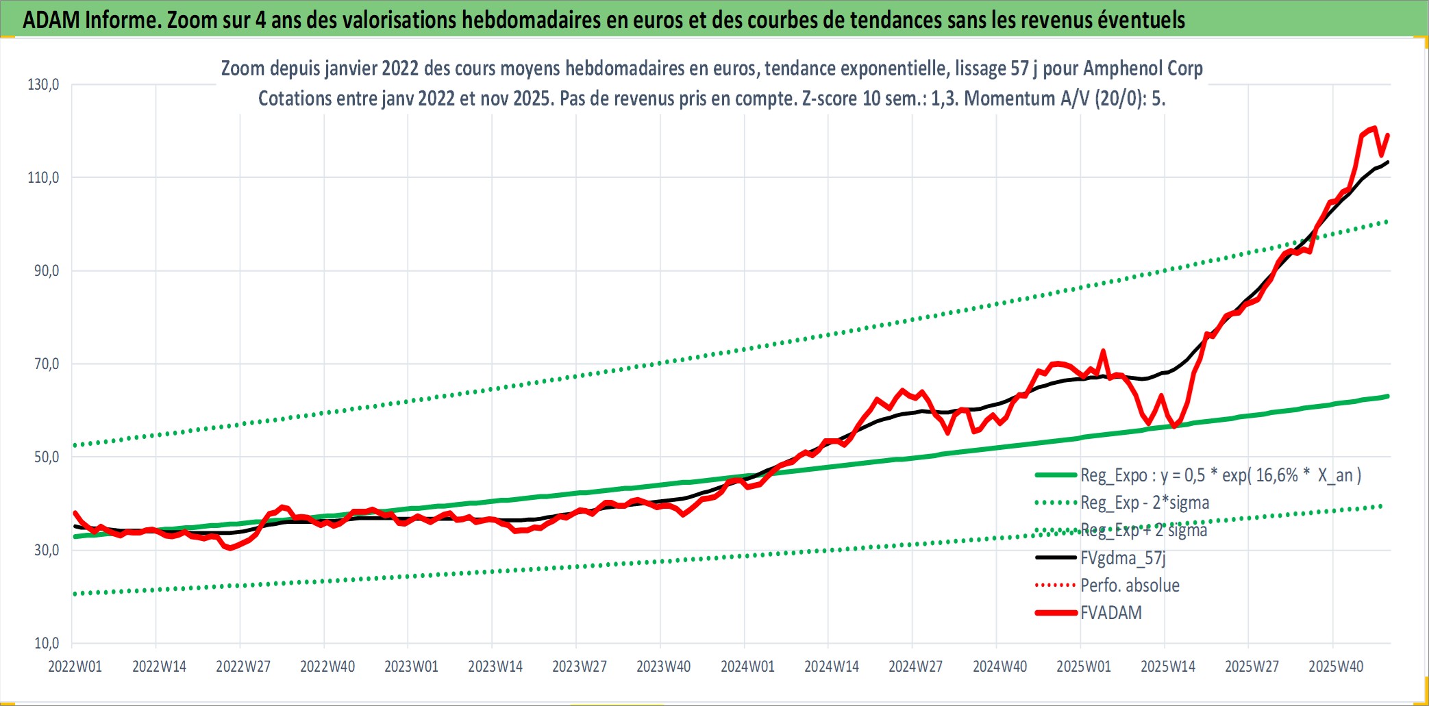 Site dédié aux investisseursPage dédiée sur site financeAnalyse des valorisations hebdomadaires de l'action Amphenol Corp. Cet actif est cote en USD. Les valorisations sont en contrevaleur EURO et couvrent les semaines 1997W01 a 2025W48. Les revenus de cet actif financier sont pris en compte depuis la semaine 2005W10. La note globale ESG de cet actif est estimee a 10.0 (apres rebasage entre 0 et 20).