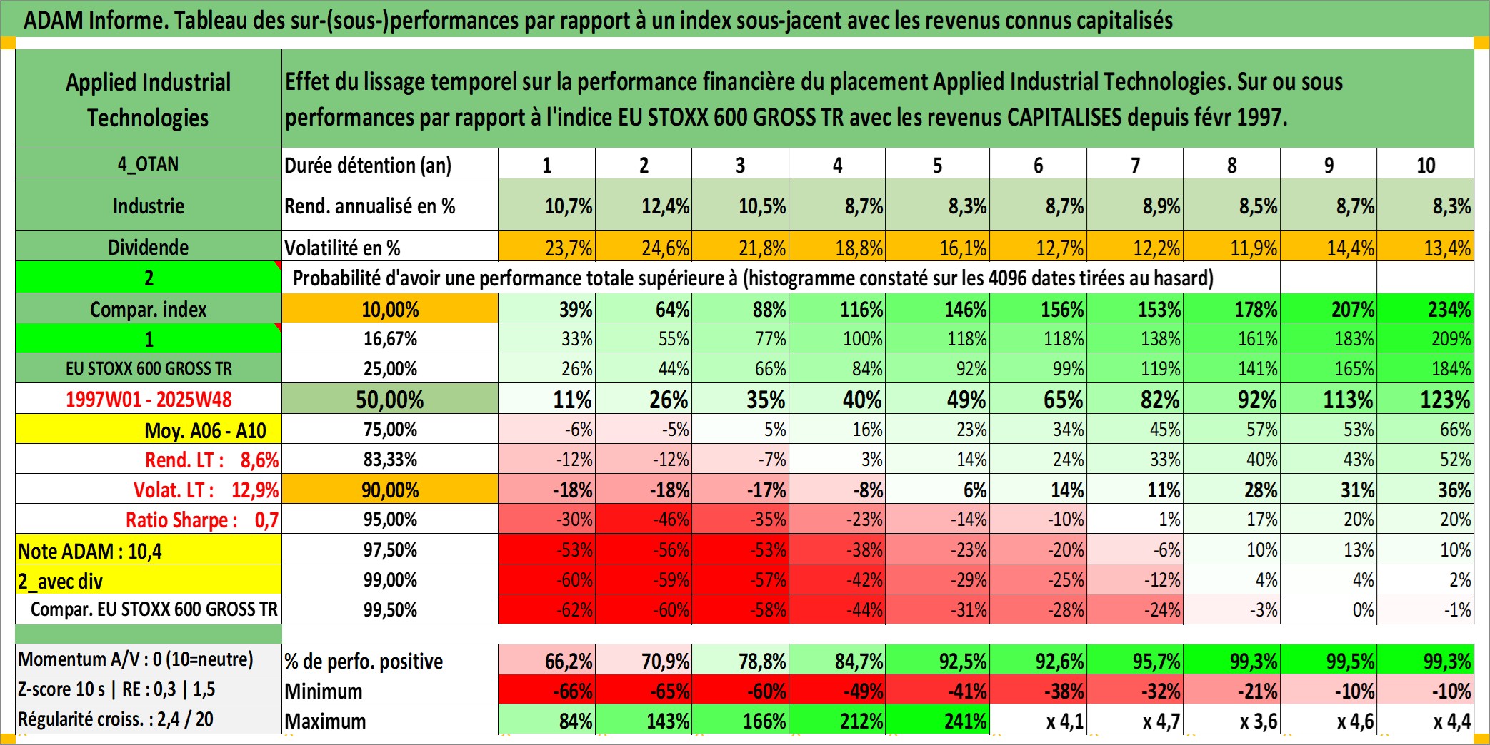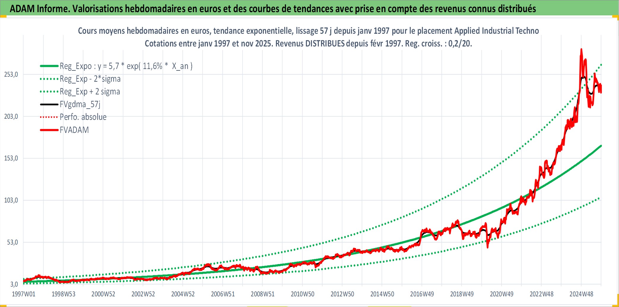 Site dédié aux investisseursPage dédiée sur site financeAnalyse des valorisations hebdomadaires de l'action Applied Industrial Technologies. Cet actif est cote en USD. Les valorisations sont en contrevaleur EURO et couvrent les semaines 1997W01 a 2025W48. Les revenus de cet actif financier sont pris en compte depuis la semaine 1997W07. La note ESG de cet actif n'est pas connue.