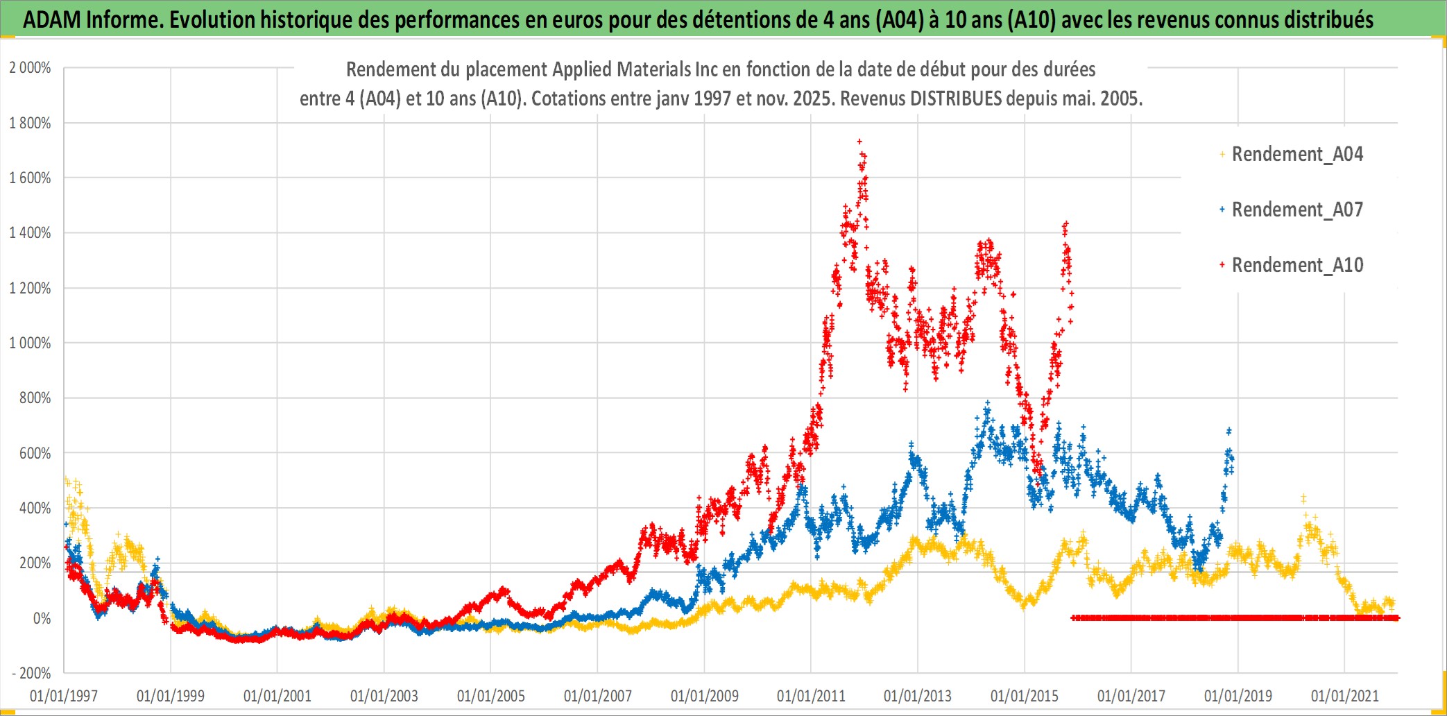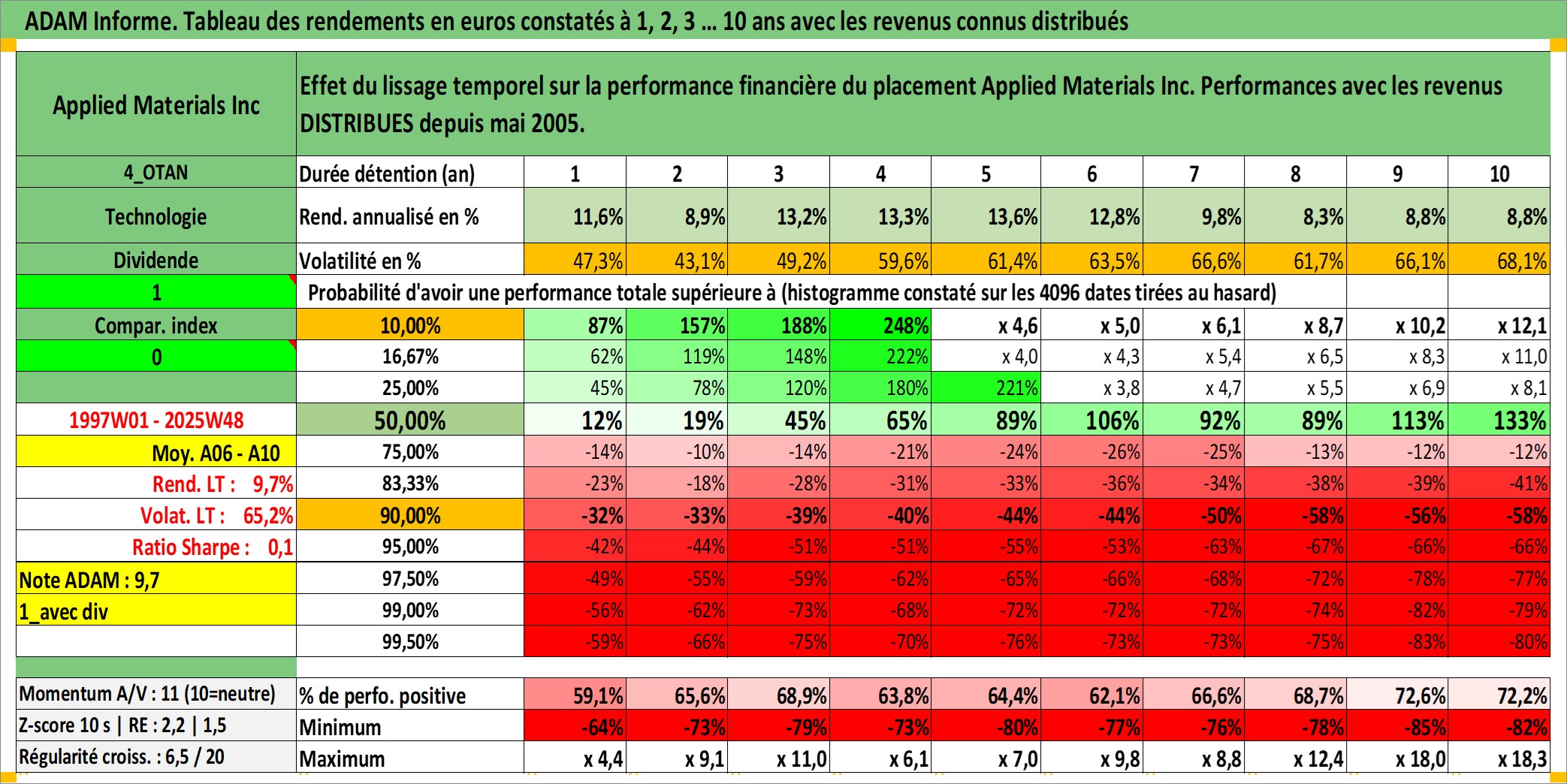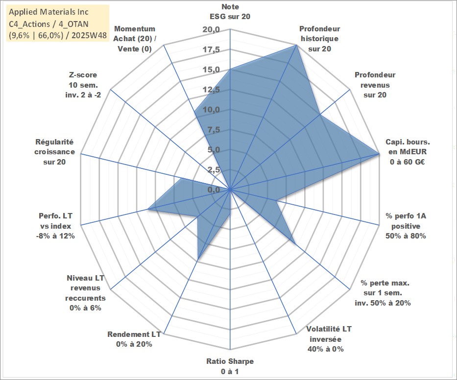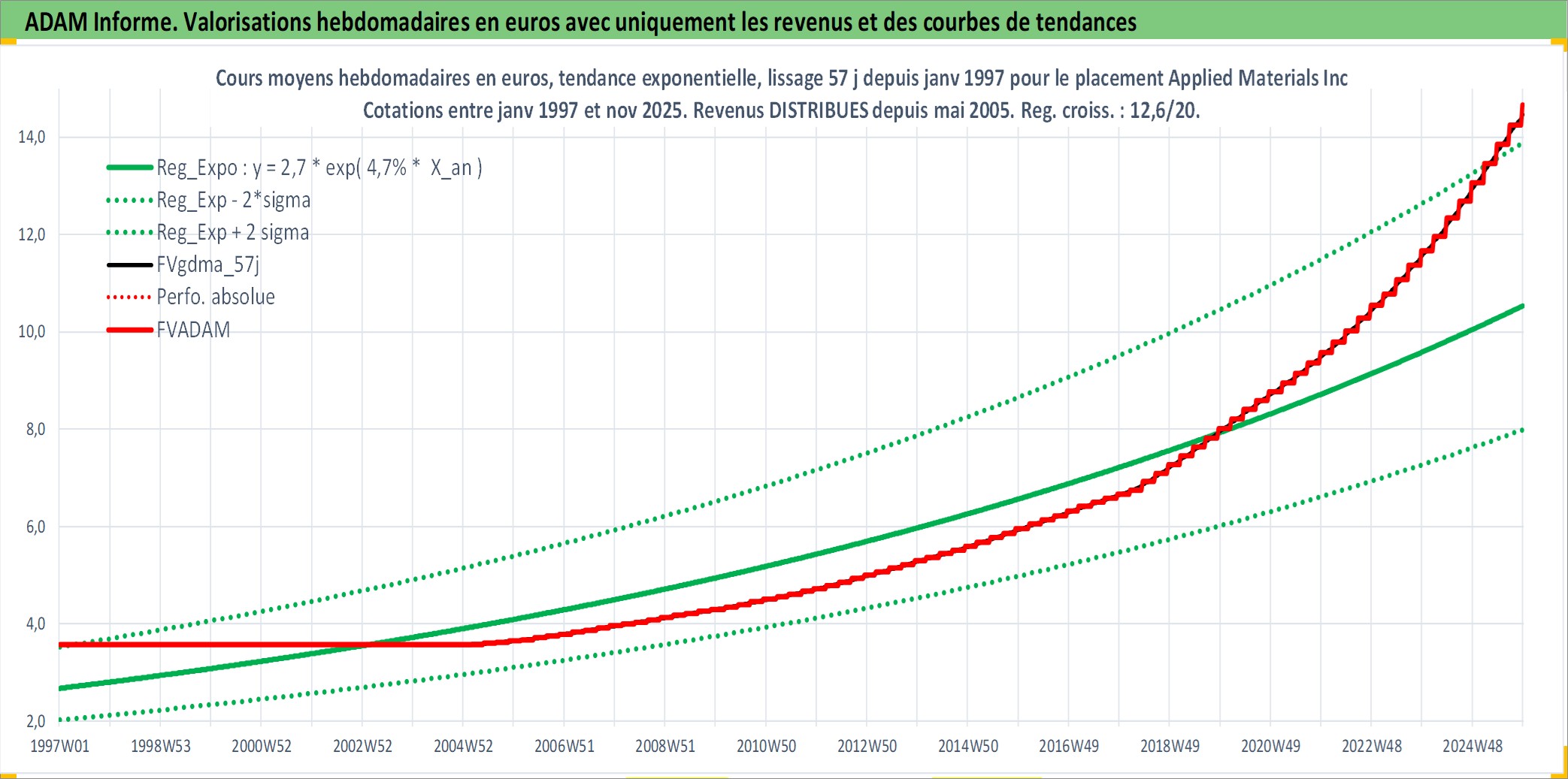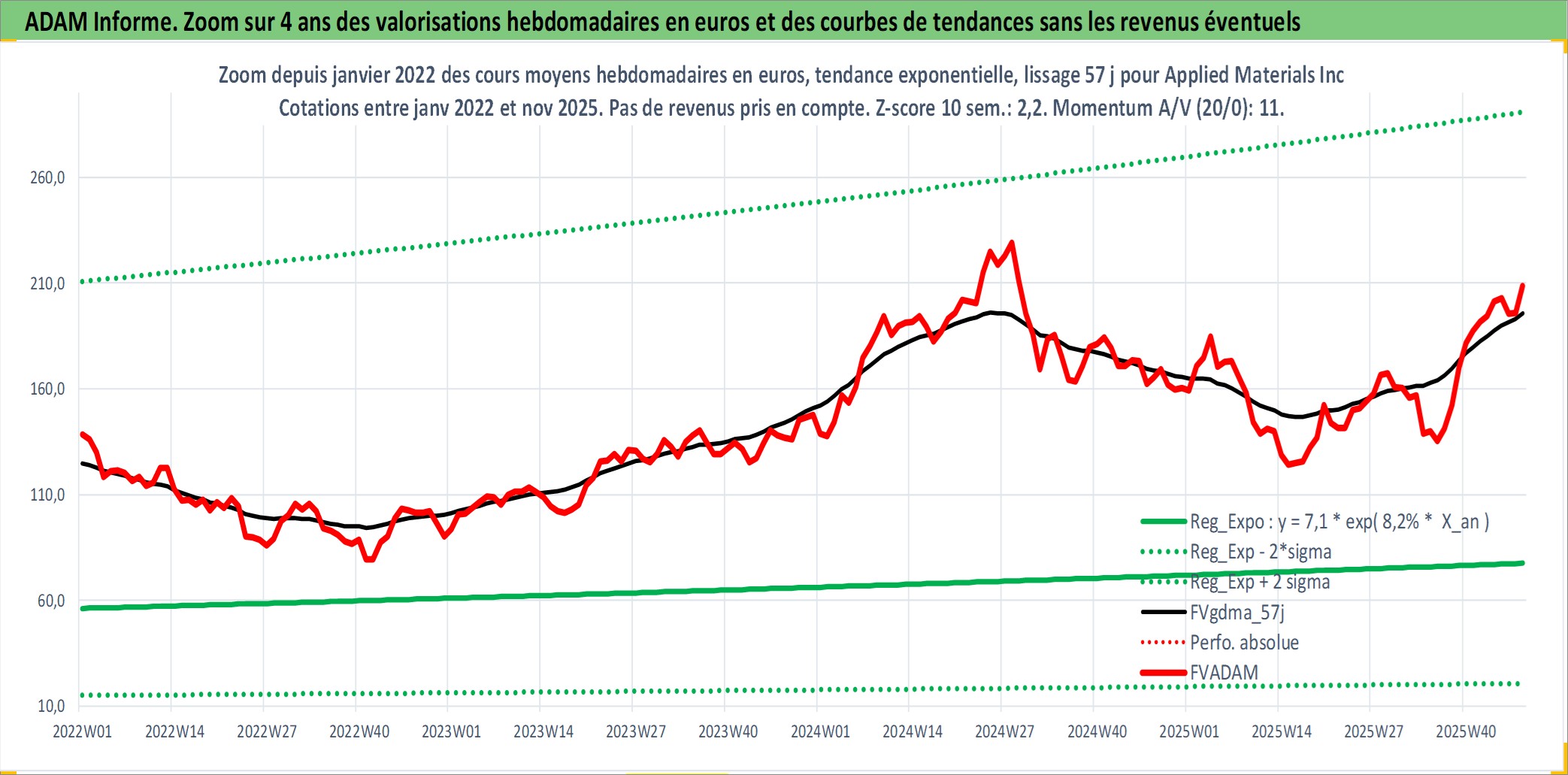 Site dédié aux investisseursPage dédiée sur site financeAnalyse des valorisations hebdomadaires de l'action Applied Materials Inc. Cet actif est cote en USD. Les valorisations sont en contrevaleur EURO et couvrent les semaines 1997W01 a 2025W48. Les revenus de cet actif financier sont pris en compte depuis la semaine 2005W20. La note globale ESG de cet actif est estimee a 15.0 (apres rebasage entre 0 et 20).