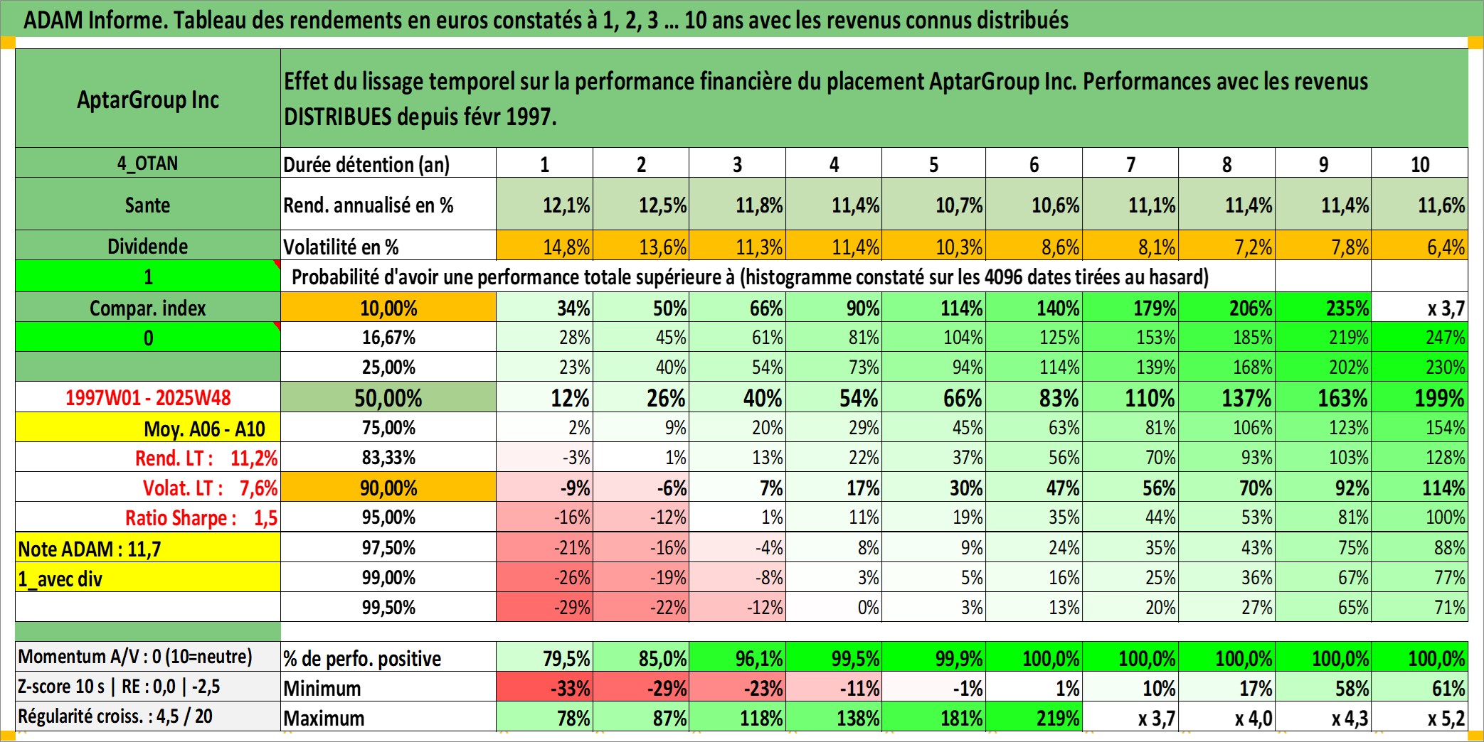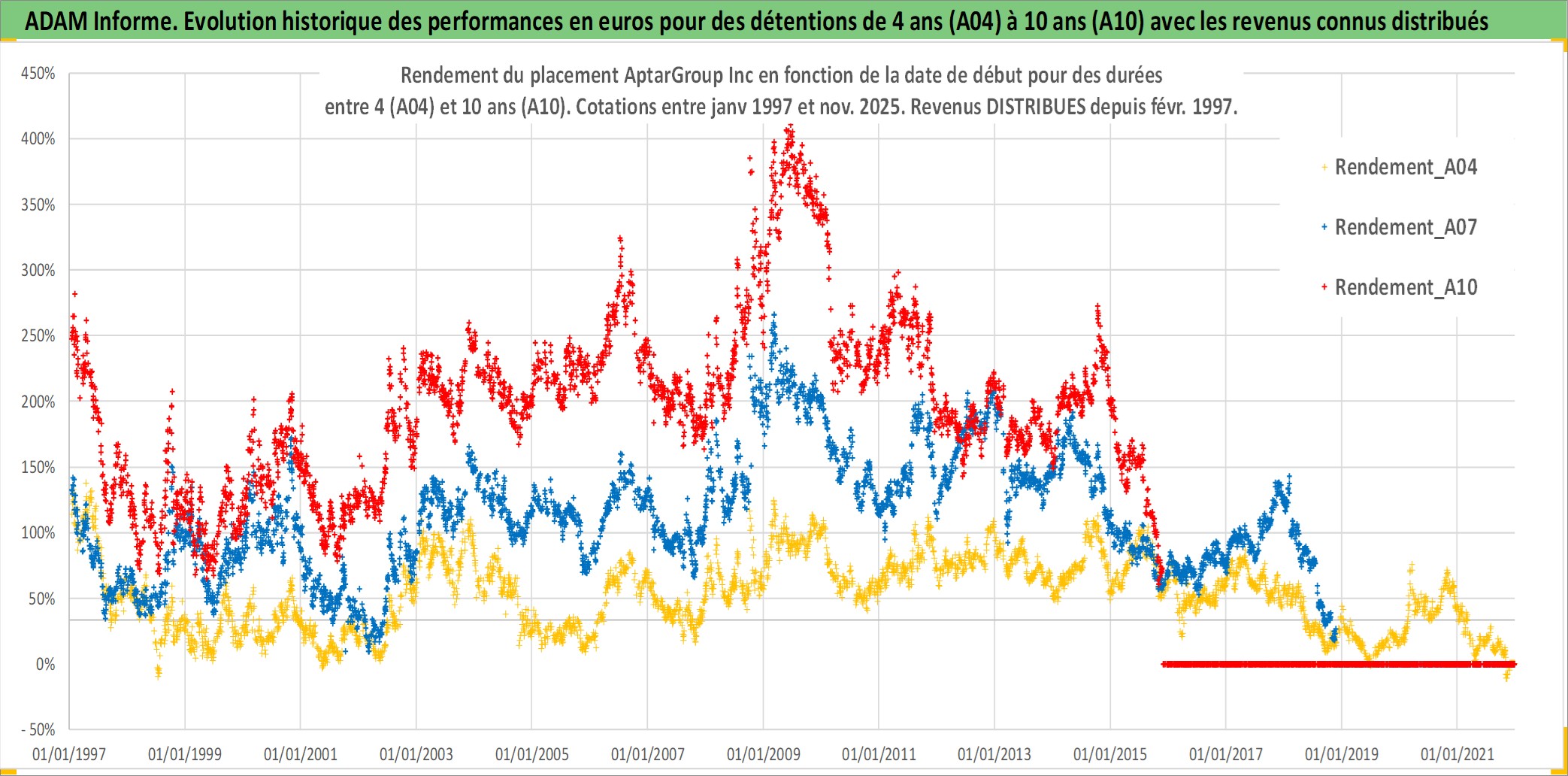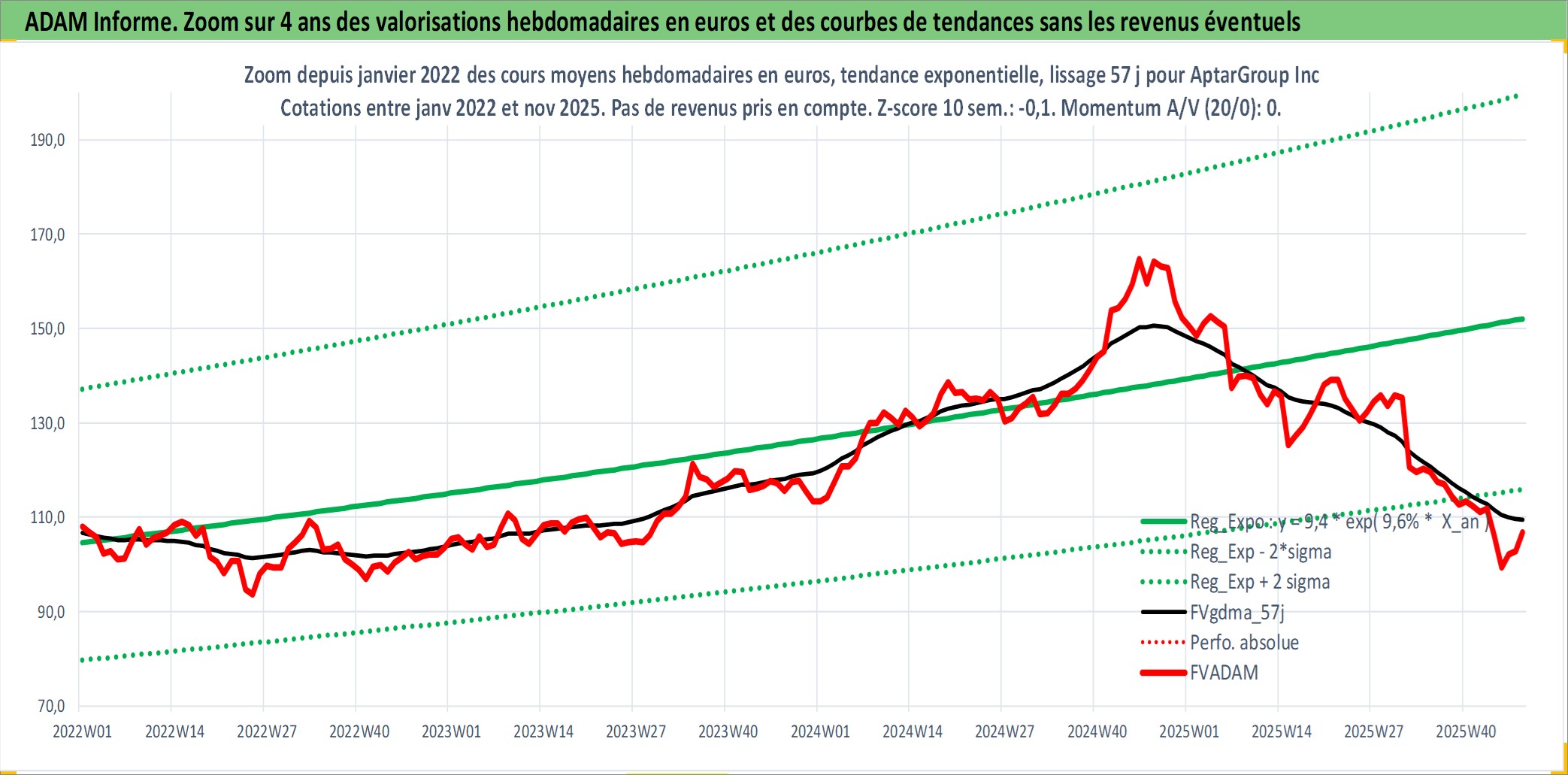 Site dédié aux investisseursPage dédiée sur site financeAnalyse des valorisations hebdomadaires de l'action AptarGroup Inc. Cet actif est cote en USD. Les valorisations sont en contrevaleur EURO et couvrent les semaines 1997W01 a 2025W48. Les revenus de cet actif financier sont pris en compte depuis la semaine 1997W06. La note ESG de cet actif n'est pas connue.
