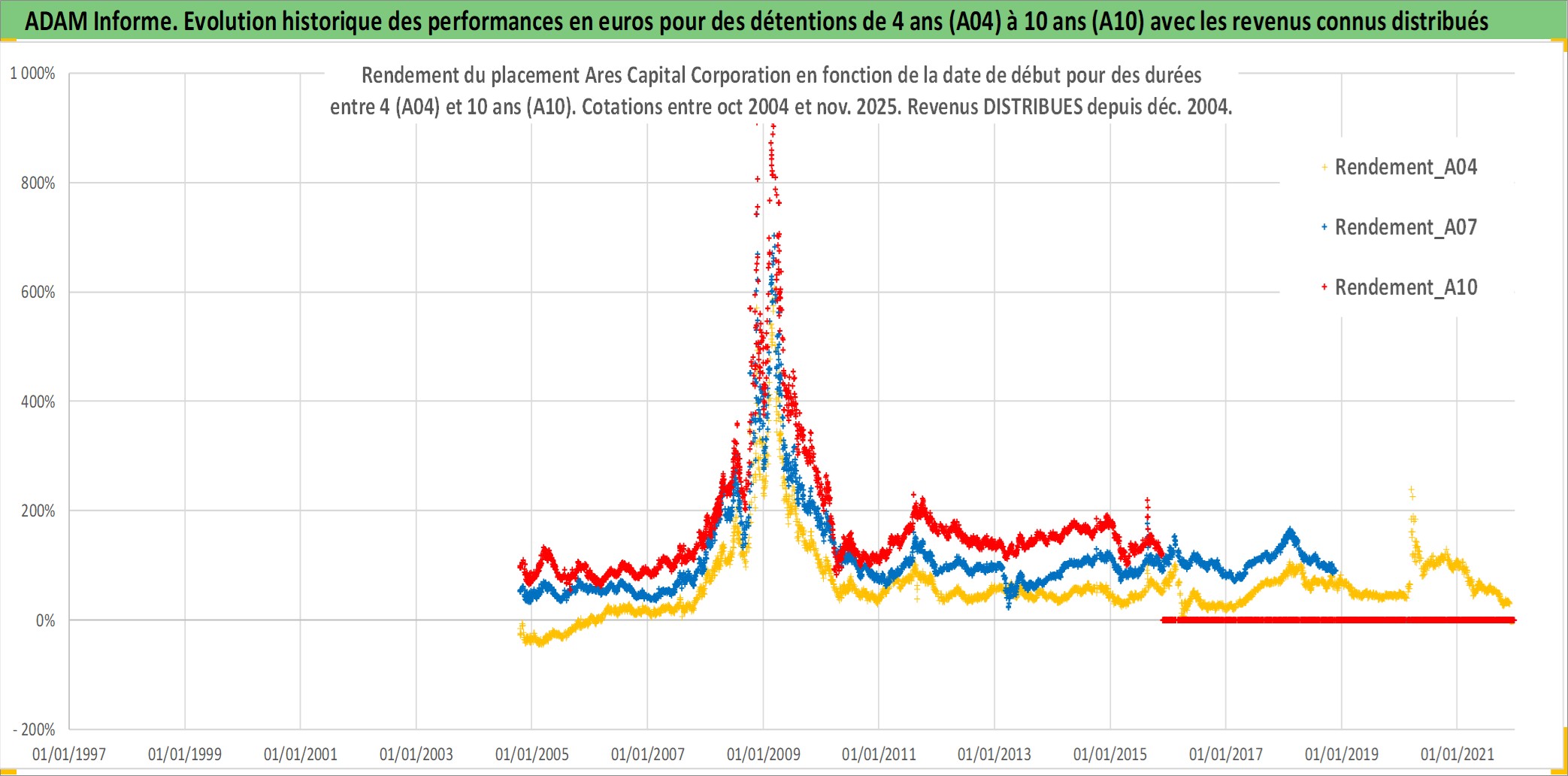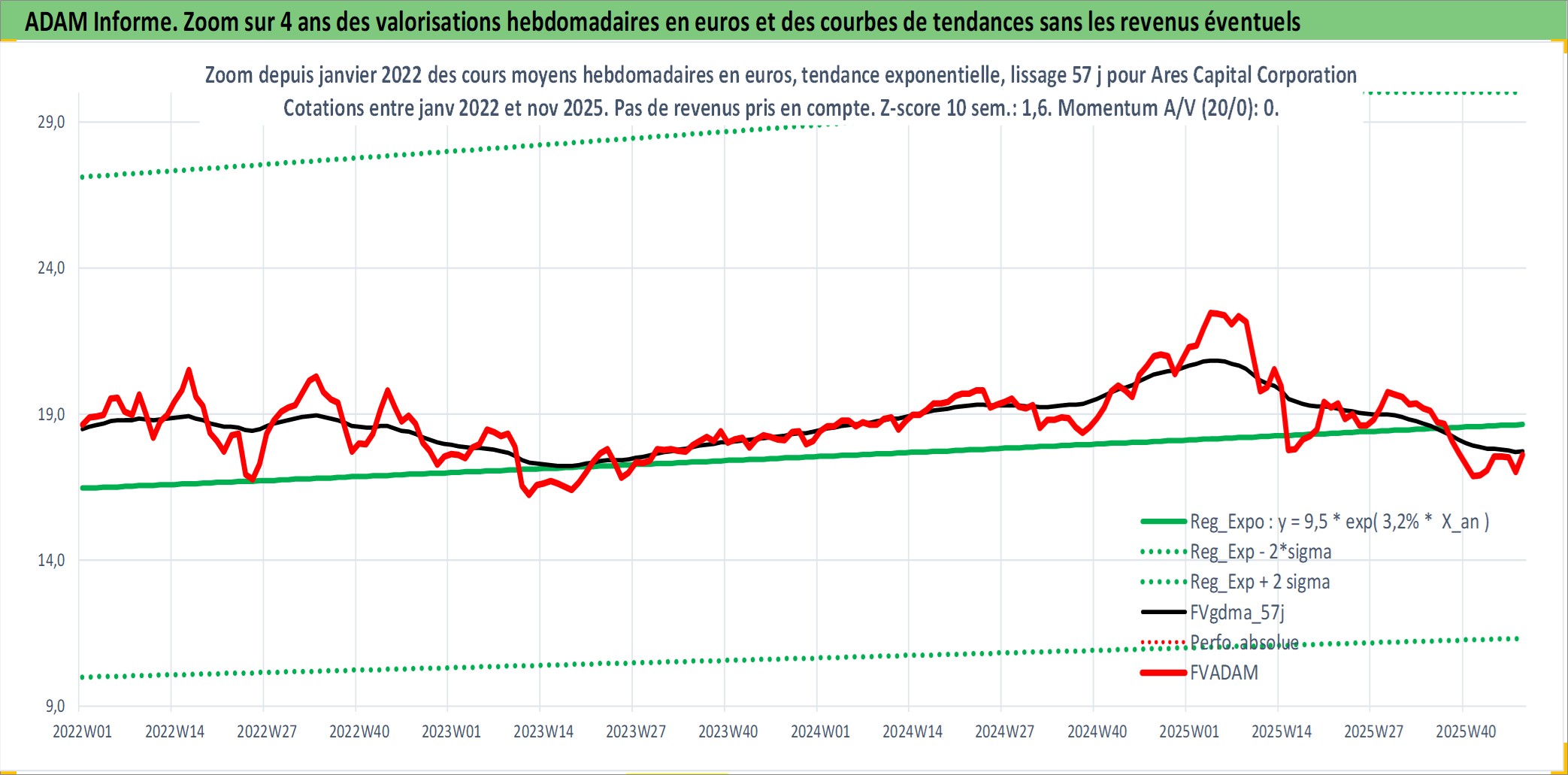 Site dédié aux investisseursPage dédiée sur site financeAnalyse des valorisations hebdomadaires de l'action Ares Capital Corporation. Cet actif est cote en USD. Les valorisations sont en contrevaleur EURO et couvrent les semaines 2004W41 a 2025W48. Les revenus de cet actif financier sont pris en compte depuis la semaine 2004W52. La note ESG de cet actif n'est pas connue.