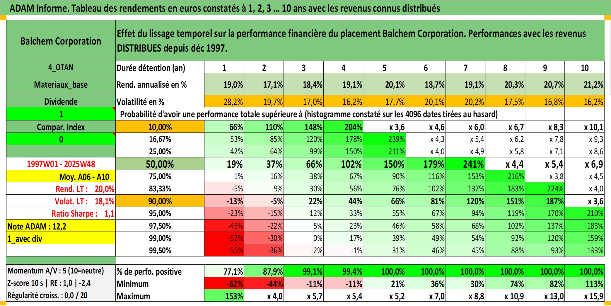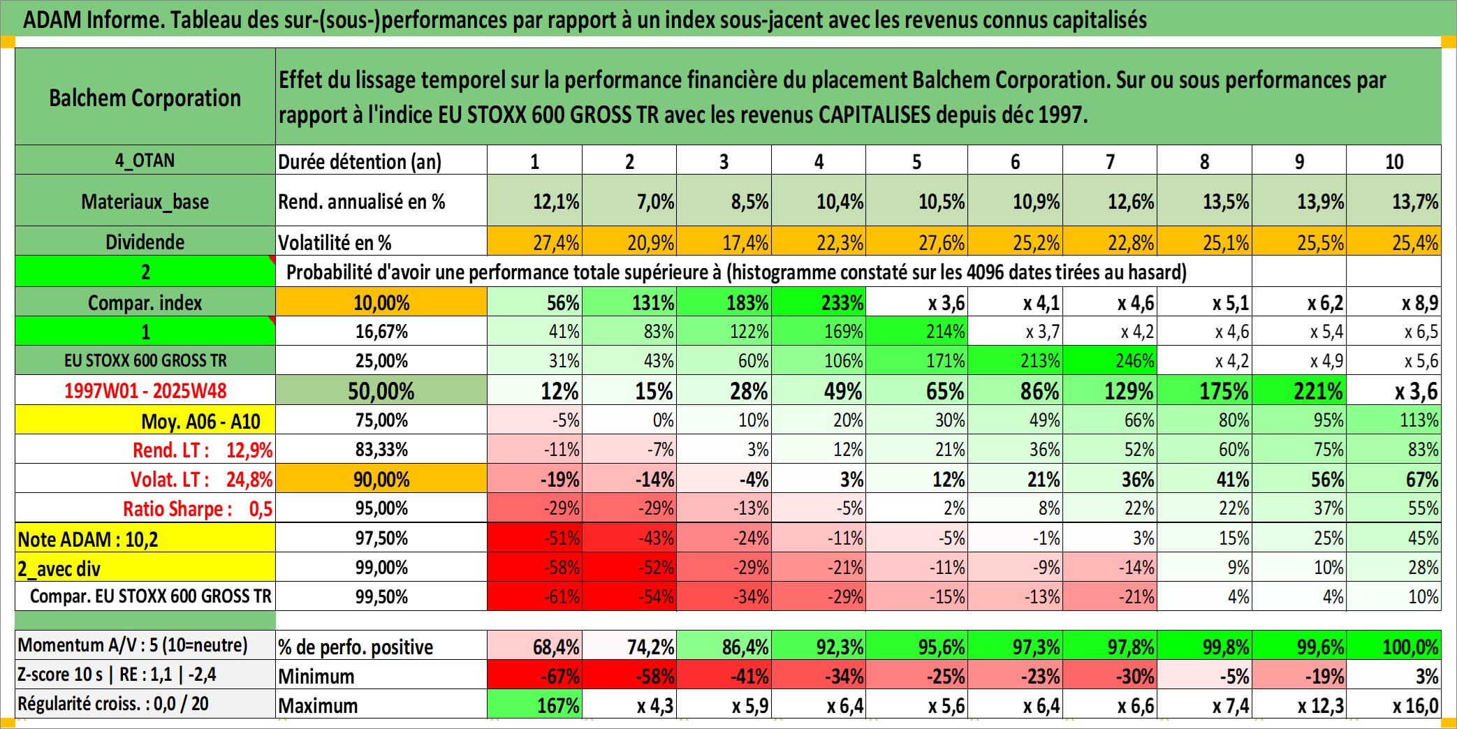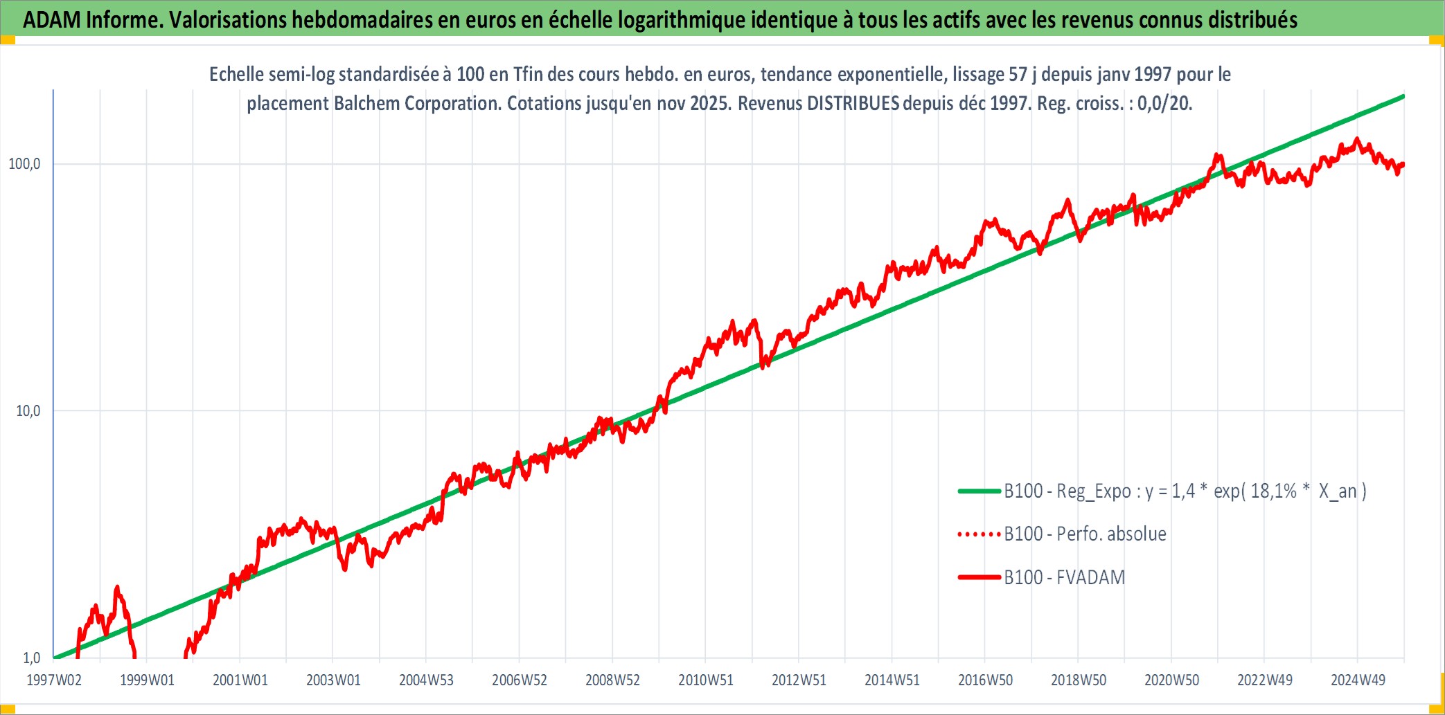Site dédié aux investisseursPage dédiée sur site financeAnalyse des valorisations hebdomadaires de l'action Balchem Corporation. Cet actif est cote en USD. Les valorisations sont en contrevaleur EURO et couvrent les semaines 1997W01 a 2025W48. Les revenus de cet actif financier sont pris en compte depuis la semaine 1997W52. La note ESG de cet actif n'est pas connue.