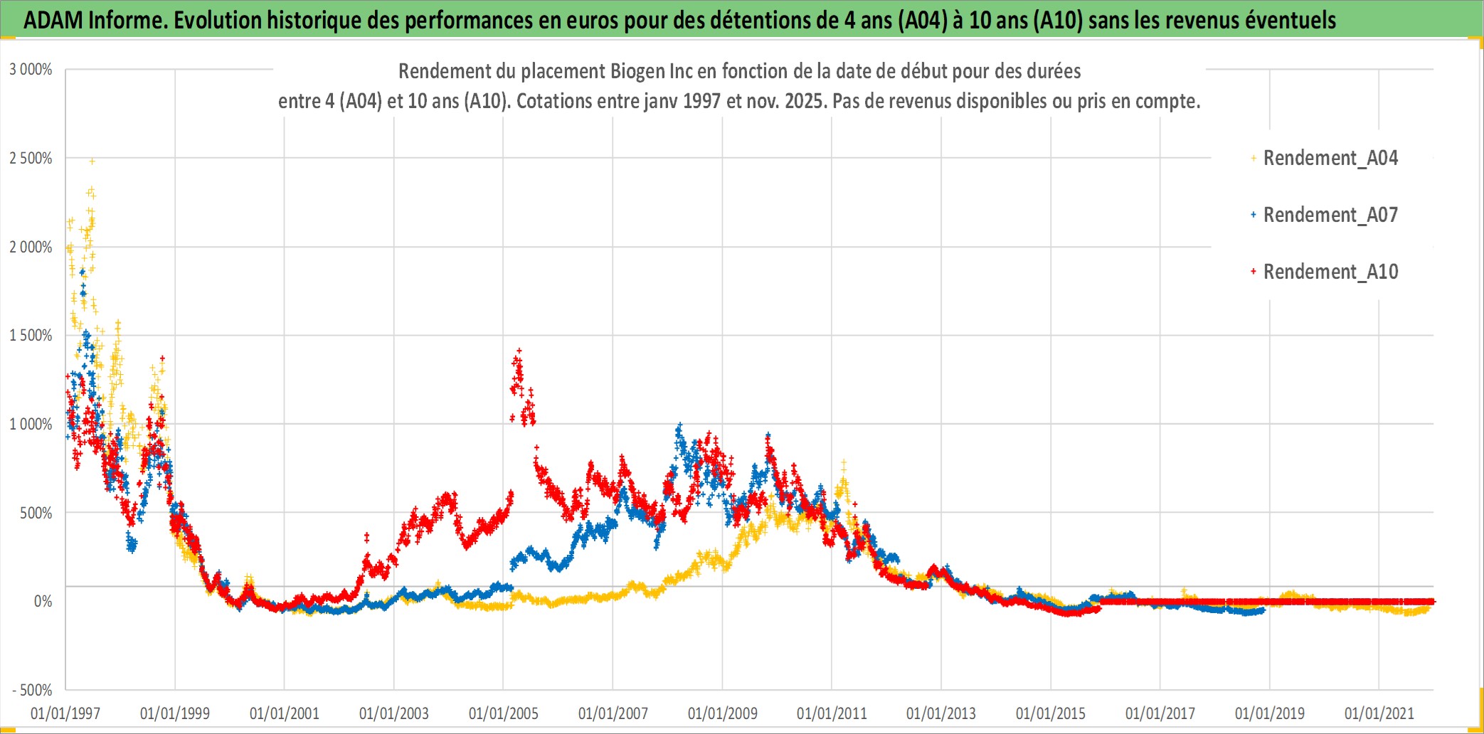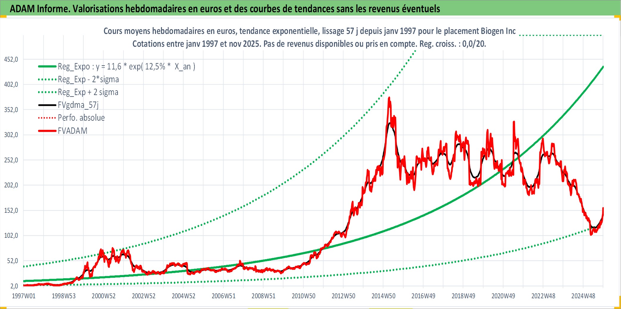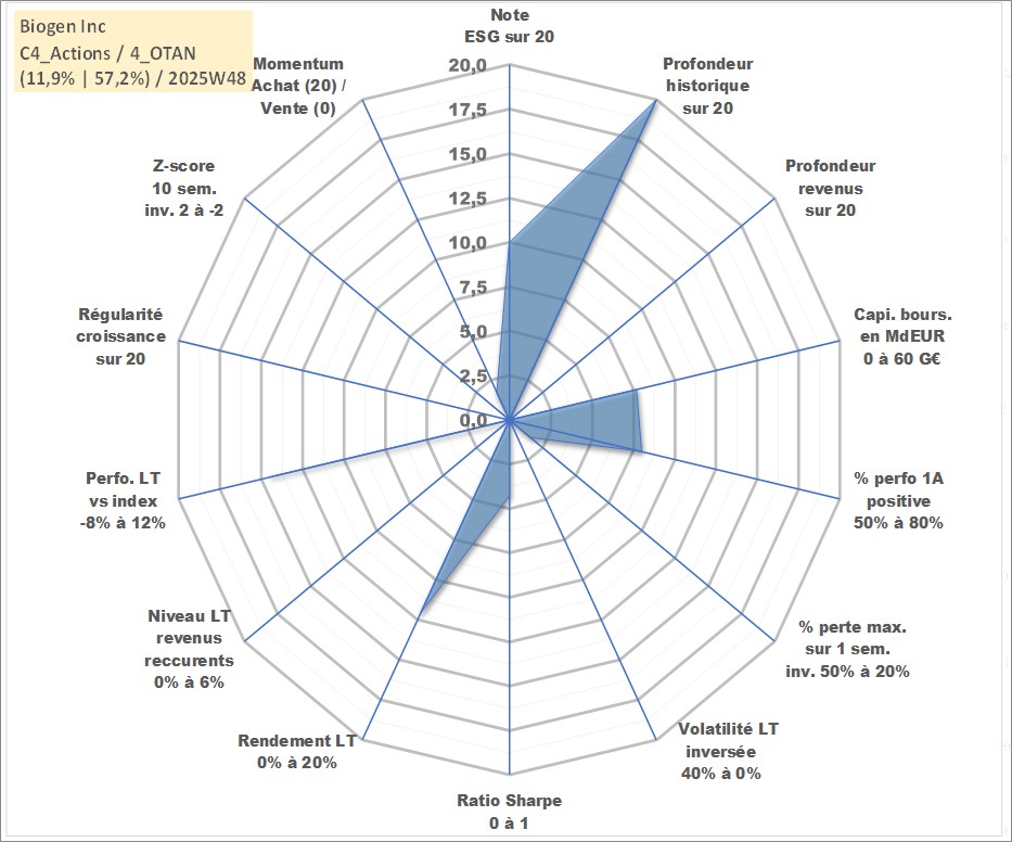 Site dédié aux investisseursPage dédiée sur site financeAnalyse des valorisations hebdomadaires de l'action Biogen Inc. Cet actif est cote en USD. Les valorisations sont en contrevaleur EURO et couvrent les semaines 1997W01 a 2025W48. Les revenus de cet actif financier ne sont pas connus car non existants ou non disponibles sur le site Yahoo Finance. La note globale ESG de cet actif est estimee a 10.0 (apres rebasage entre 0 et 20).