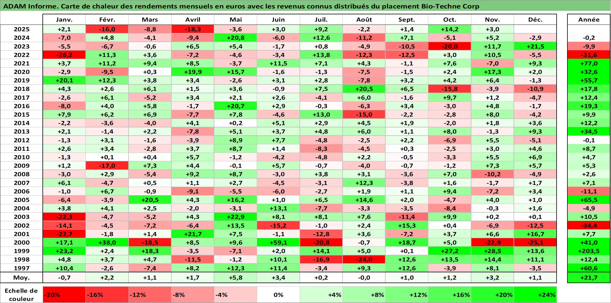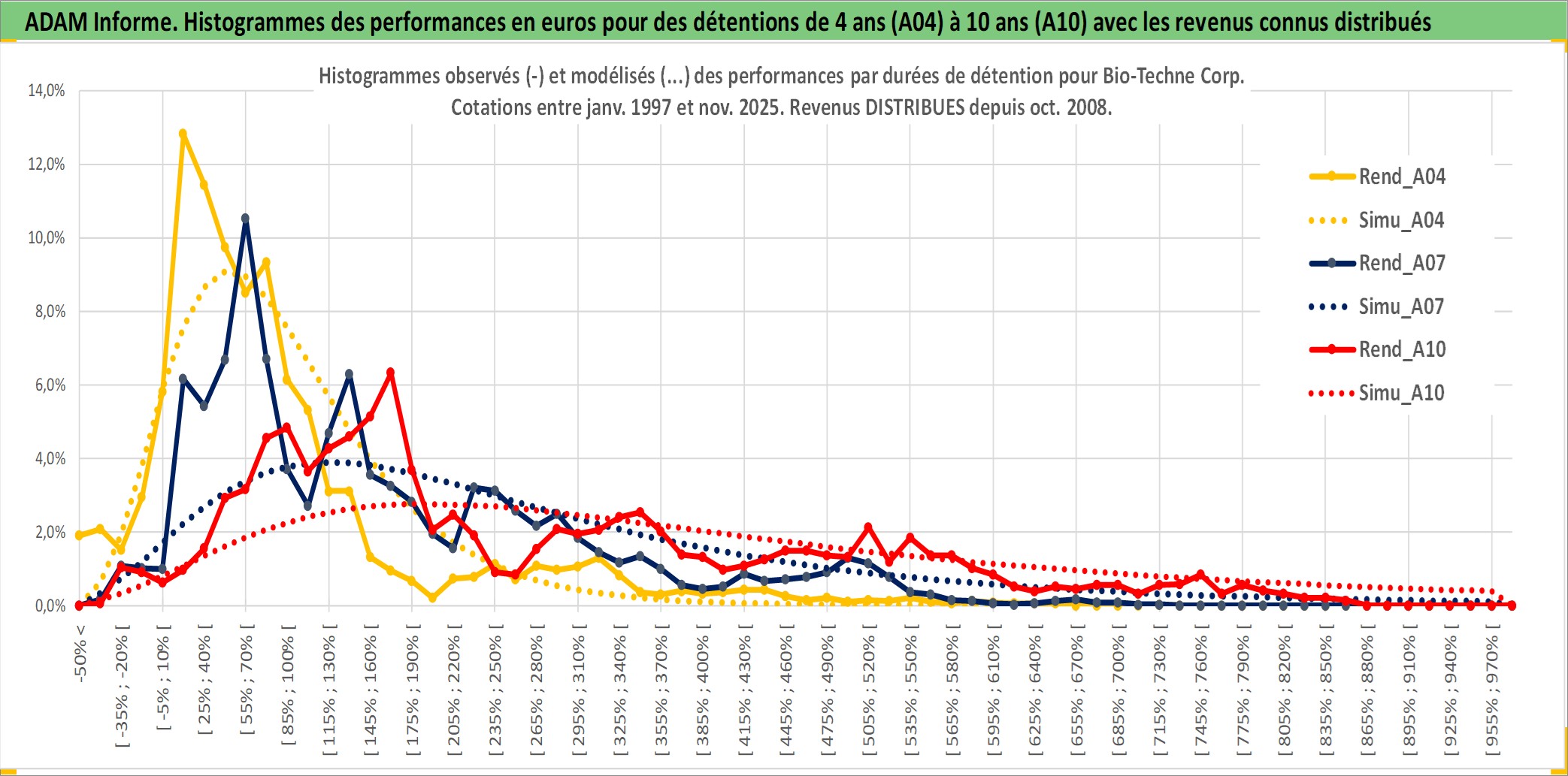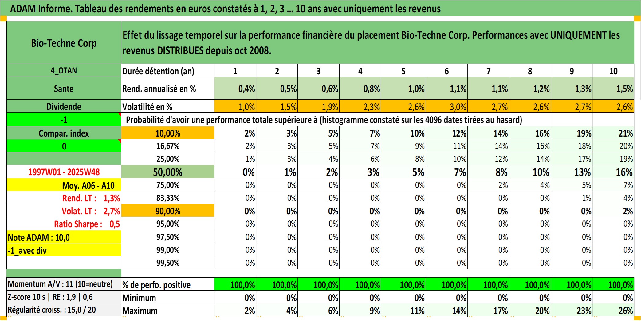 Site dédié aux investisseursPage dédiée sur site financeAnalyse des valorisations hebdomadaires de l'action Bio-Techne Corp. Cet actif est cote en USD. Les valorisations sont en contrevaleur EURO et couvrent les semaines 1997W01 a 2025W48. Les revenus de cet actif financier sont pris en compte depuis la semaine 2008W44. La note ESG de cet actif n'est pas connue.