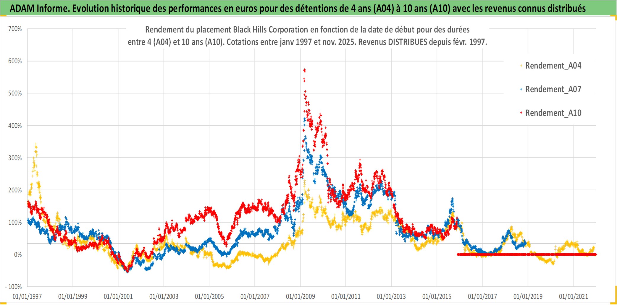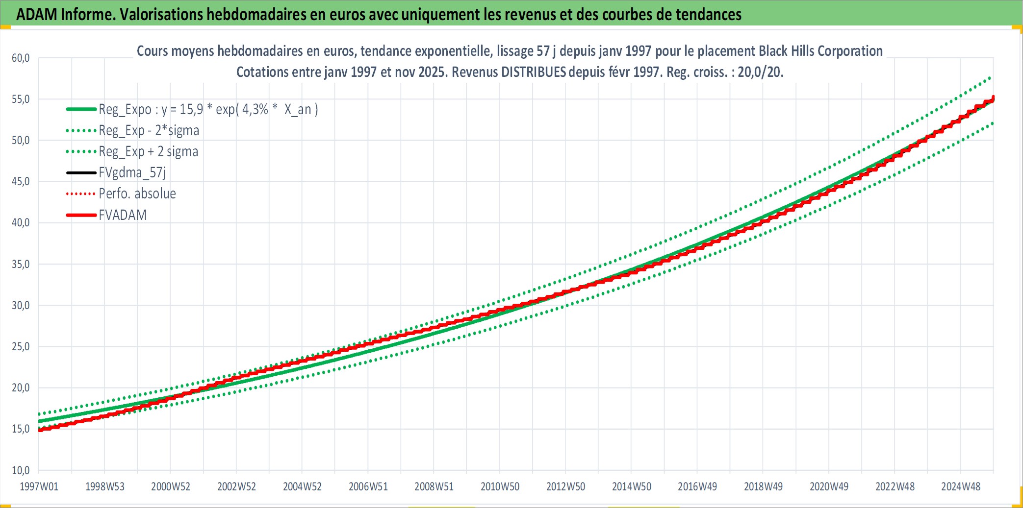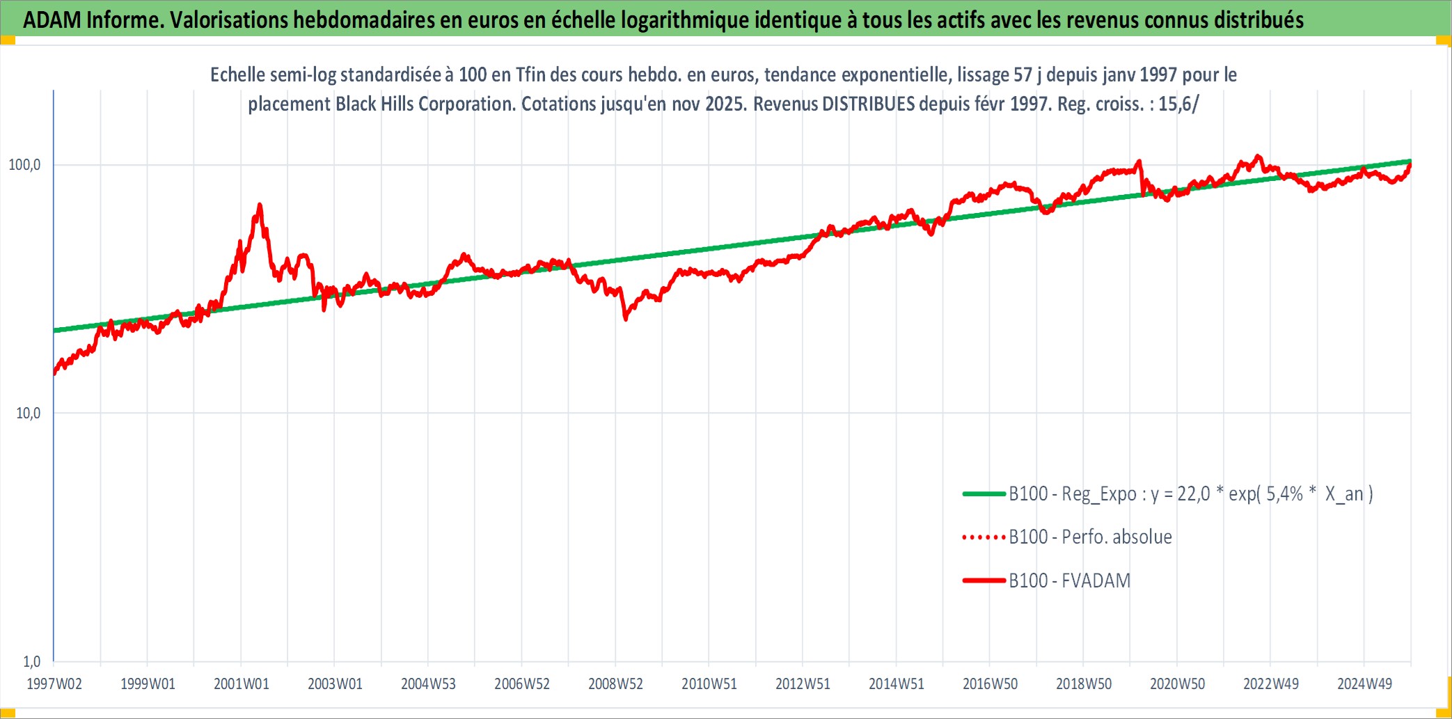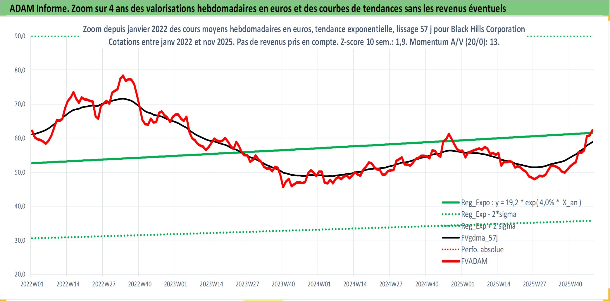 Site dédié aux investisseursPage dédiée sur site financeAnalyse des valorisations hebdomadaires de l'action Black Hills Corporation. Cet actif est cote en USD. Les valorisations sont en contrevaleur EURO et couvrent les semaines 1997W01 a 2025W48. Les revenus de cet actif financier sont pris en compte depuis la semaine 1997W07. La note ESG de cet actif n'est pas connue.