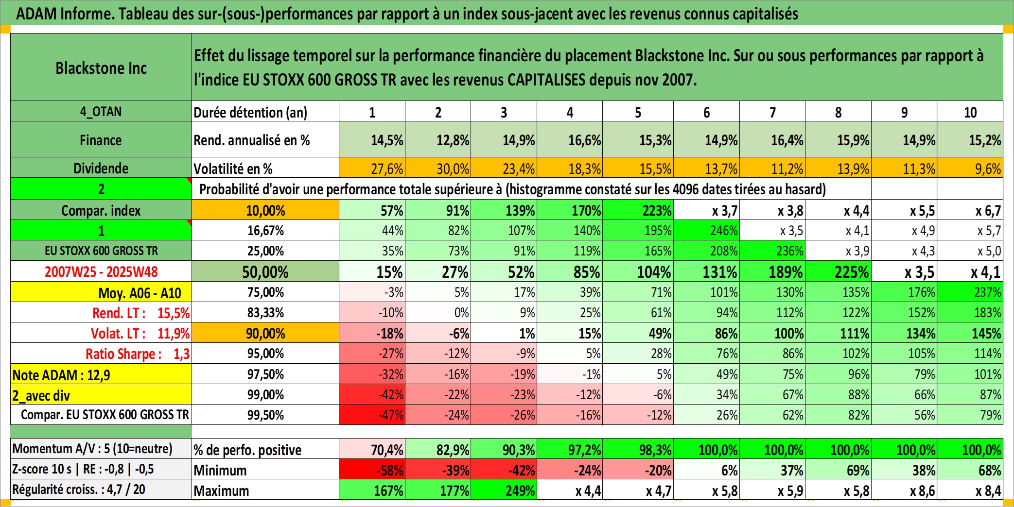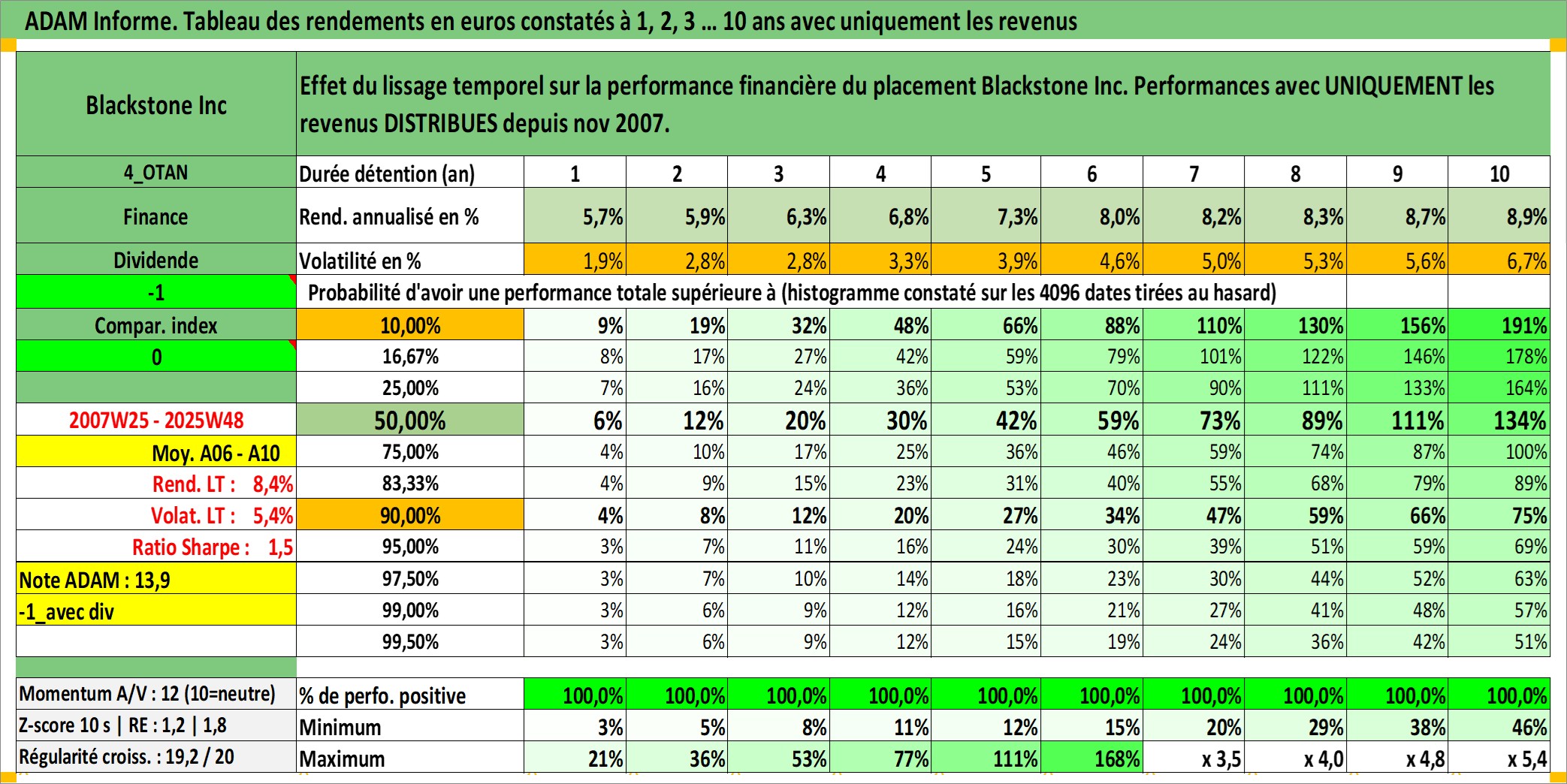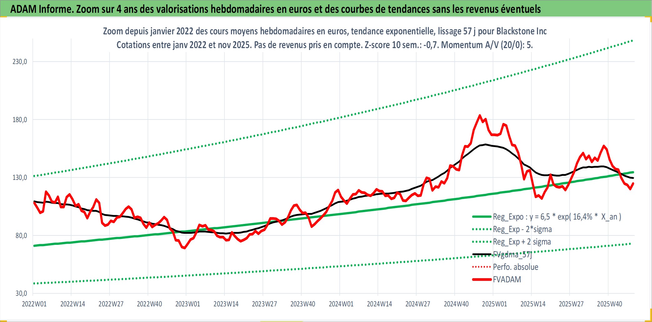 Site dédié aux investisseursPage dédiée sur site financeAnalyse des valorisations hebdomadaires de l'action Blackstone Inc. Cet actif est cote en USD. Les valorisations sont en contrevaleur EURO et couvrent les semaines 2007W25 a 2025W48. Les revenus de cet actif financier sont pris en compte depuis la semaine 2007W48. La note globale ESG de cet actif est estimee a 8.0 (apres rebasage entre 0 et 20).
