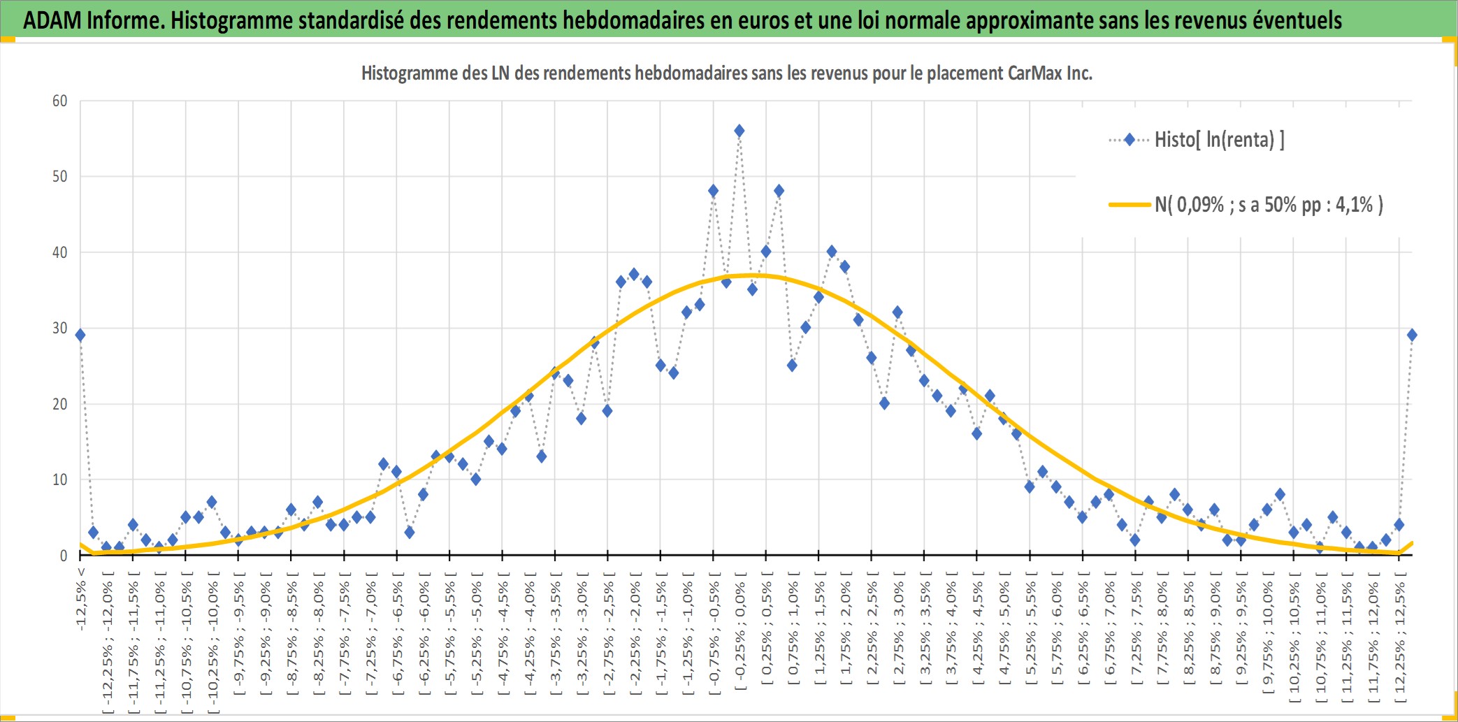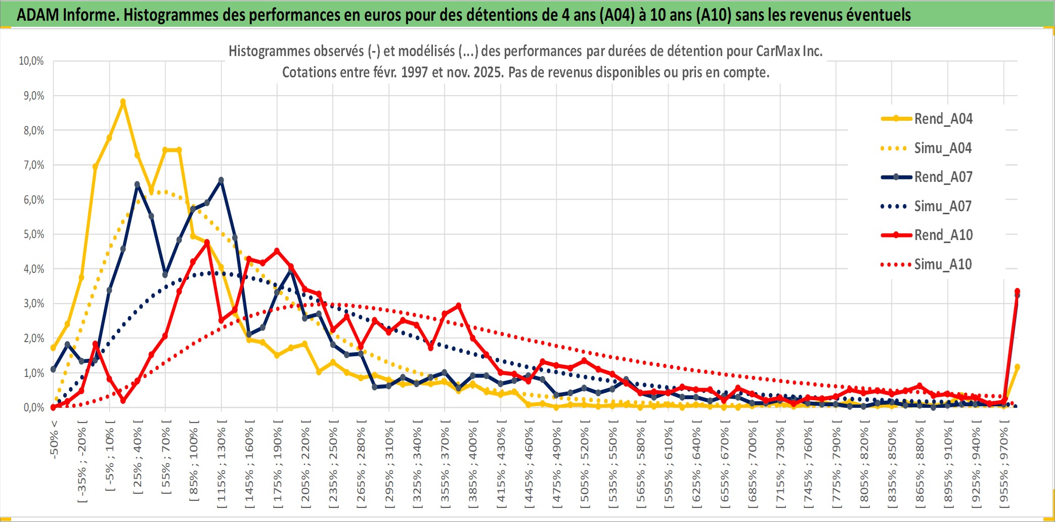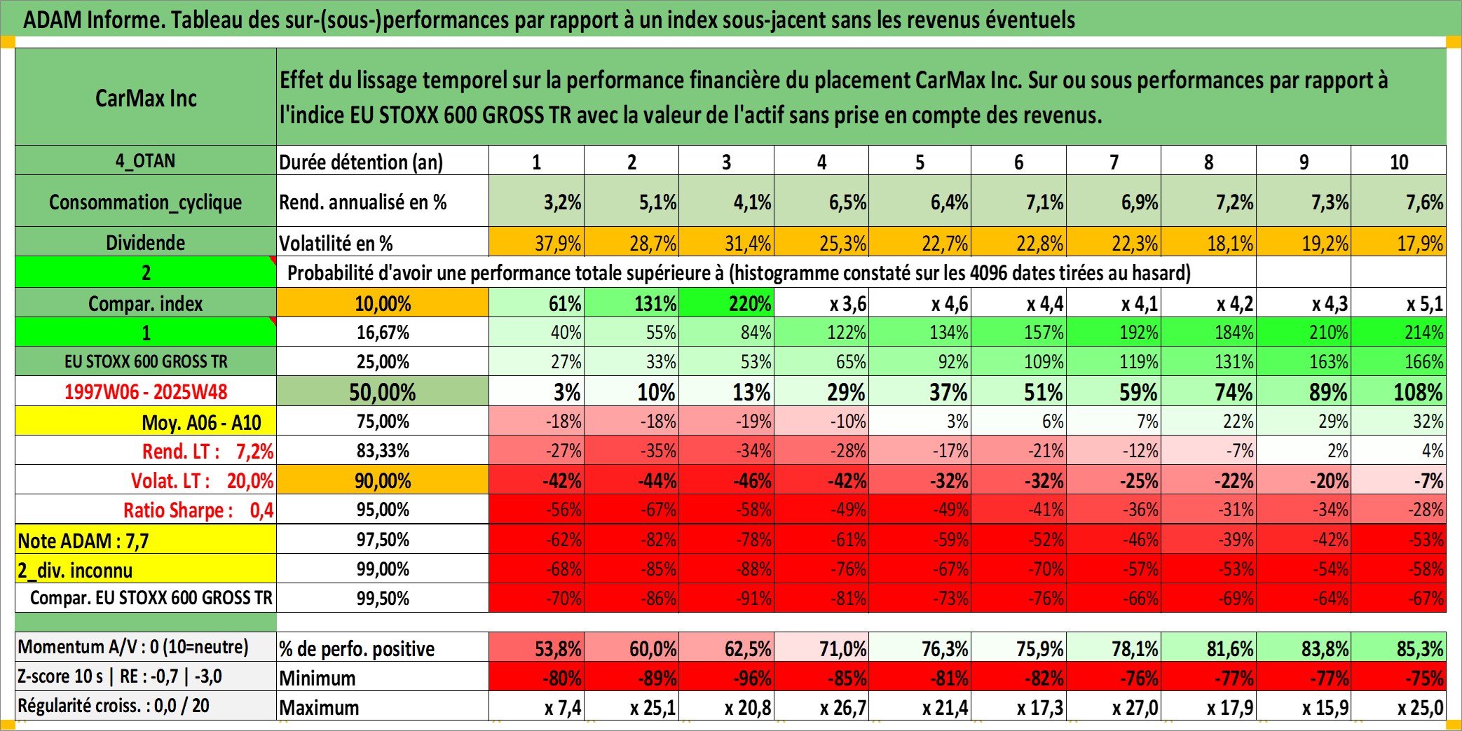 Site dédié aux investisseursPage dédiée sur site financeAnalyse des valorisations hebdomadaires de l'action CarMax Inc. Cet actif est cote en USD. Les valorisations sont en contrevaleur EURO et couvrent les semaines 1997W06 a 2025W48. Les revenus de cet actif financier ne sont pas connus car non existants ou non disponibles sur le site Yahoo Finance. La note globale ESG de cet actif est estimee a 15.0 (apres rebasage entre 0 et 20).