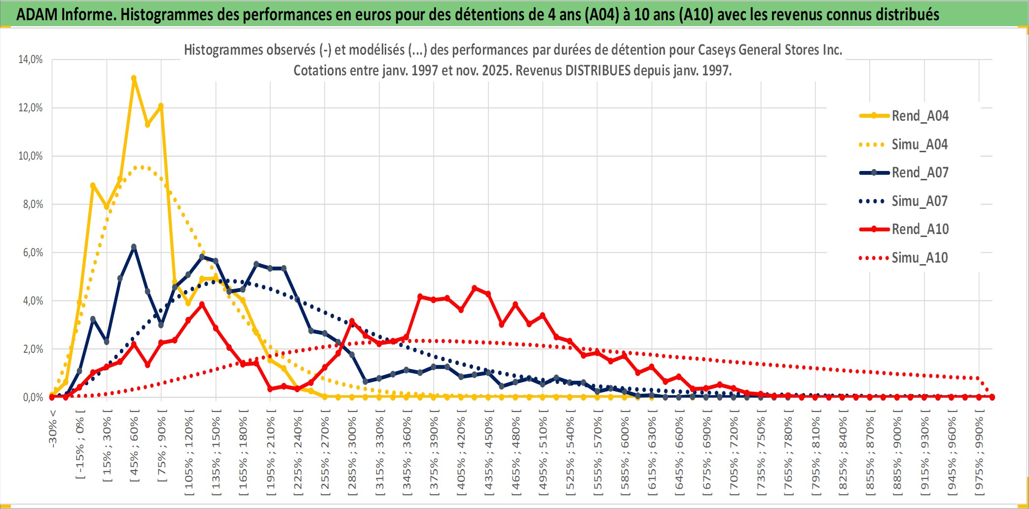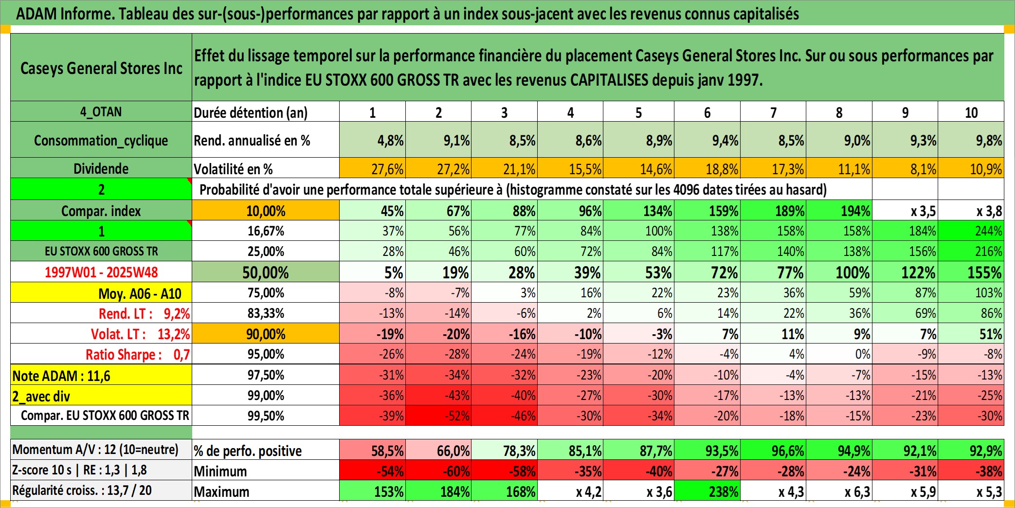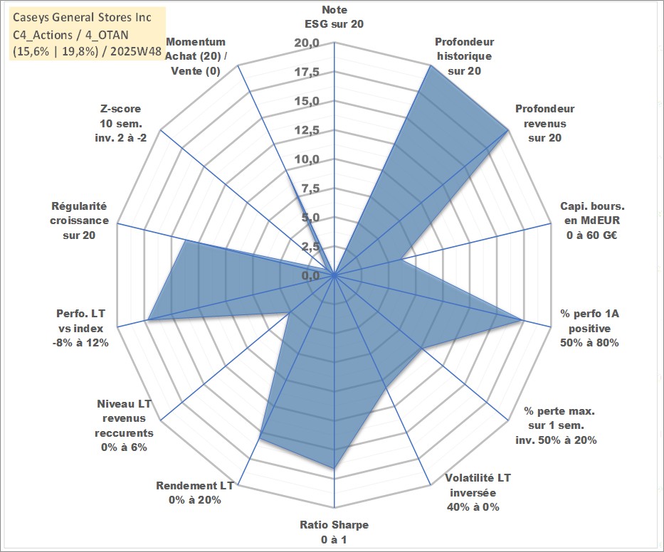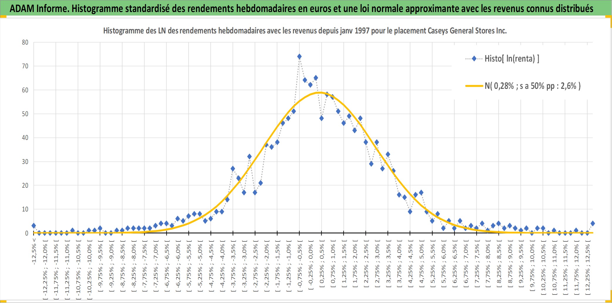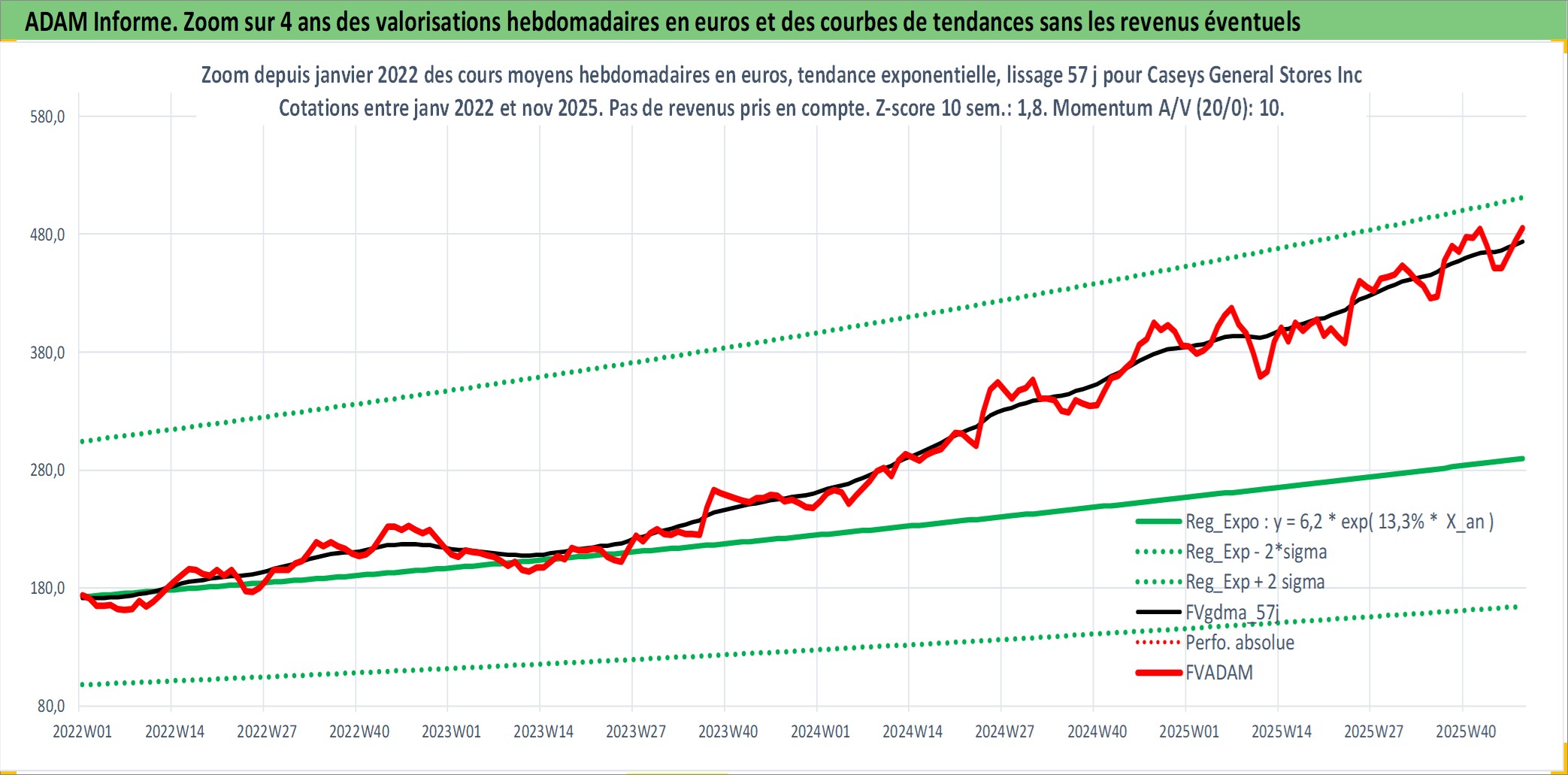 Site dédié aux investisseursPage dédiée sur site financeAnalyse des valorisations hebdomadaires de l'action Caseys General Stores Inc. Cet actif est cote en USD. Les valorisations sont en contrevaleur EURO et couvrent les semaines 1997W01 a 2025W48. Les revenus de cet actif financier sont pris en compte depuis la semaine 1997W05. La note ESG de cet actif n'est pas connue.