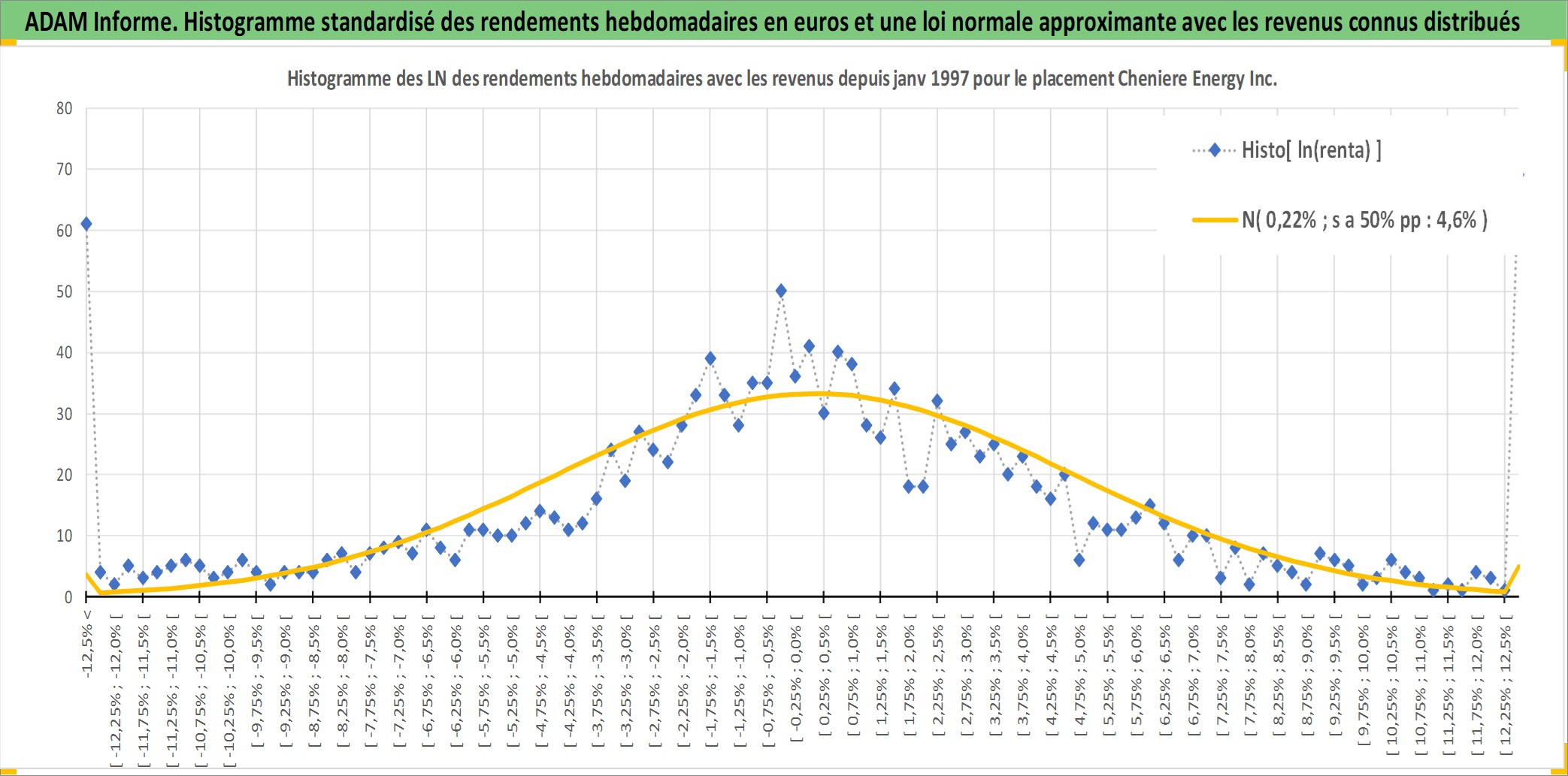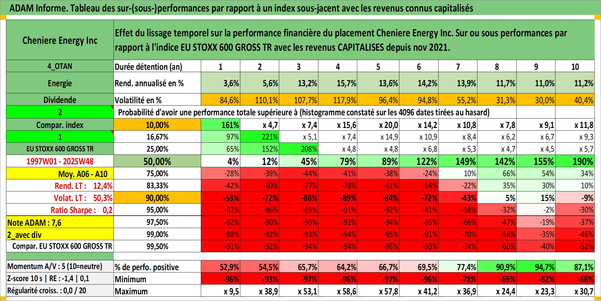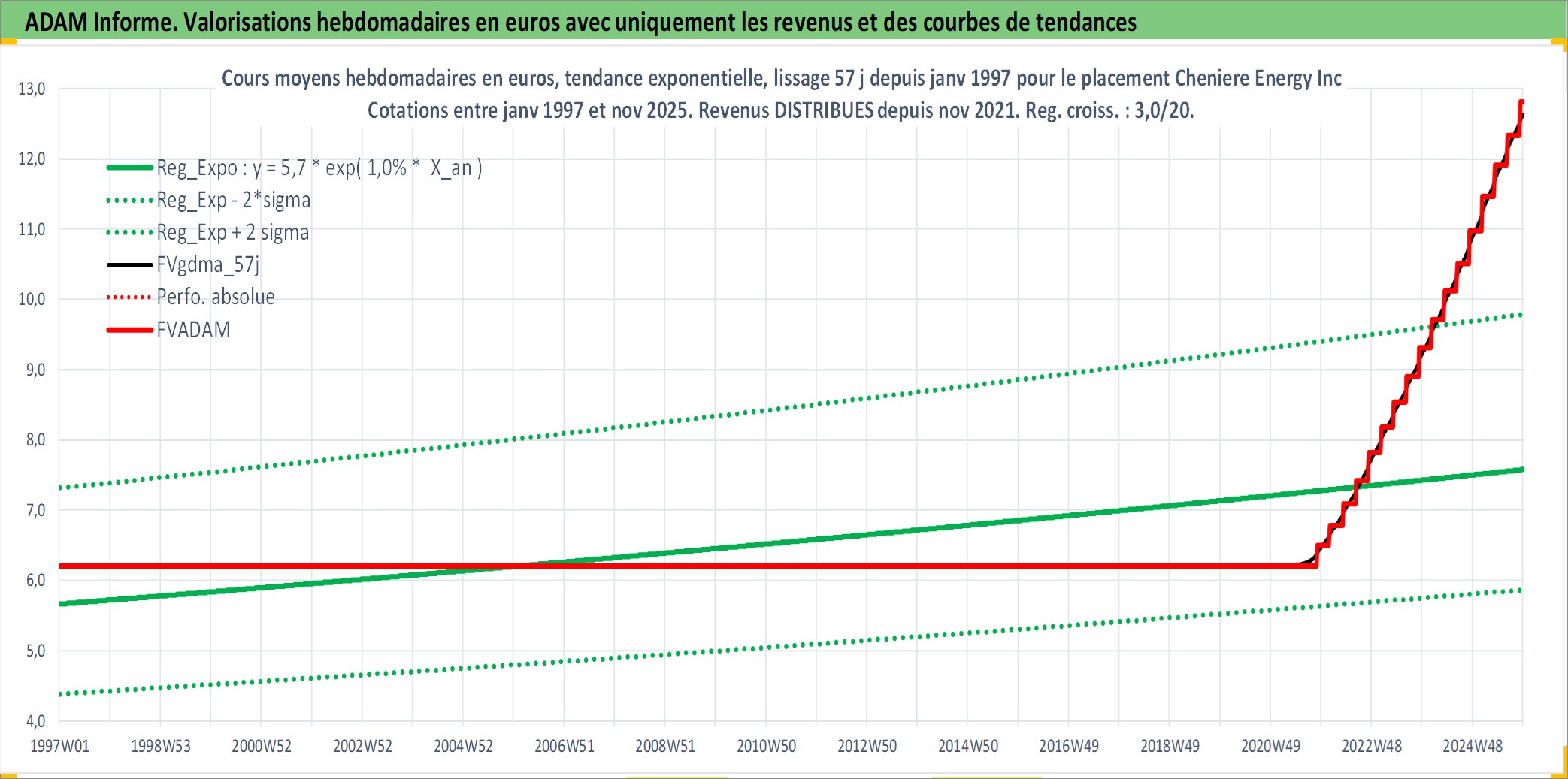 Site dédié aux investisseursPage dédiée sur site financeAnalyse des valorisations hebdomadaires de l'action Cheniere Energy Inc. Cet actif est cote en USD. Les valorisations sont en contrevaleur EURO et couvrent les semaines 1997W01 a 2025W48. Les revenus de cet actif financier sont pris en compte depuis la semaine 2021W44. La note globale ESG de cet actif est estimee a 9.0 (apres rebasage entre 0 et 20).