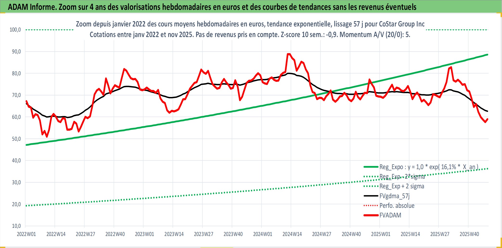Site dédié aux investisseursPage dédiée sur site financeAnalyse des valorisations hebdomadaires de l'action CoStar Group Inc. Cet actif est cote en USD. Les valorisations sont en contrevaleur EURO et couvrent les semaines 1998W27 a 2025W48. Les revenus de cet actif financier ne sont pas connus car non existants ou non disponibles sur le site Yahoo Finance. La note globale ESG de cet actif est estimee a 7.0 (apres rebasage entre 0 et 20).
