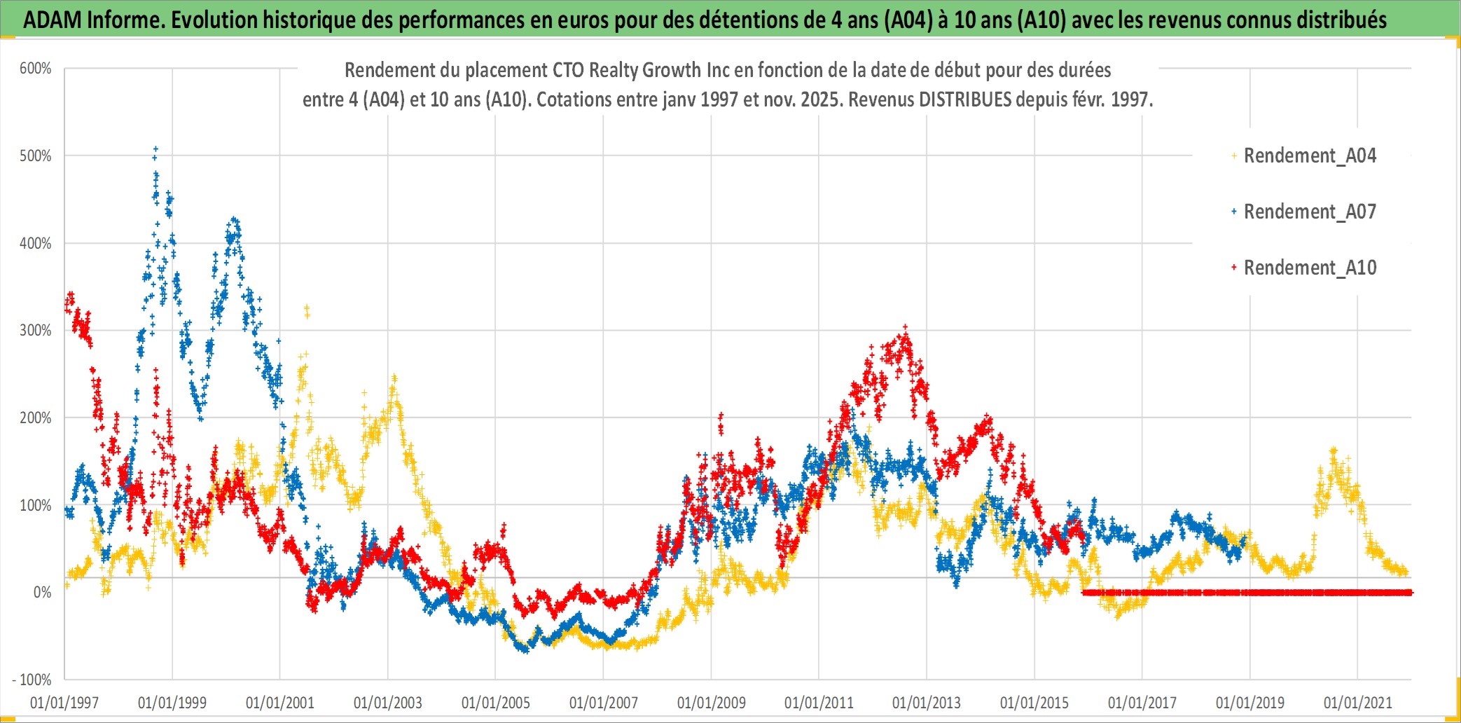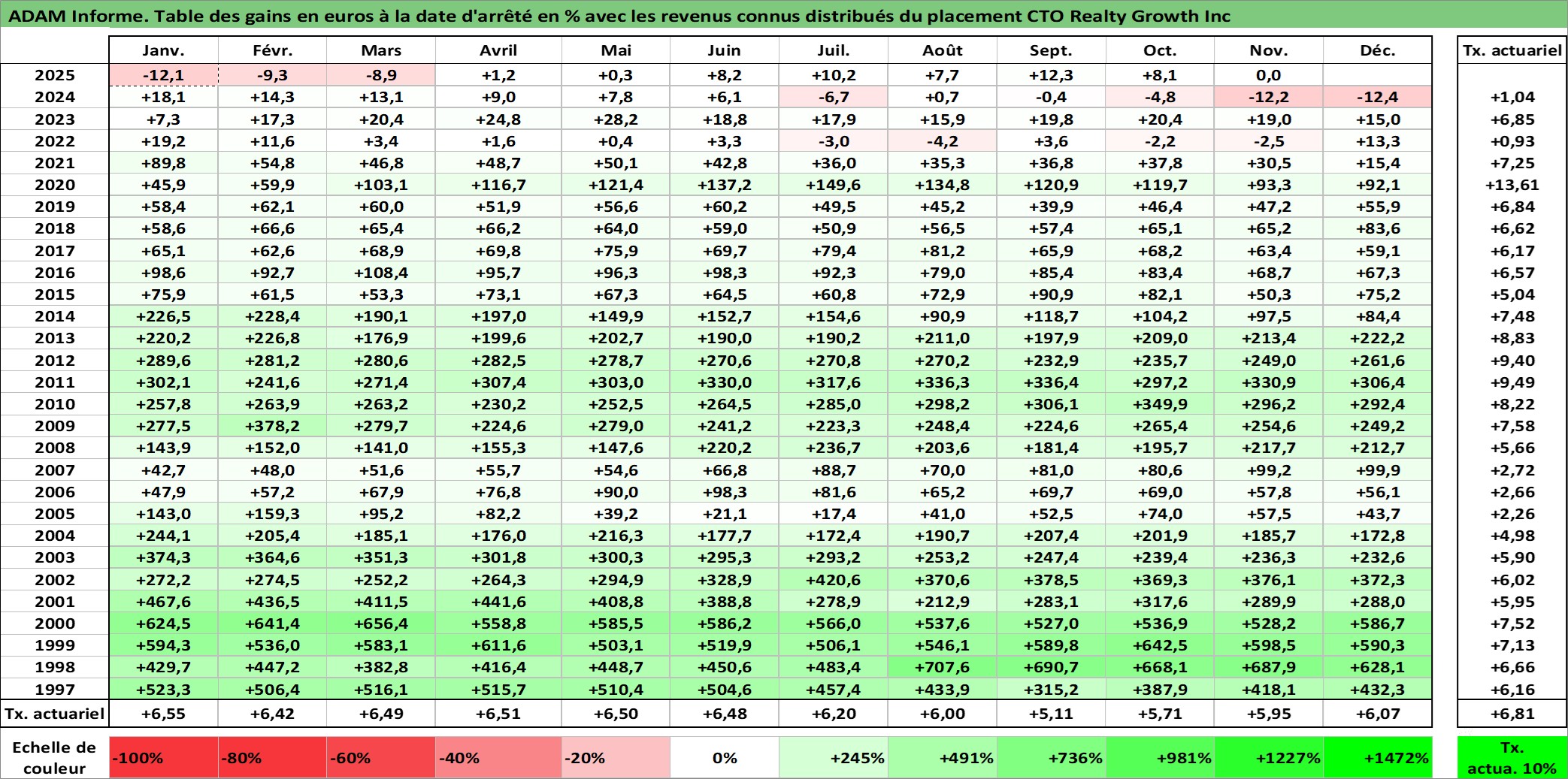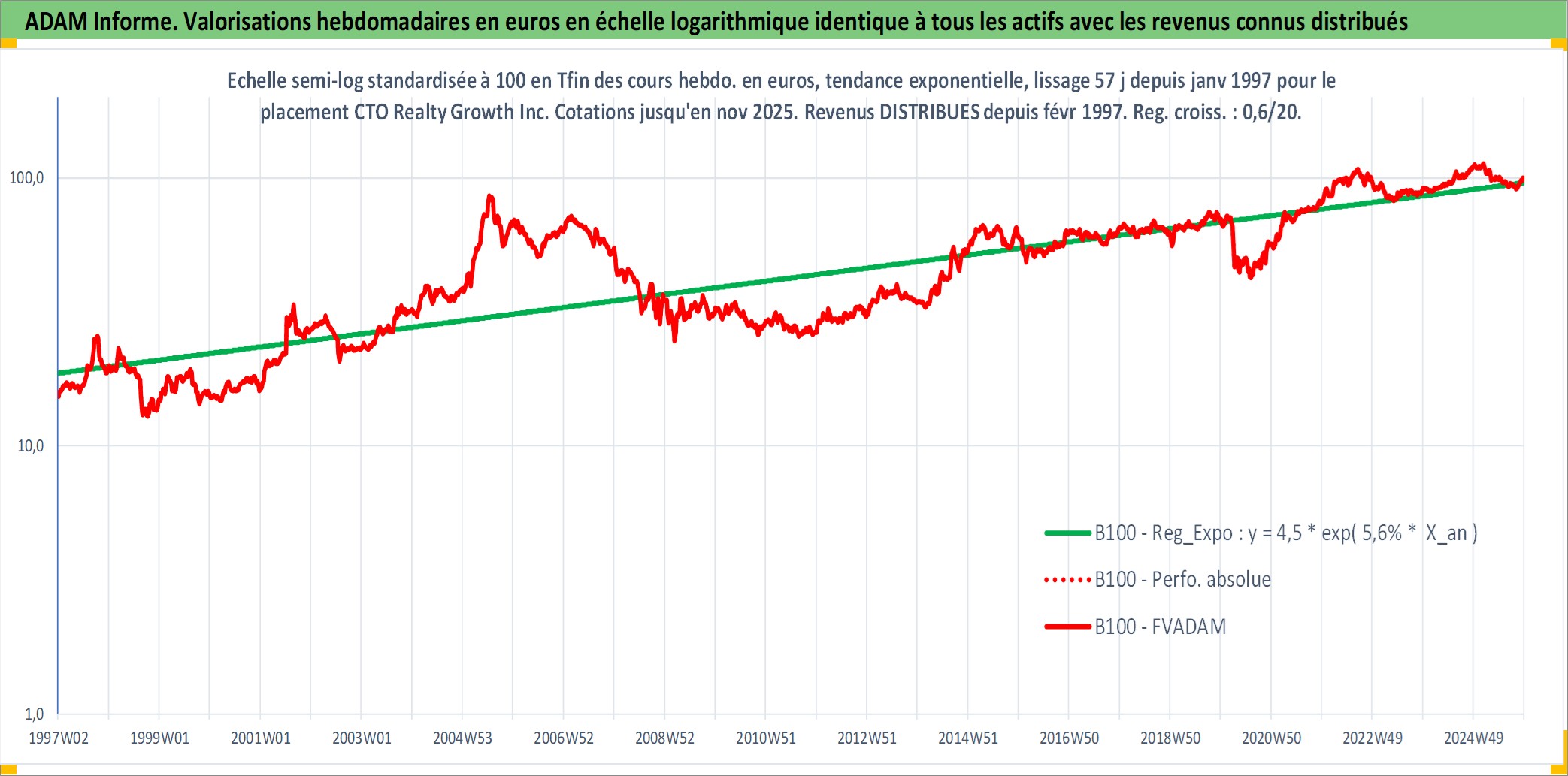 Site dédié aux investisseursPage dédiée sur site financeAnalyse des valorisations hebdomadaires de l'action CTO Realty Growth Inc. Cet actif est cote en USD. Les valorisations sont en contrevaleur EURO et couvrent les semaines 1997W01 a 2025W48. Les revenus de cet actif financier sont pris en compte depuis la semaine 1997W06. La note ESG de cet actif n'est pas connue.
