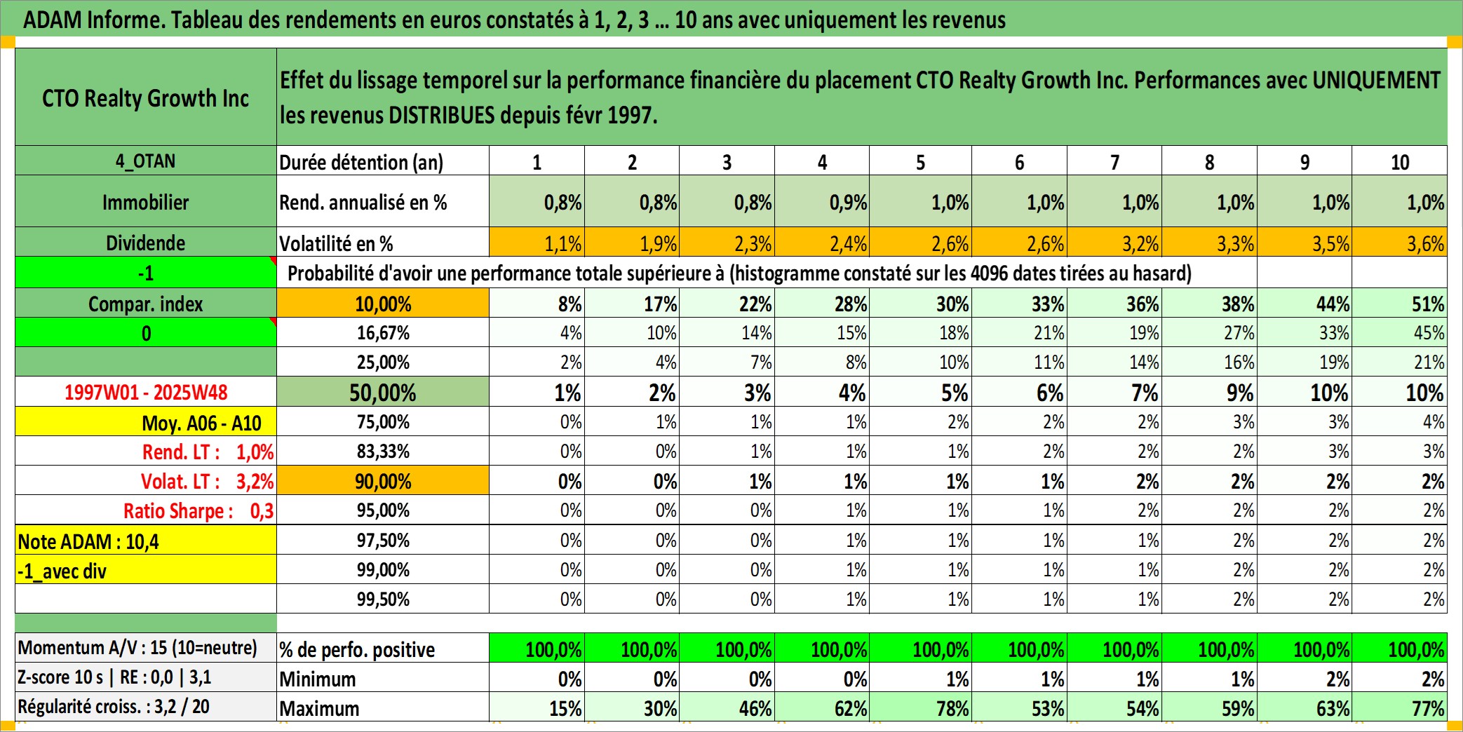 Dernière perfo 10 ans en %