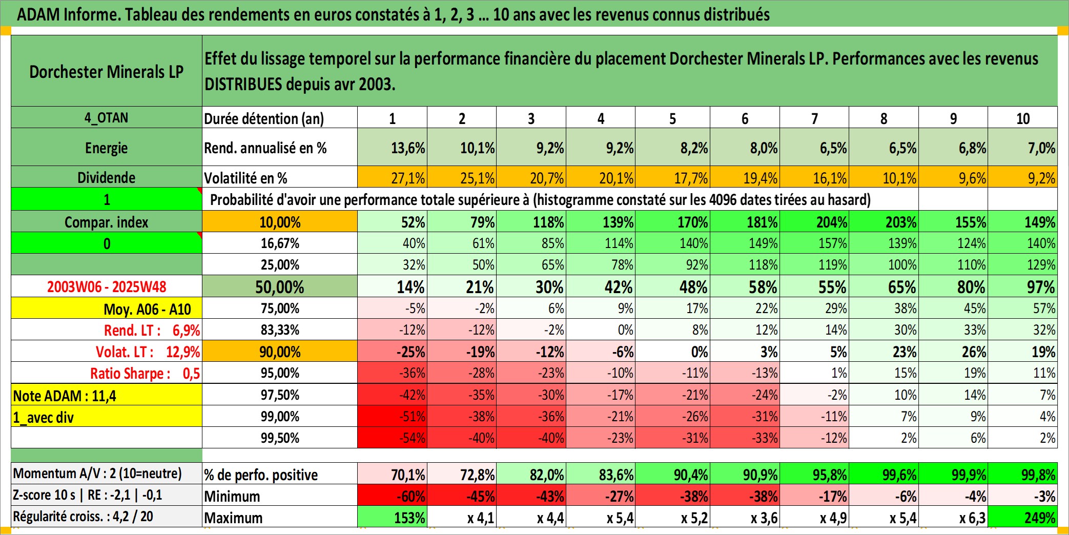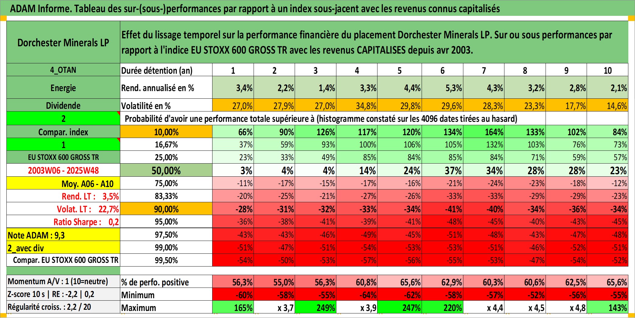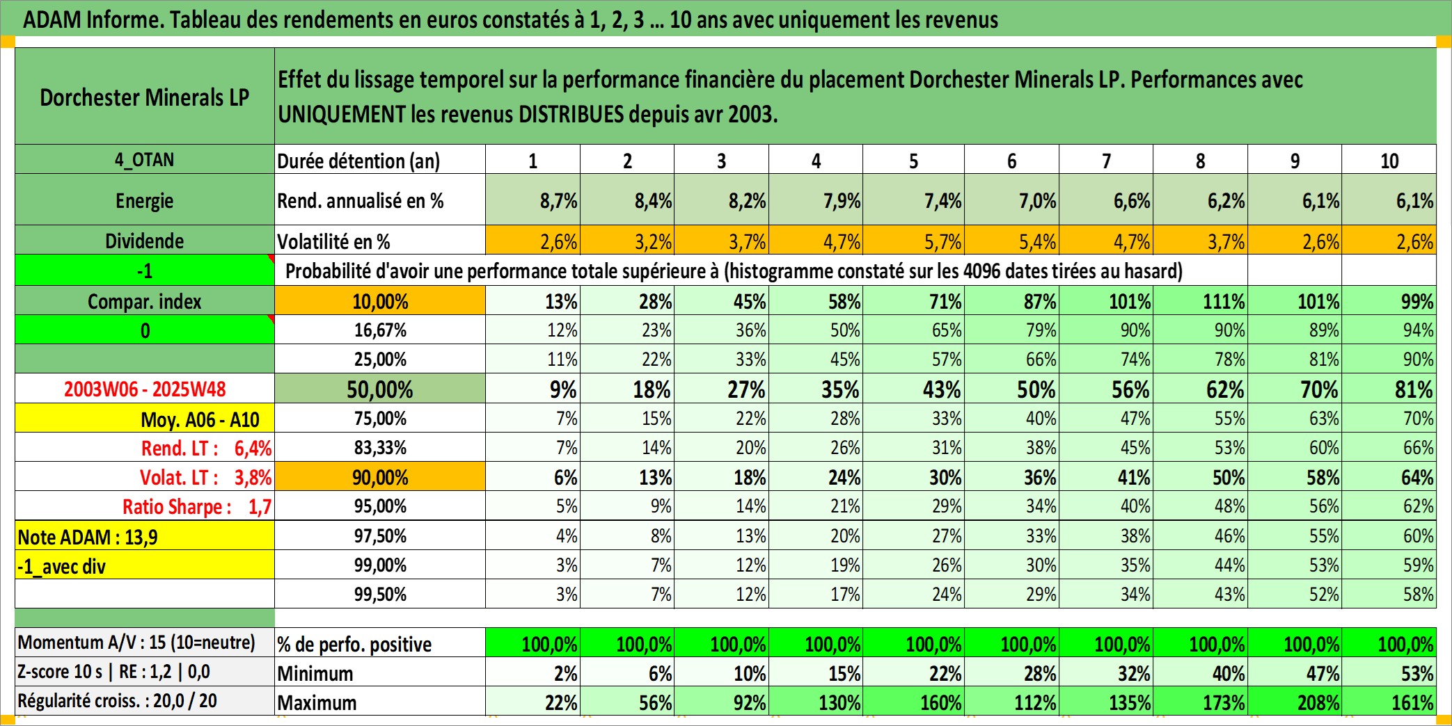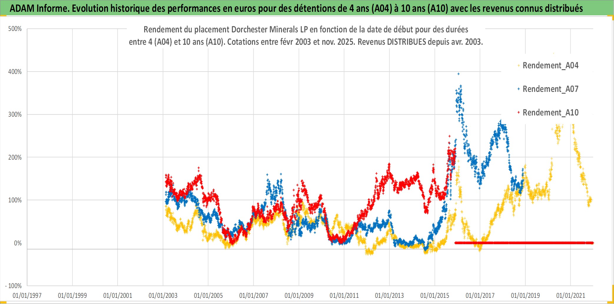 Site dédié aux investisseursPage dédiée sur site financeAnalyse des valorisations hebdomadaires de l'action Dorchester Minerals LP. Cet actif est cote en USD. Les valorisations sont en contrevaleur EURO et couvrent les semaines 2003W06 a 2025W48. Les revenus de cet actif financier sont pris en compte depuis la semaine 2003W17. La note ESG de cet actif n'est pas connue.