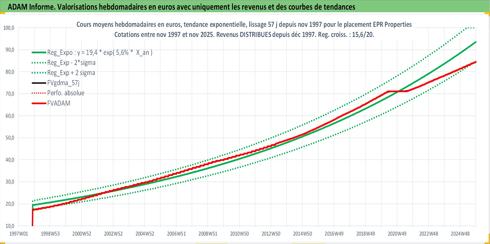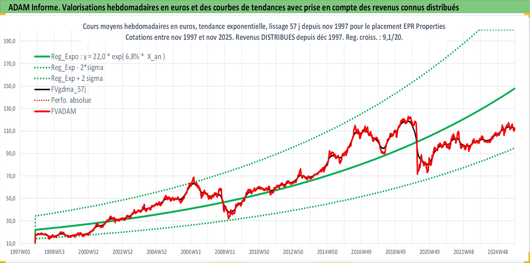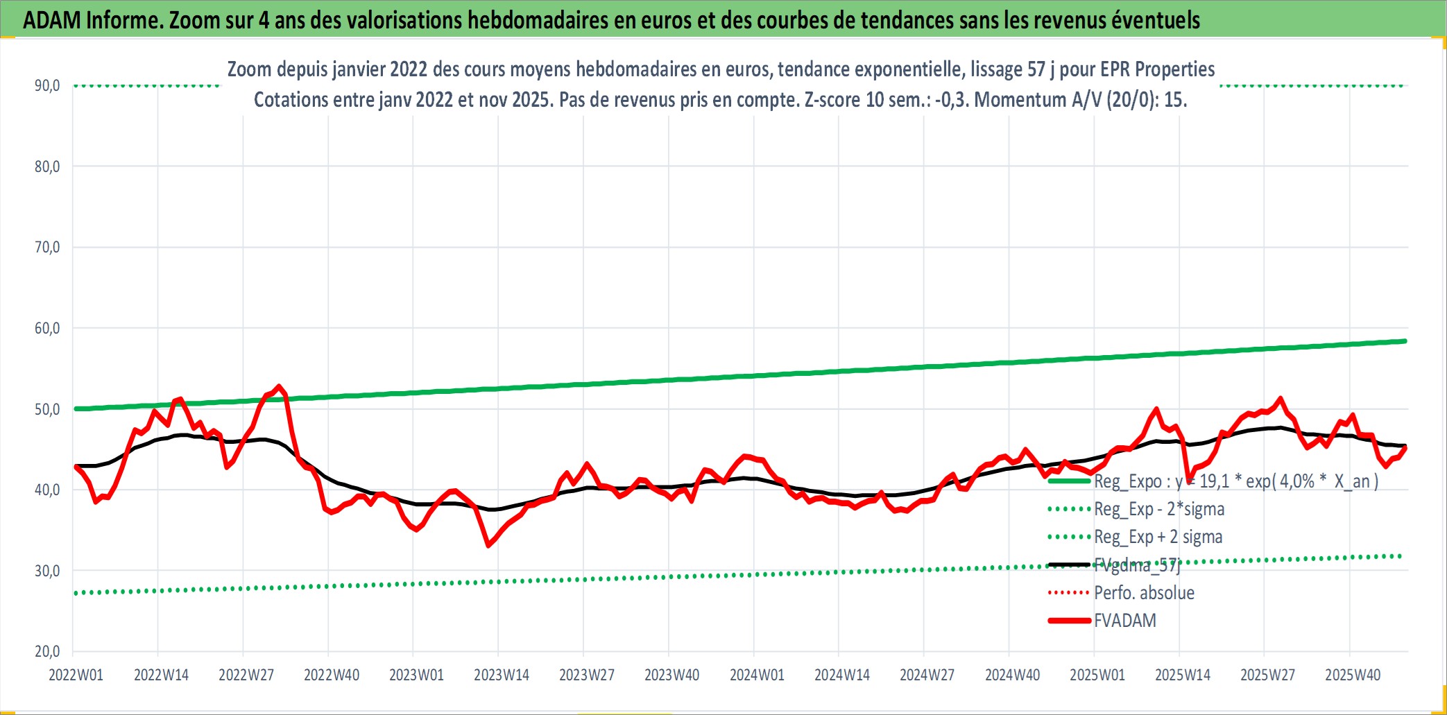 Site dédié aux investisseursPage dédiée sur site financeAnalyse des valorisations hebdomadaires de l'action EPR Properties. Cet actif est cote en USD. Les valorisations sont en contrevaleur EURO et couvrent les semaines 1997W47 a 2025W48. Les revenus de cet actif financier sont pris en compte depuis la semaine 1997W52. La note ESG de cet actif n'est pas connue.